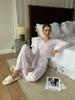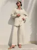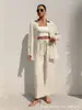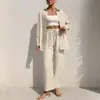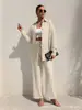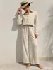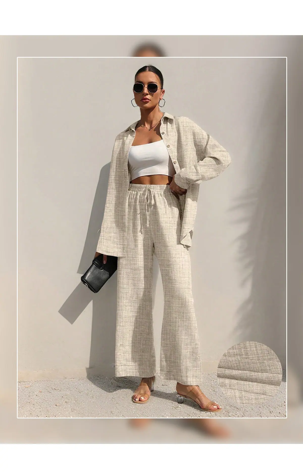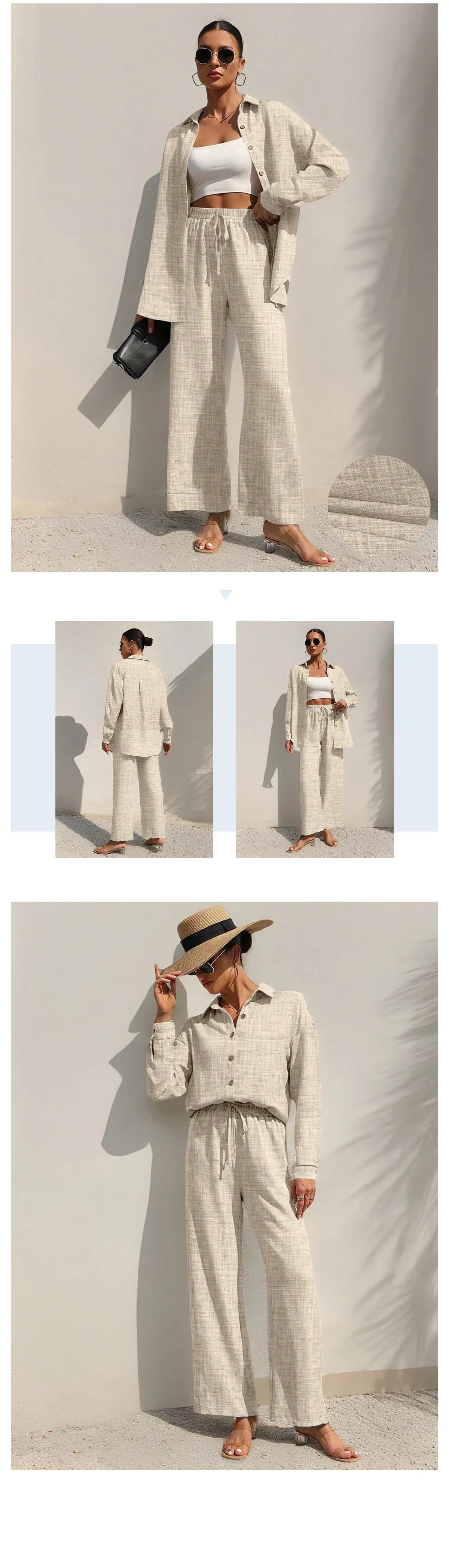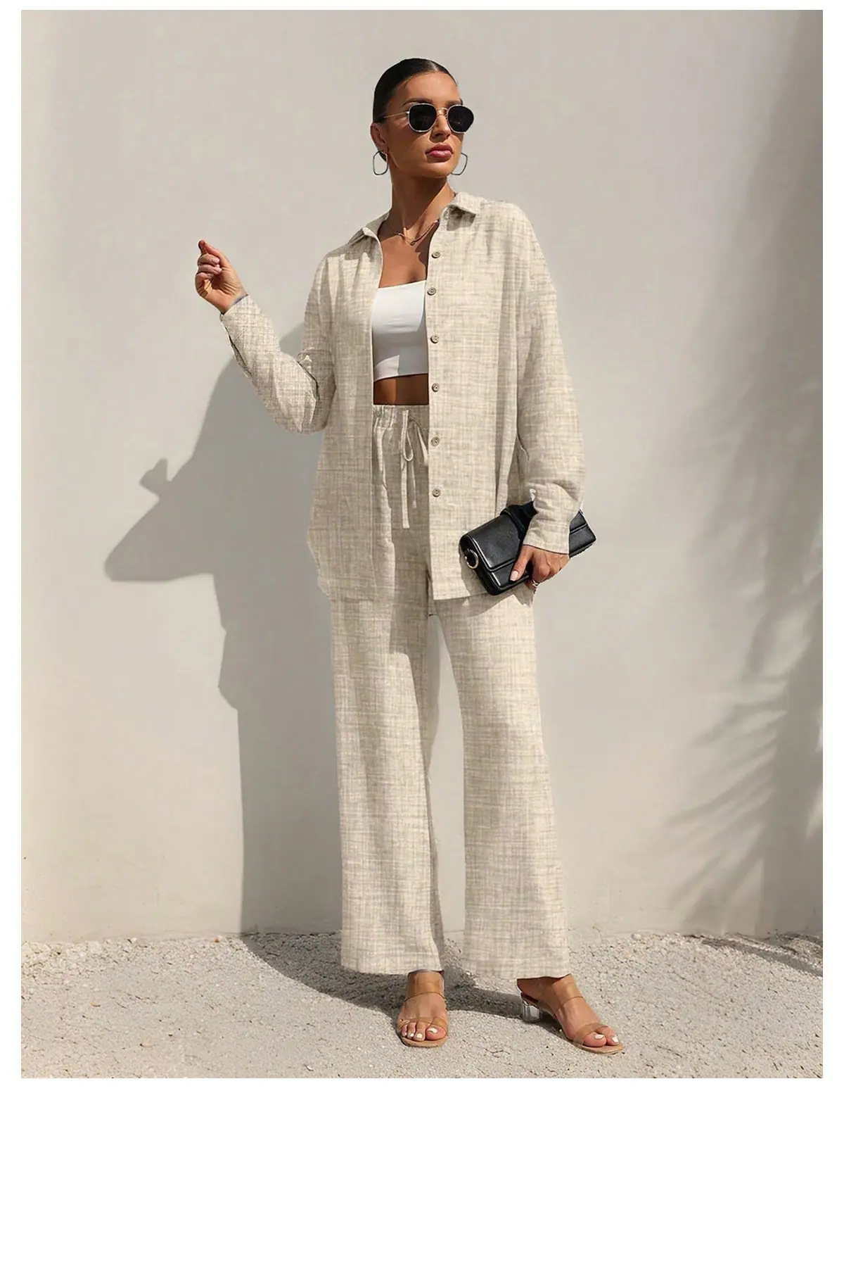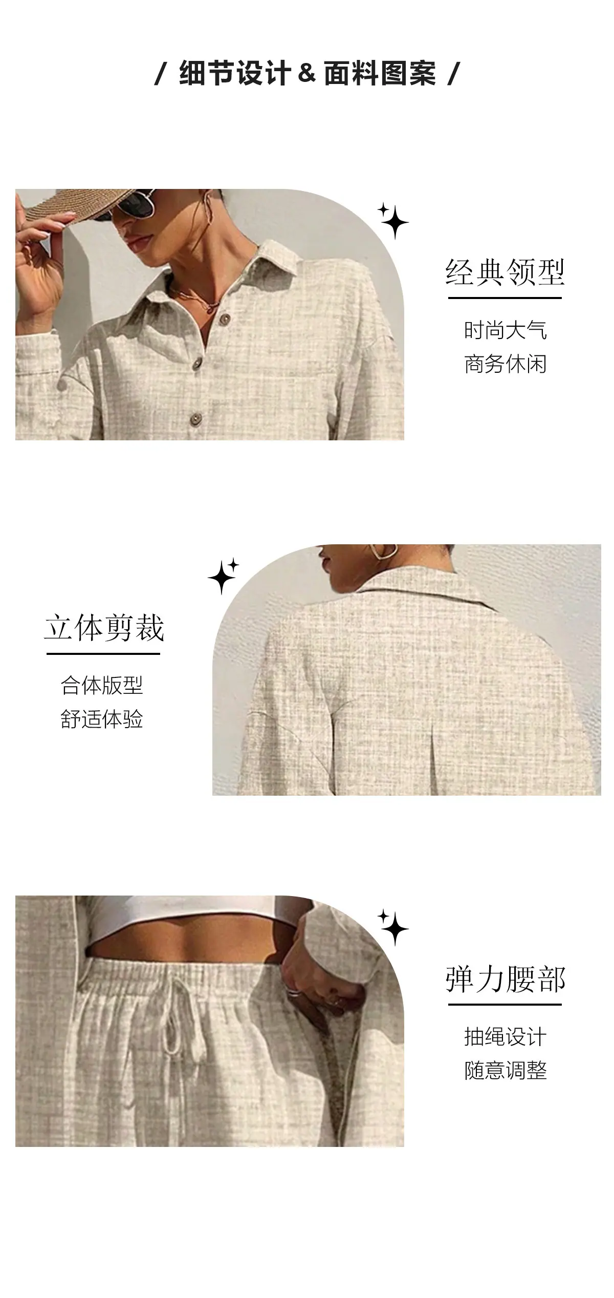 Ropa de Mujer Transfronteriza Europea y Americana 2025 Verano Color Sólido Solapa Camisa de Manga Larga Pantalones Elásticos de Cintura Alta Traje Casual con Cordones