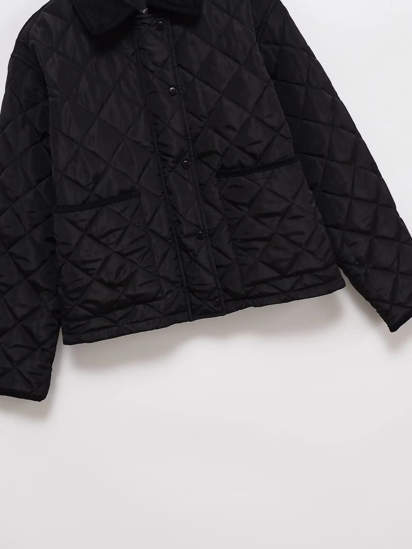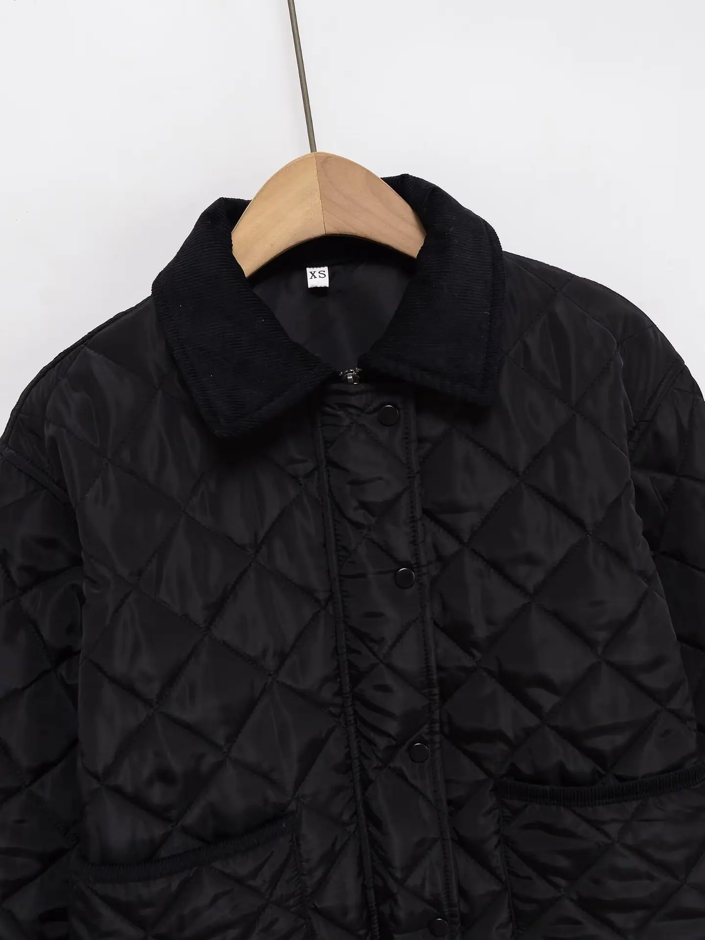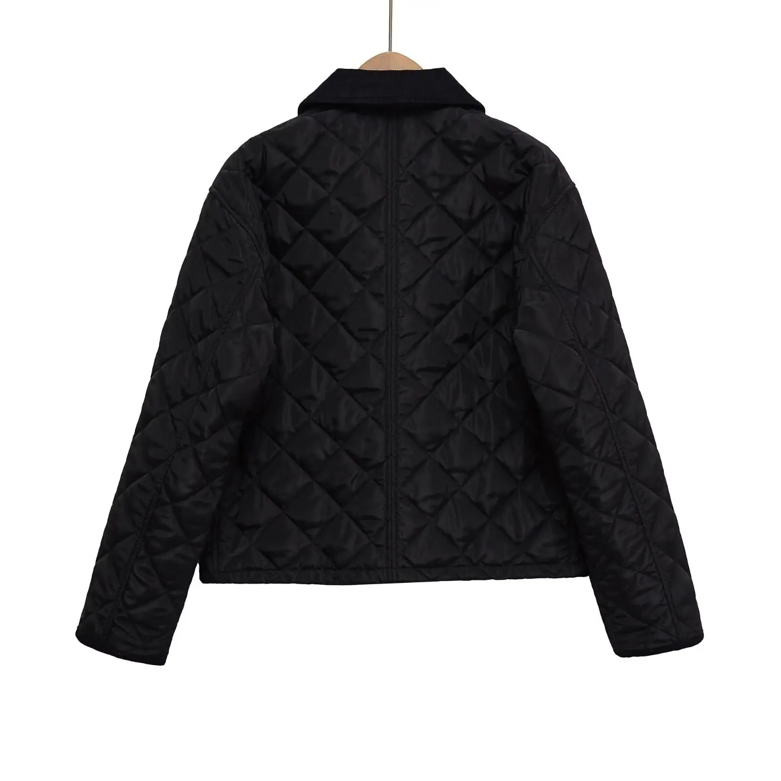 2025 Otoño/Invierno Nuevo Ligero Cálido Moda Versátil Solapa de Pana Acolchado de Diamantes Algodón Abrigo Chaqueta Abrigo de Algodón para Mujer