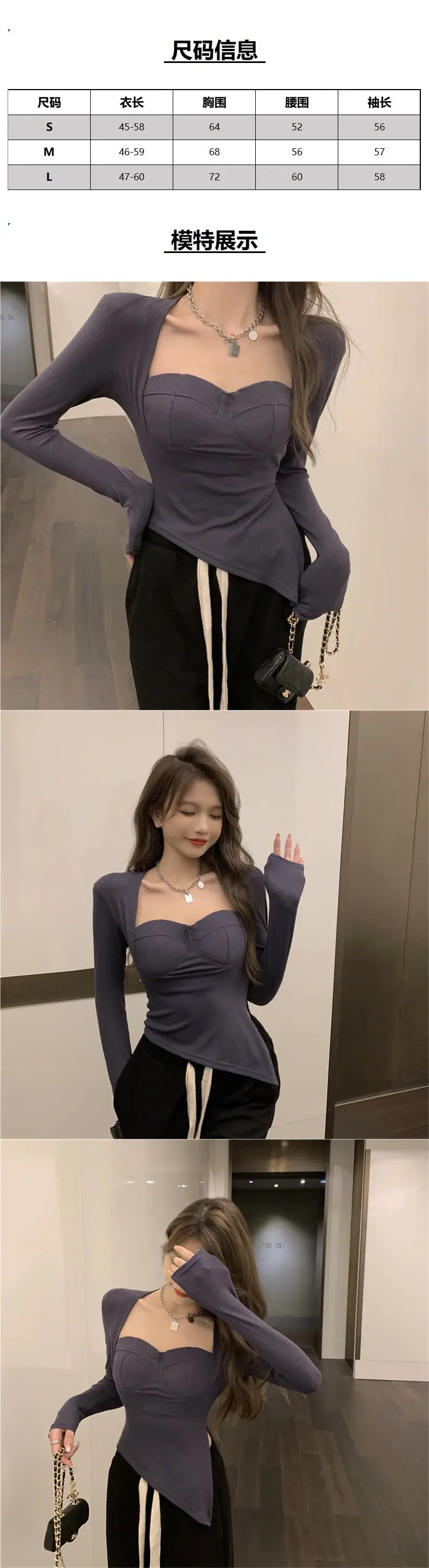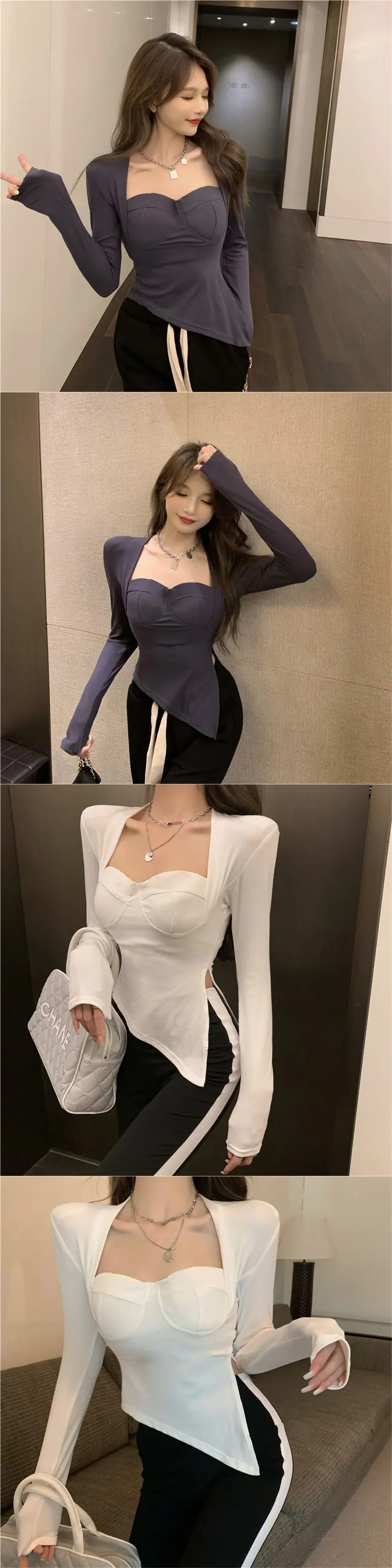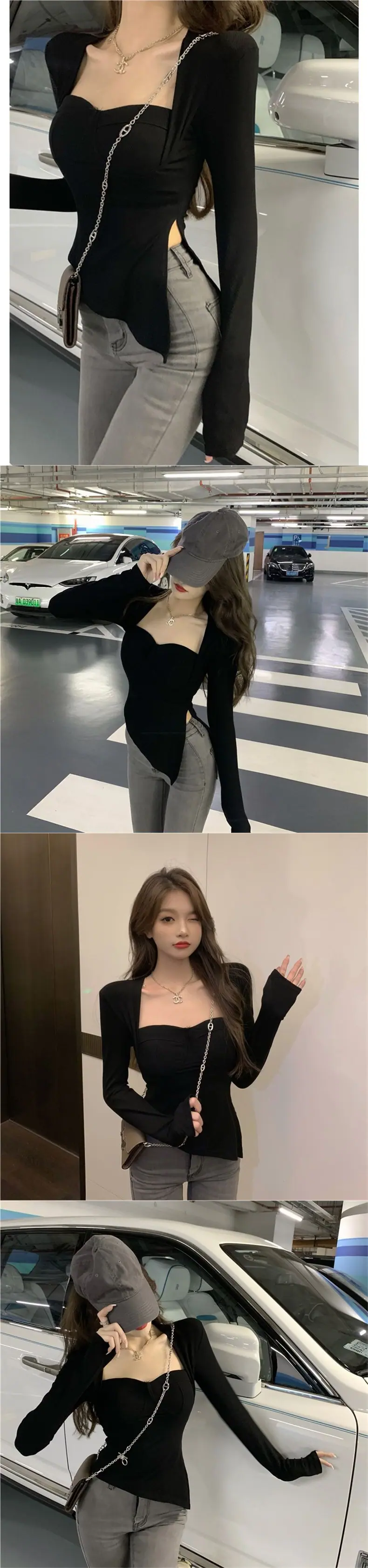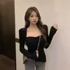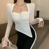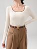Camiseta base versátil de cuello cuadrado de nicho americano para mujer, otoño e invierno, color sólido, abertura, delgada, moda de chica hot, top casual ins