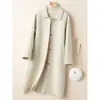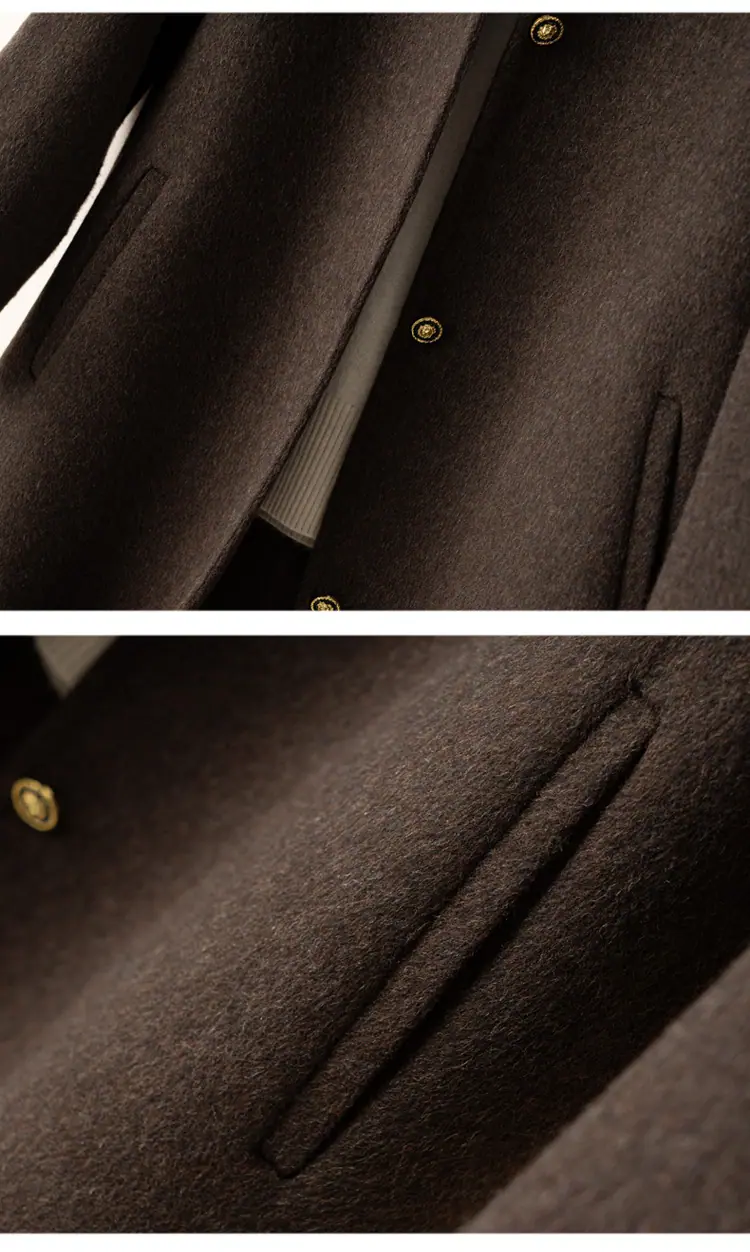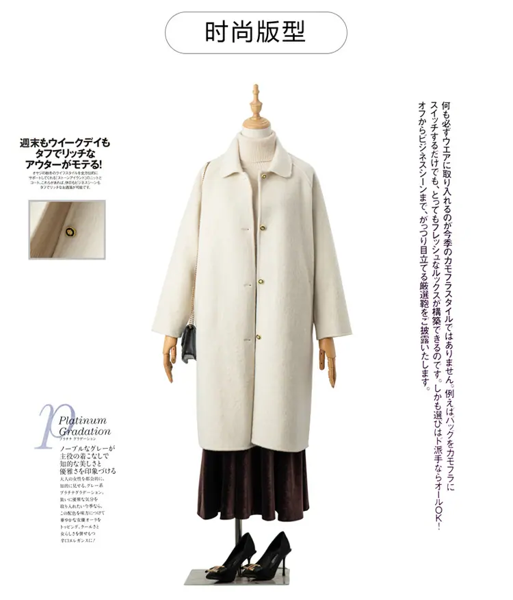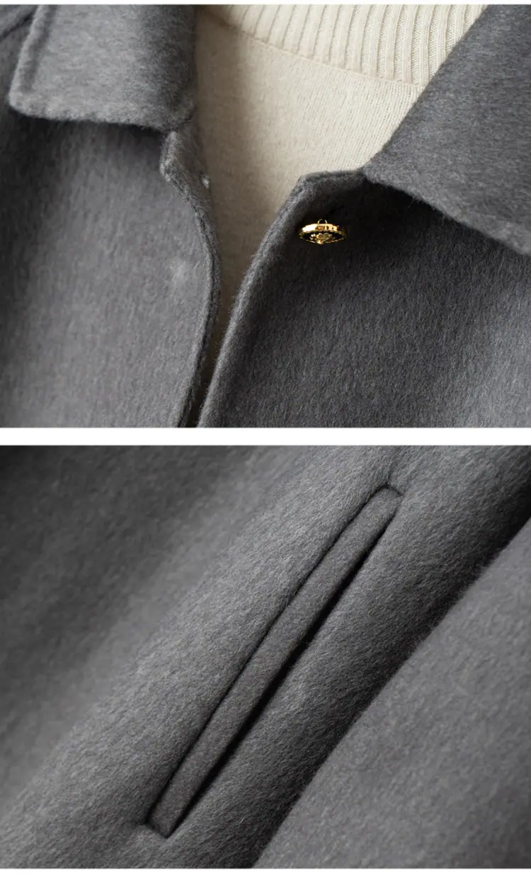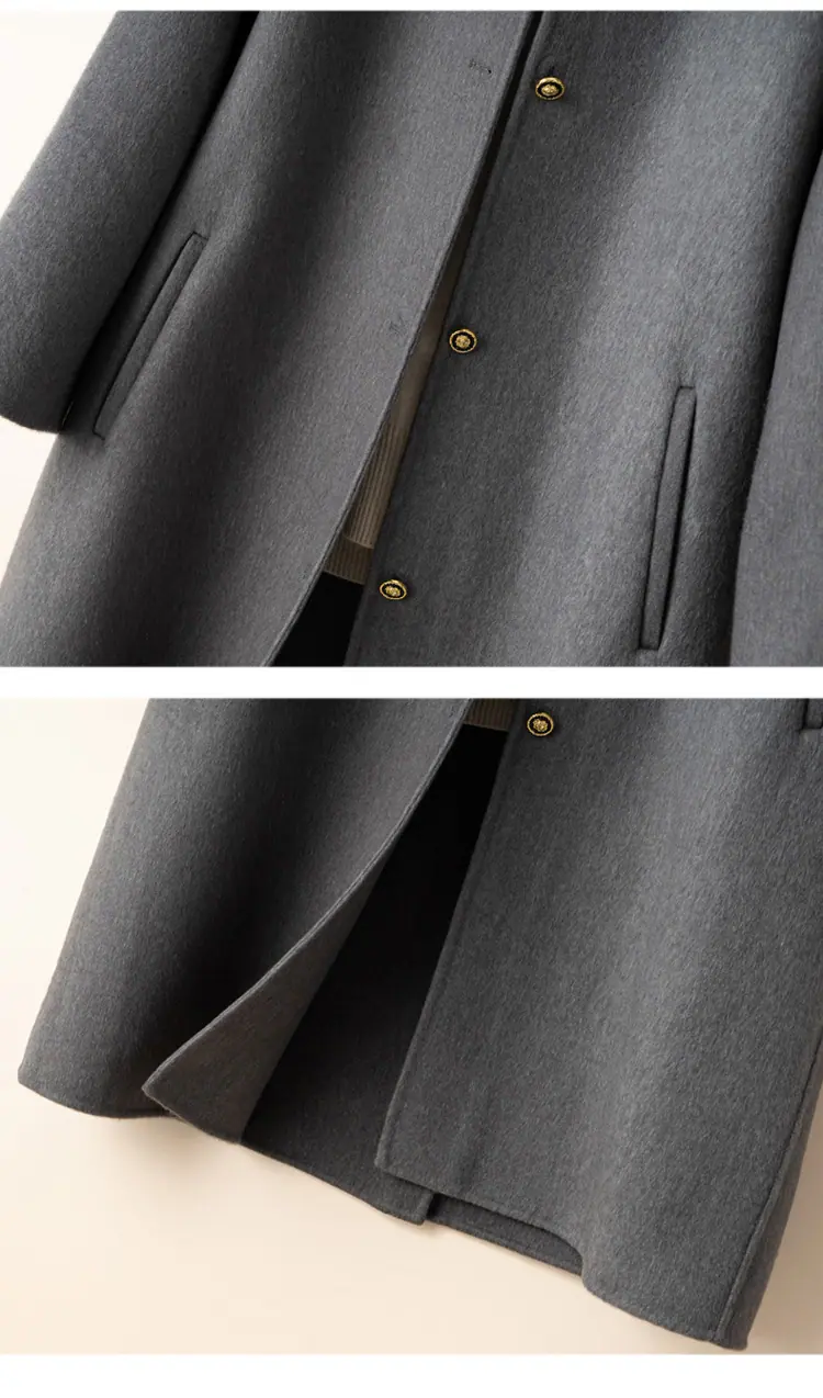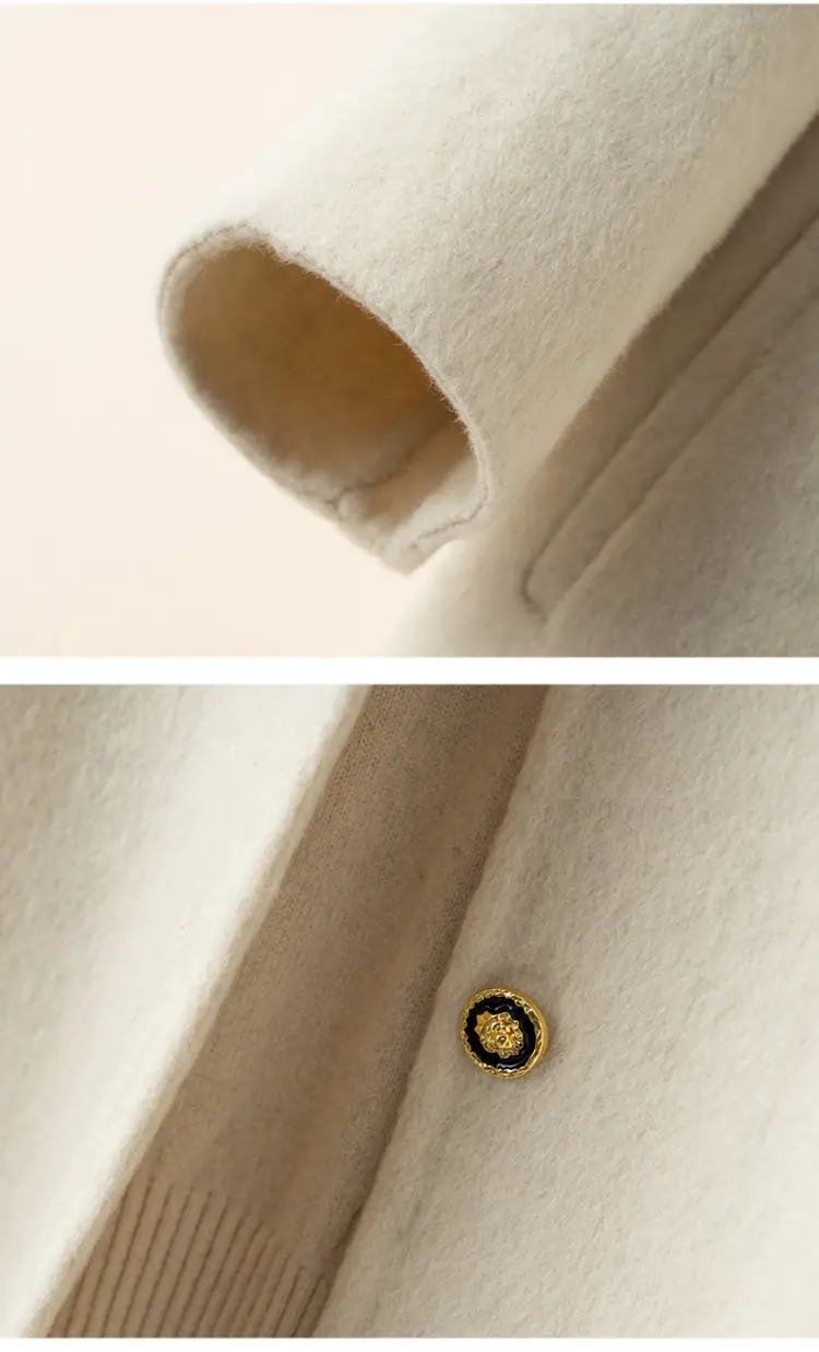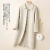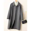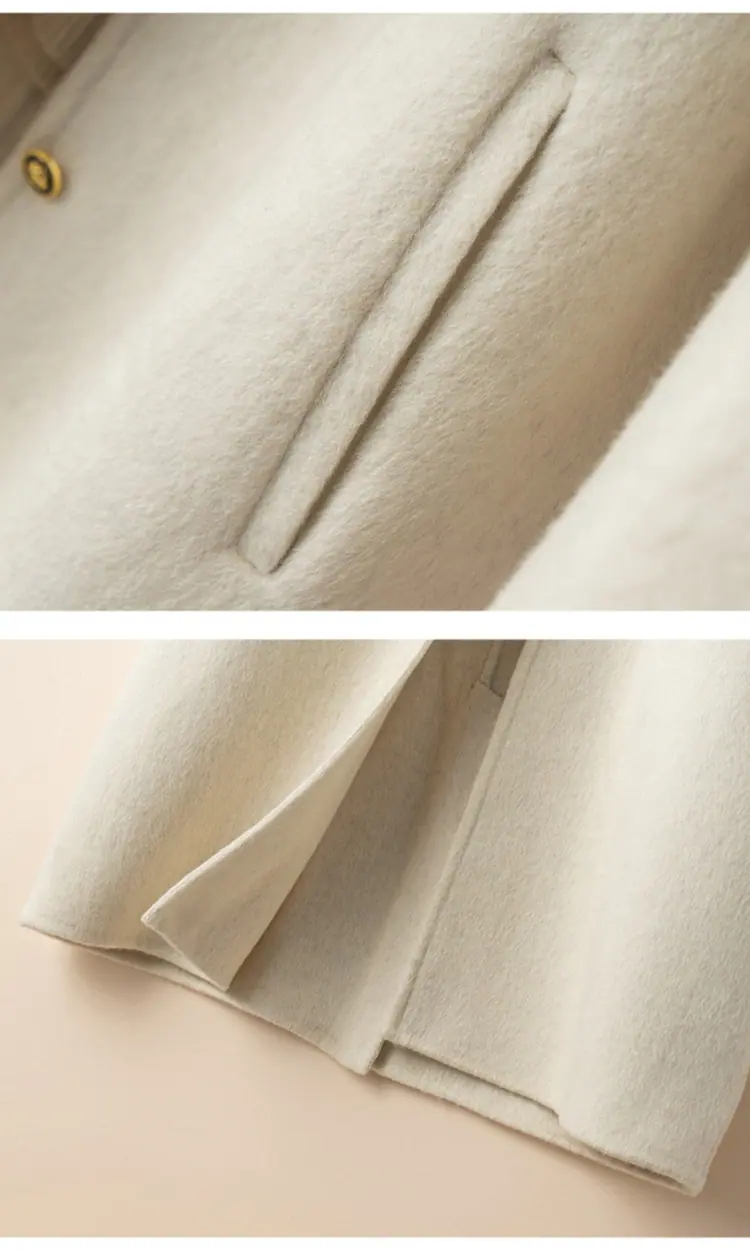 2024 Otoño e Invierno Nuevo Abrigo de Lana de Doble Cara para Mujer Largo Medio Raglán Suelto Chaqueta con Bolsillo