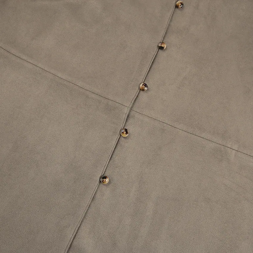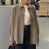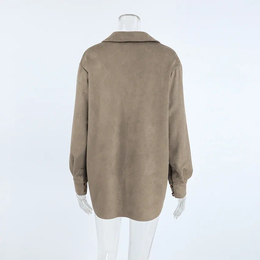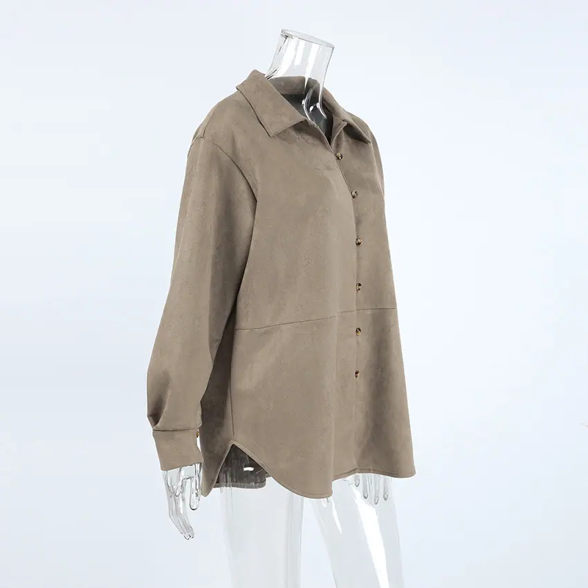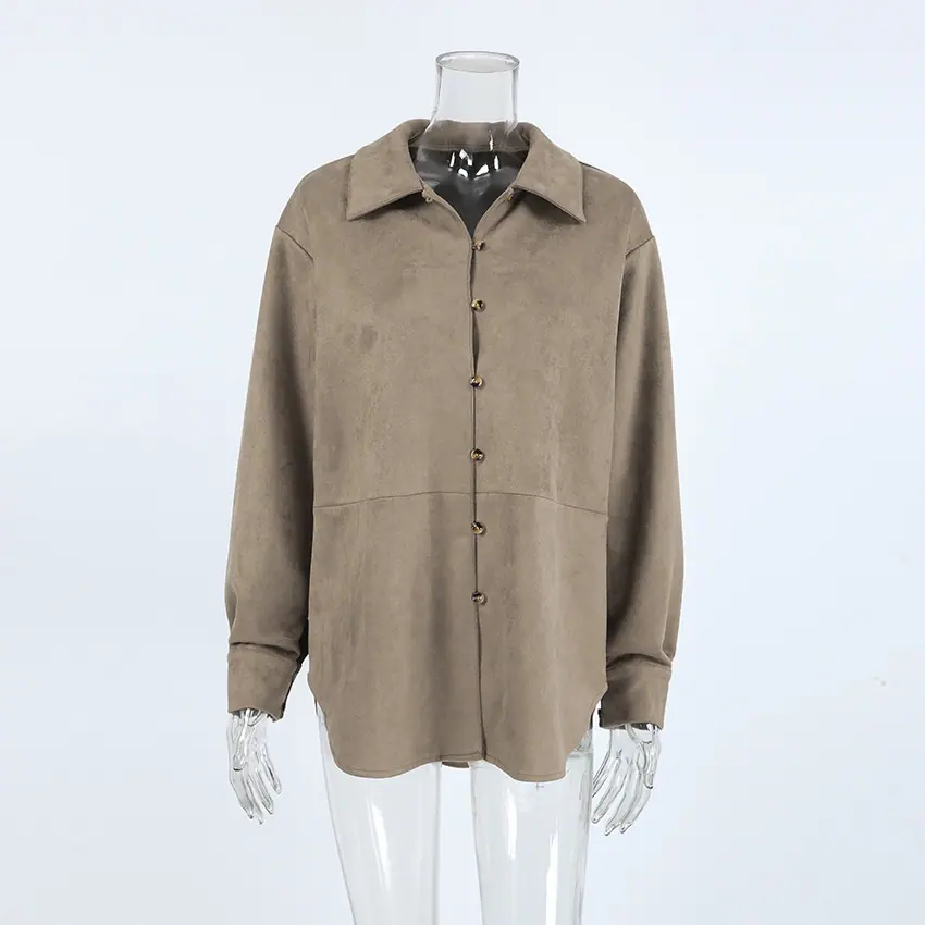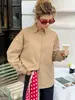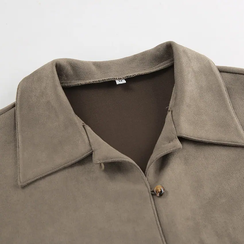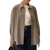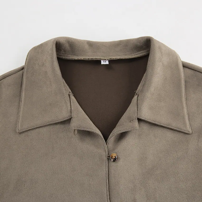Camisa de Manga Corta de Punto Suede Caqui Estilo Retro Europeo y Americano para Primavera/Verano, Holgada, con Cuello Mao, Camisa Versátil de Nicho Europeo para Mujer