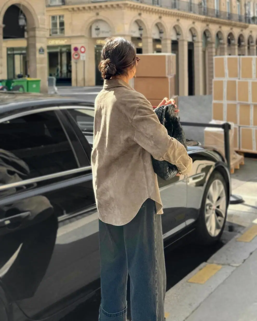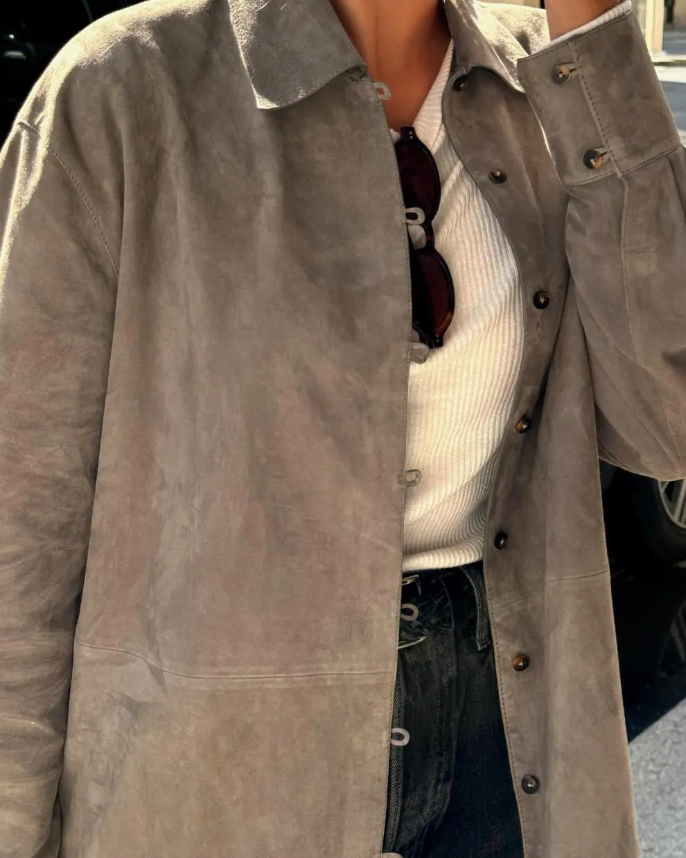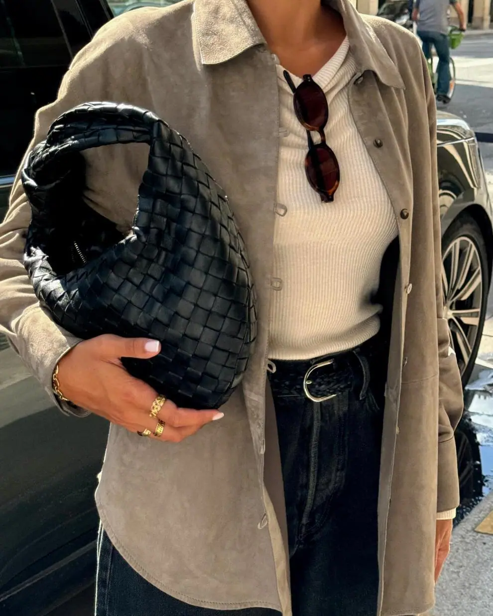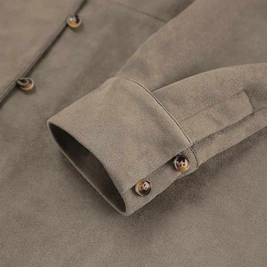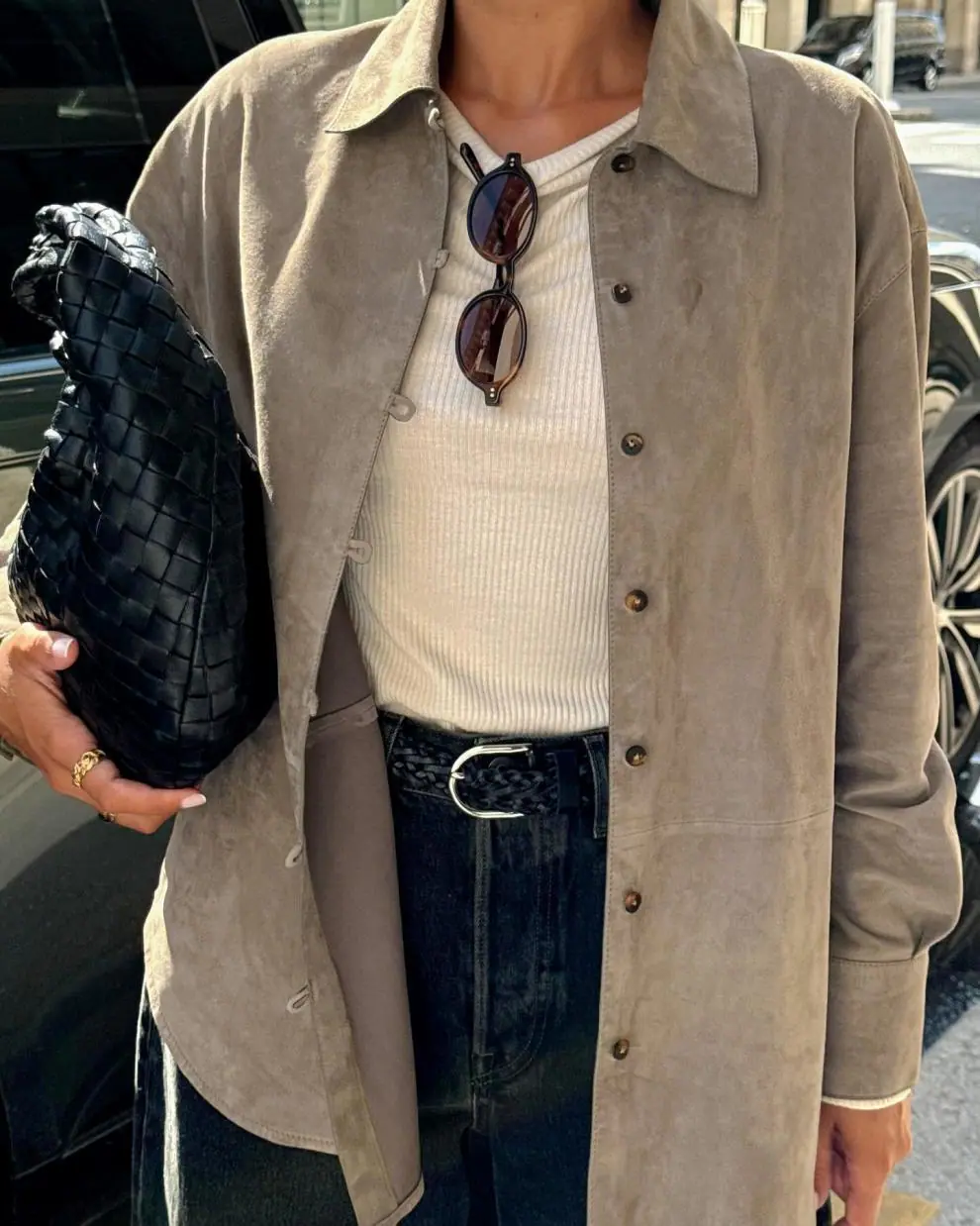 Camisa de Manga Corta de Punto Suede Caqui Estilo Retro Europeo y Americano para Primavera/Verano, Holgada, con Cuello Mao, Camisa Versátil de Nicho Europeo para Mujer