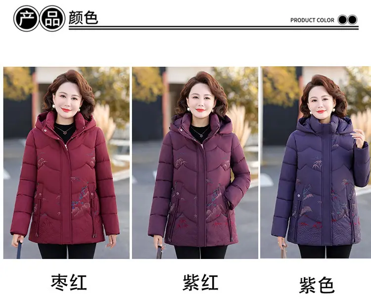 Compra 2025 Nuevo Estilo Ropa de Invierno para Mujeres Mayores Abrigo de Algodón Acolchado Grueso con Forro Polar Chaqueta con Capucha Acolchada de Algodón Ropa Exterior para Mamá Abrigo de Algodón Cálido al por mayor en Joom.pro