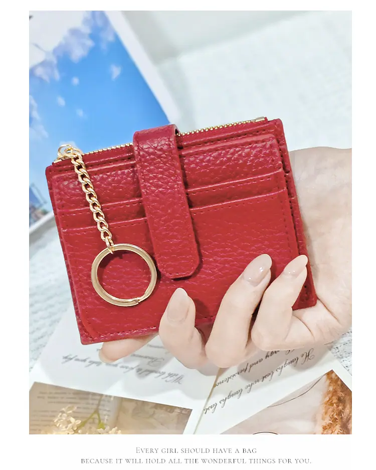 Billetera para tarjetas de mujer para estudiantes, tarjetero para identificación, estuche para tarjetas PU antirrobo, lindo monedero, mini integrado, aspecto premium