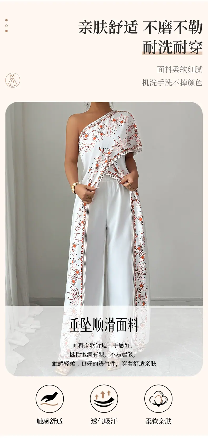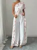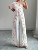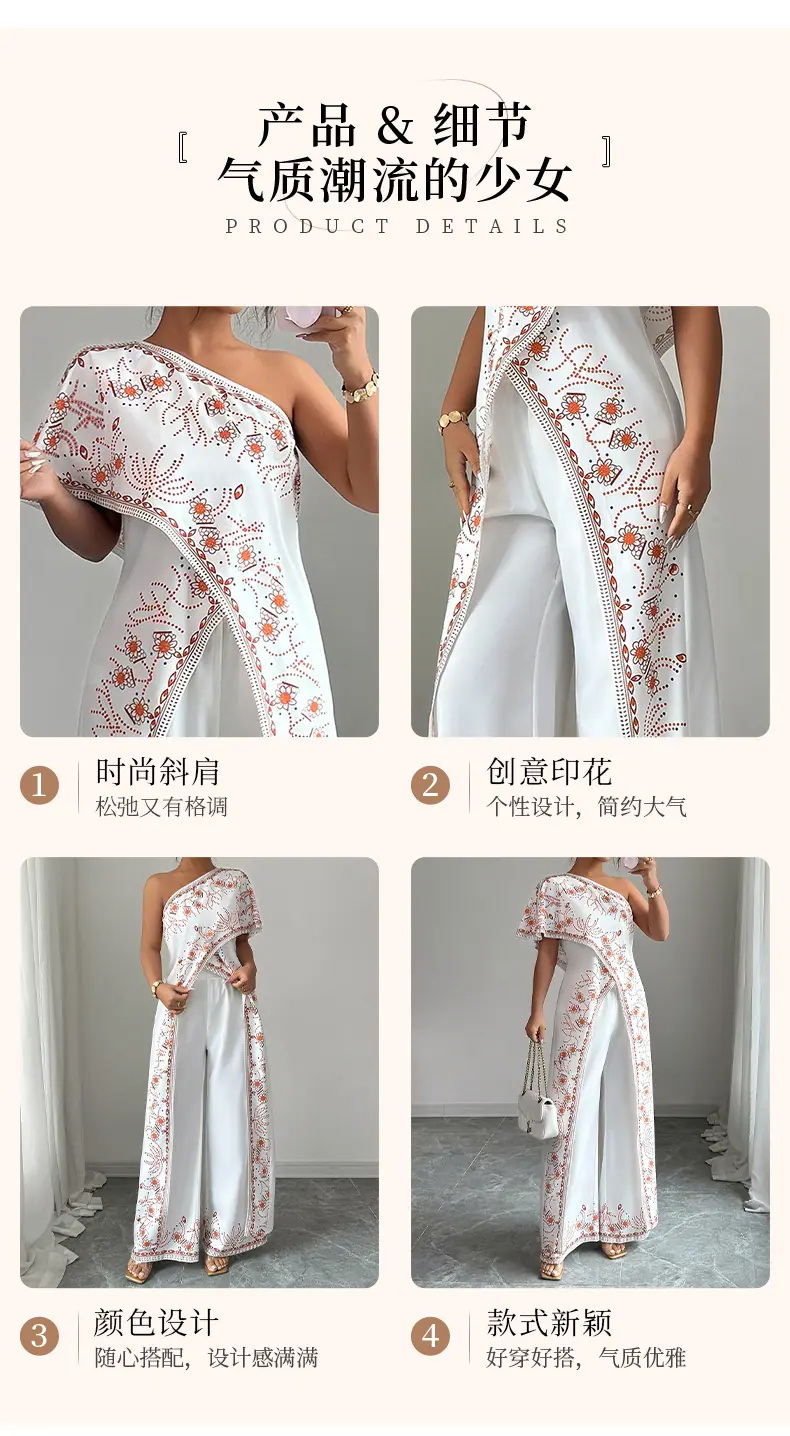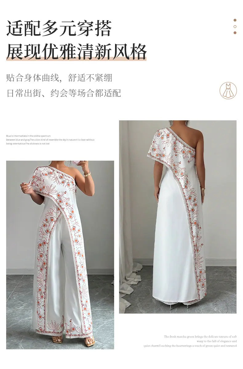Moda Europea y Americana 2025 Verano Nuevo Estampado Hombro Descubierto Pierna Ancha Mono Falda Temperamento Elegante Body de Cintura Alta
