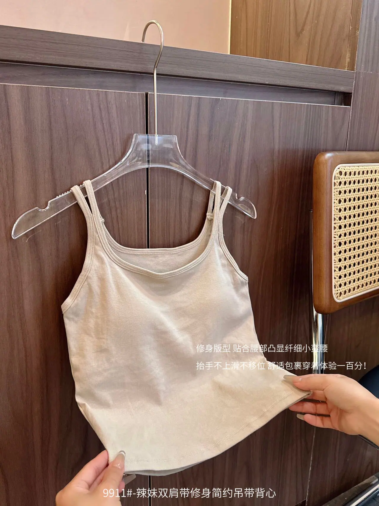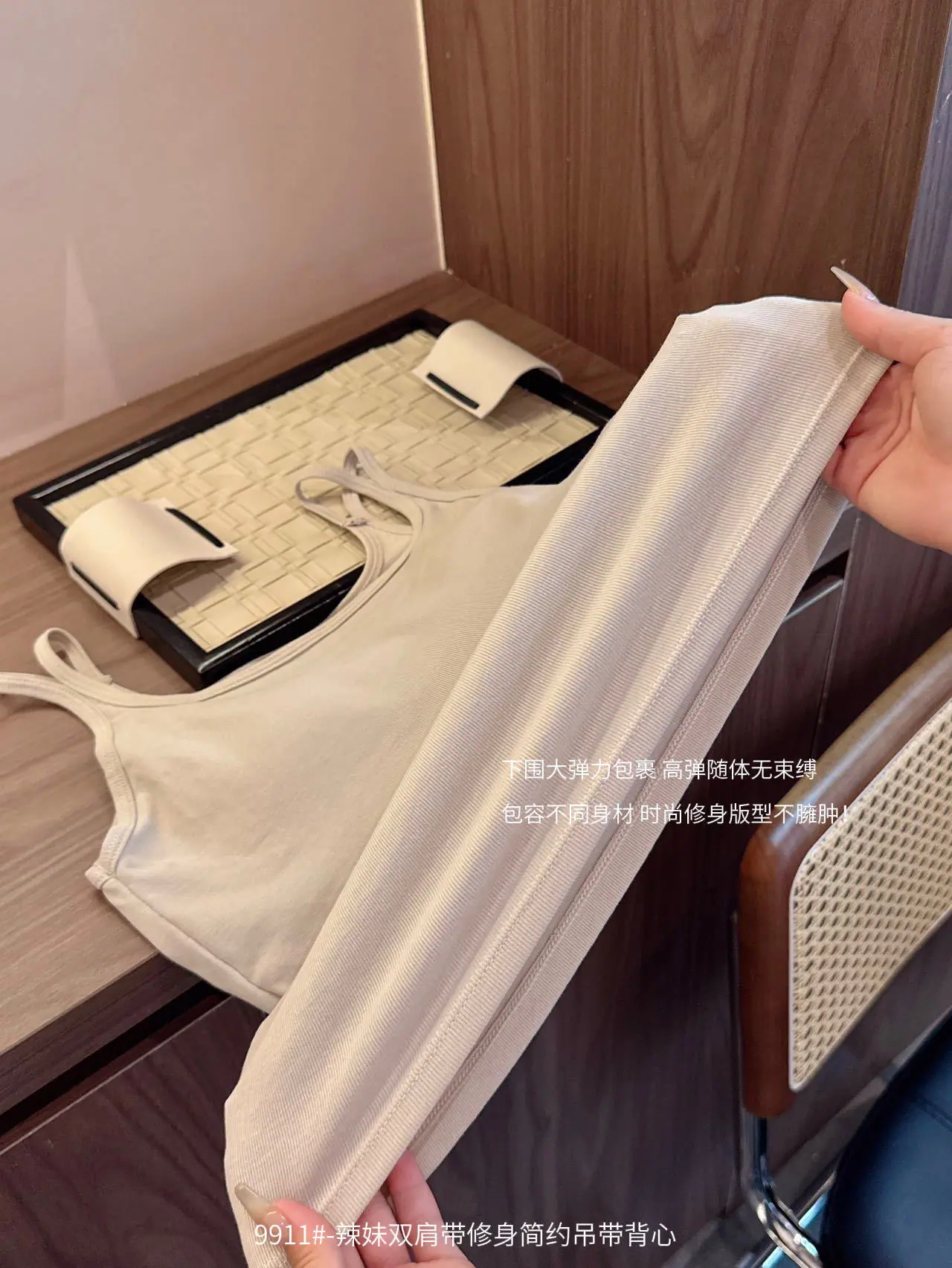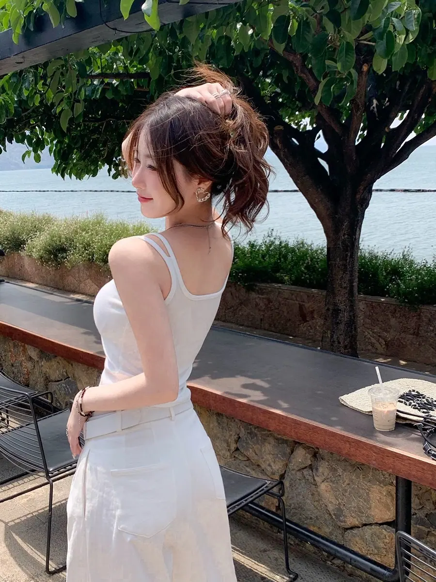 Verano Spice Girl Calle Doble Tirante Sujetador sin aros Ajustado Simple Combinable Camisola Chaleco Sexy de Largo Medio para Mujer