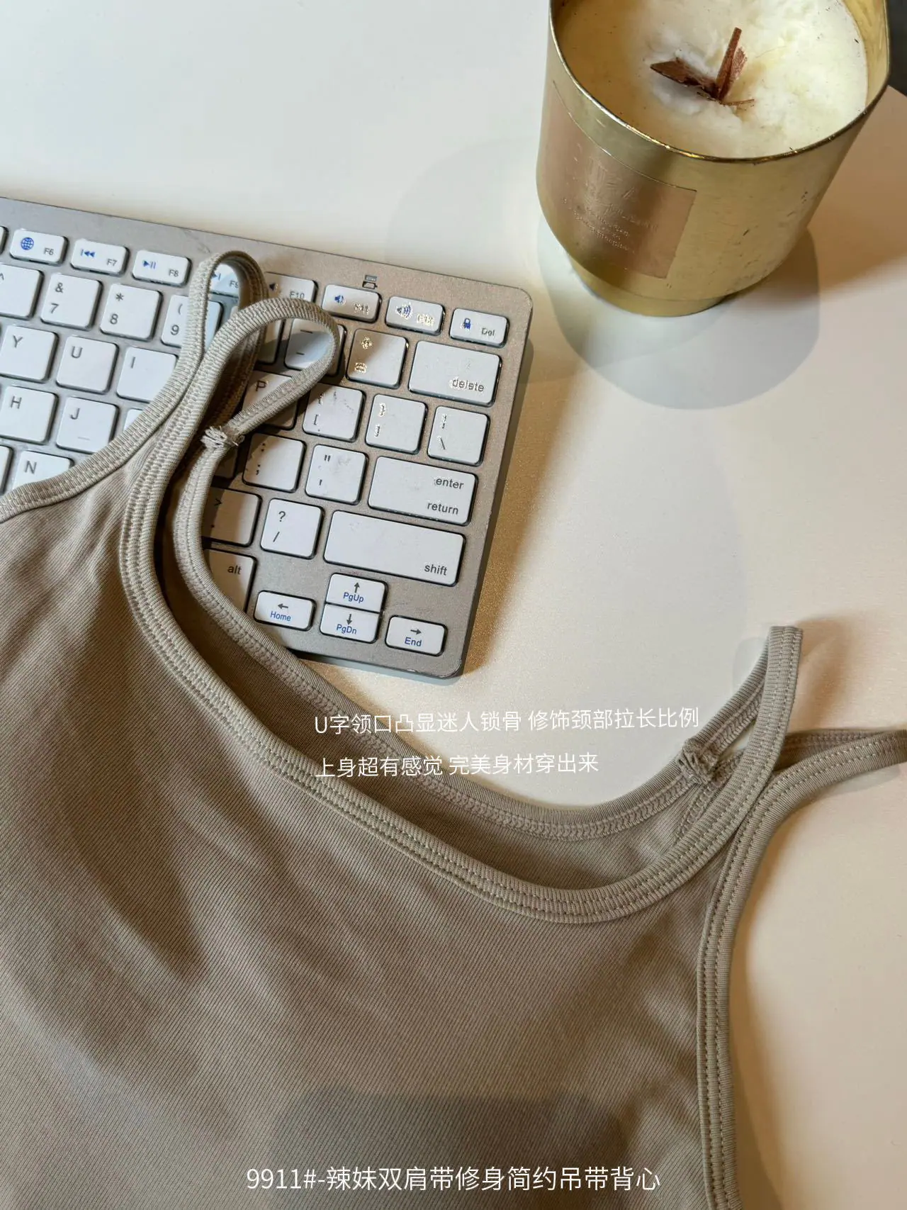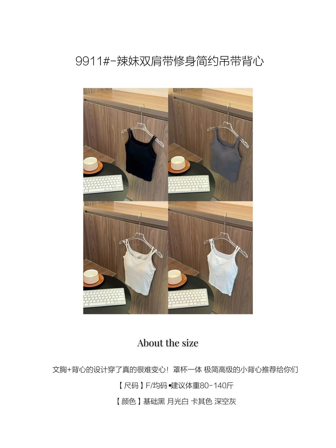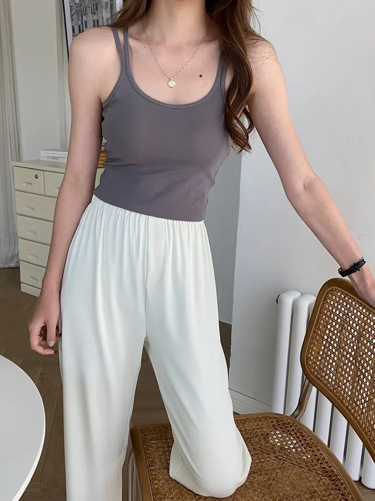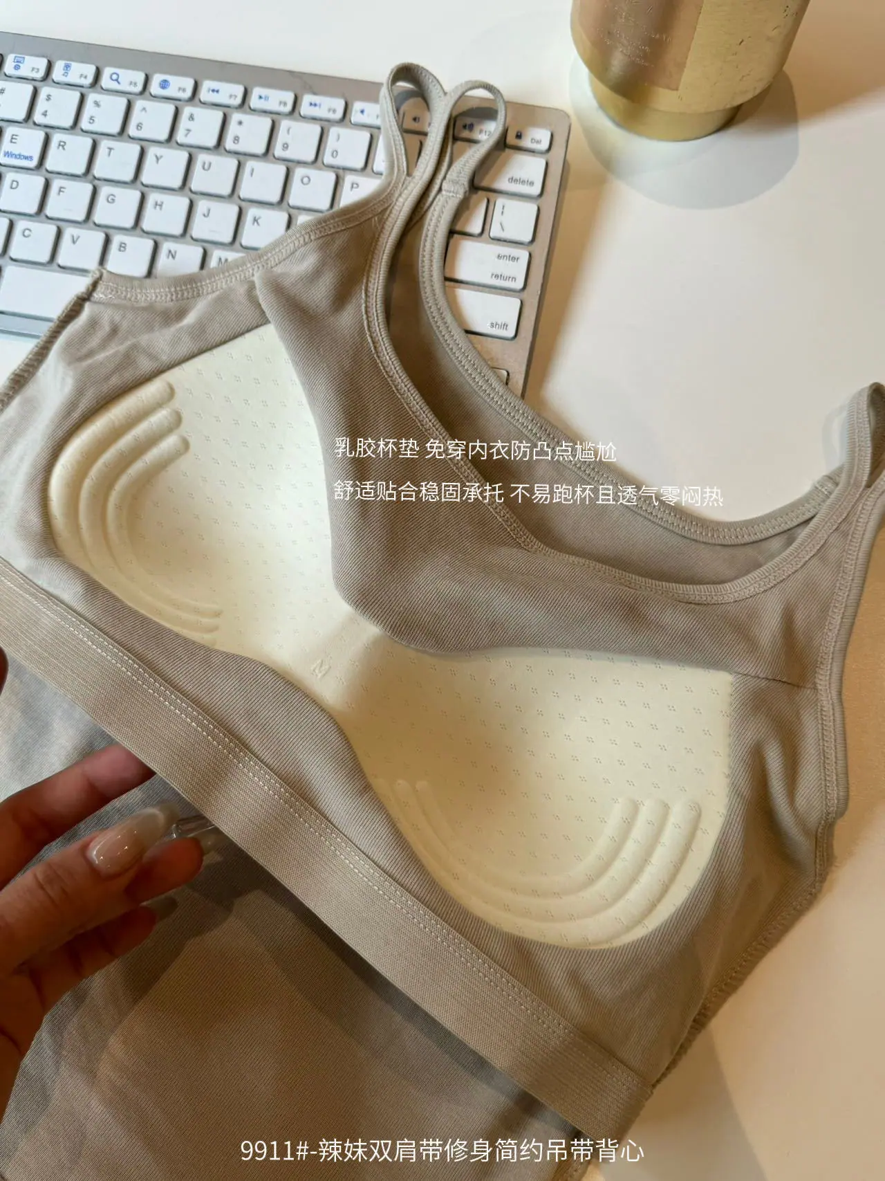 Verano Spice Girl Calle Doble Tirante Sujetador sin aros Ajustado Simple Combinable Camisola Chaleco Sexy de Largo Medio para Mujer