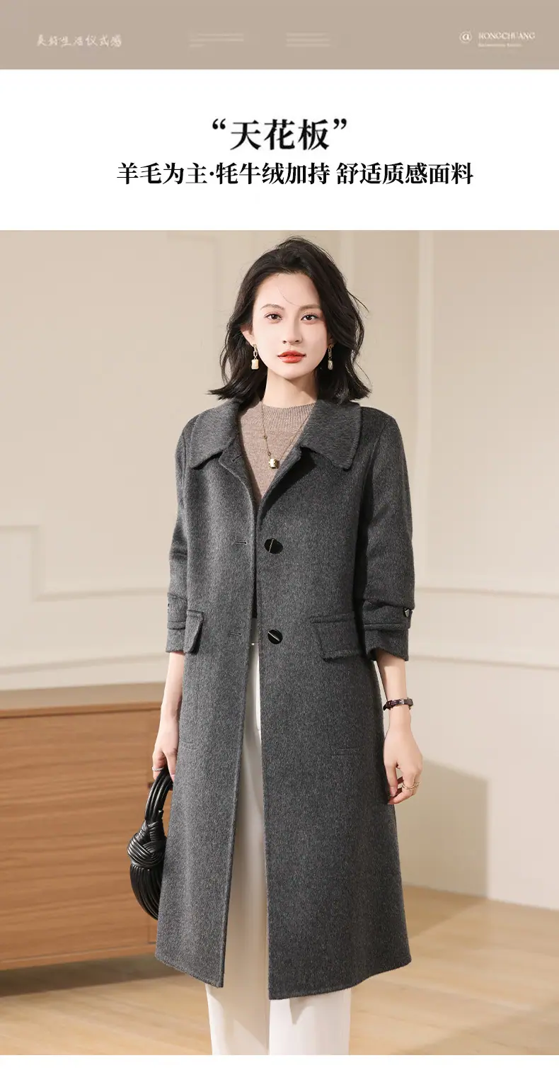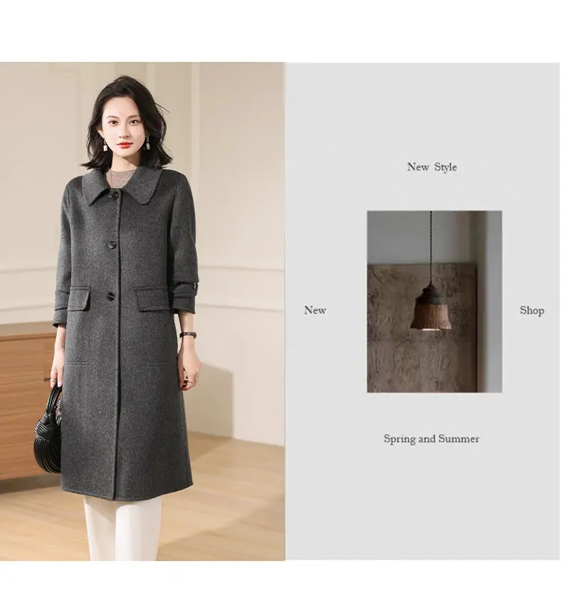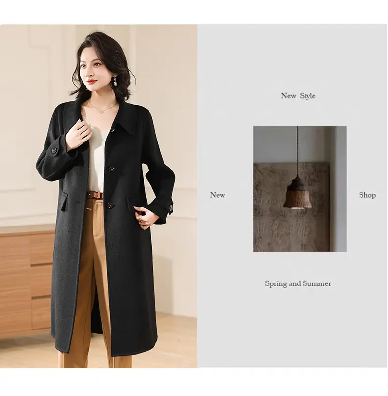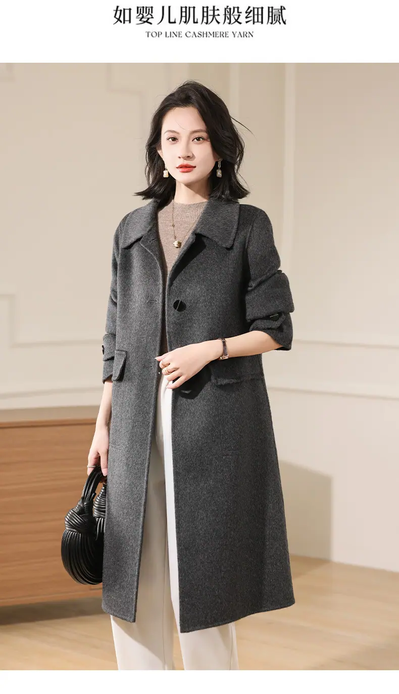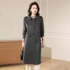 Abrigo de cachemira de doble cara moderno y versátil para mujer 2025 nuevo abrigo largo de lana de color sólido para otoño e invierno