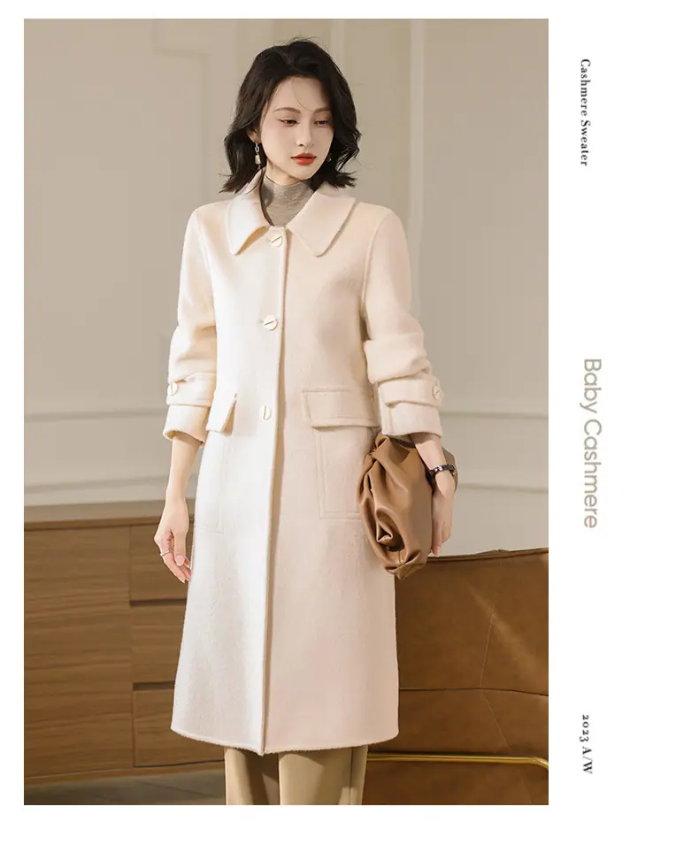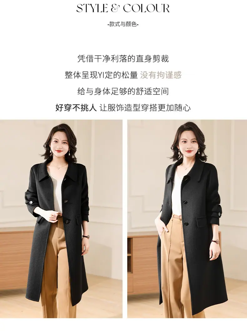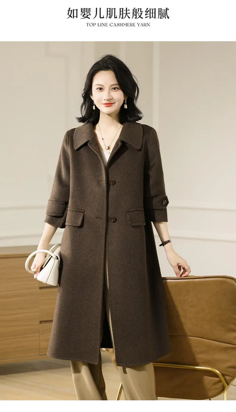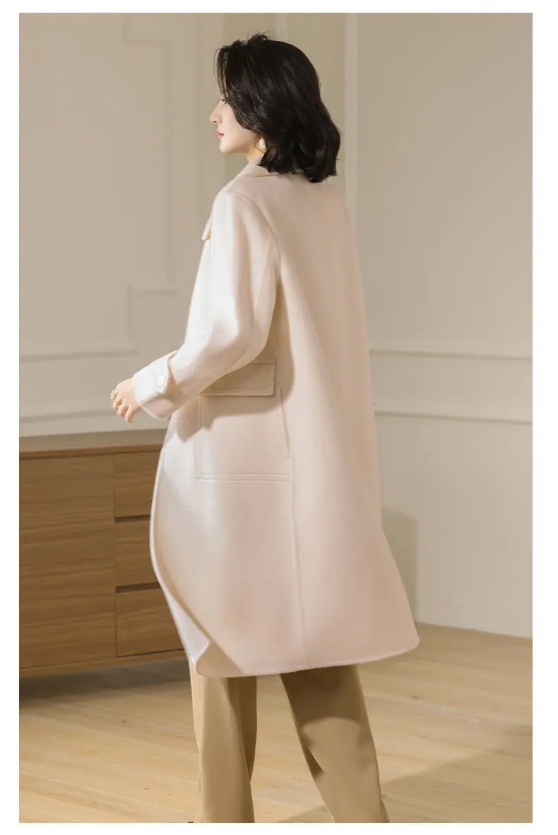 Abrigo de cachemira de doble cara moderno y versátil para mujer 2025 nuevo abrigo largo de lana de color sólido para otoño e invierno