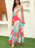 Compra Vestido sin espalda con estampado bohemio para mujer, falda larga con tirantes, primavera y verano 2024, estilo europeo y americano al por mayor en Joom.pro