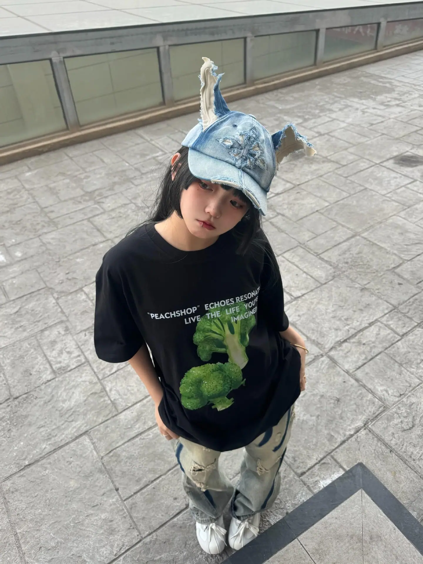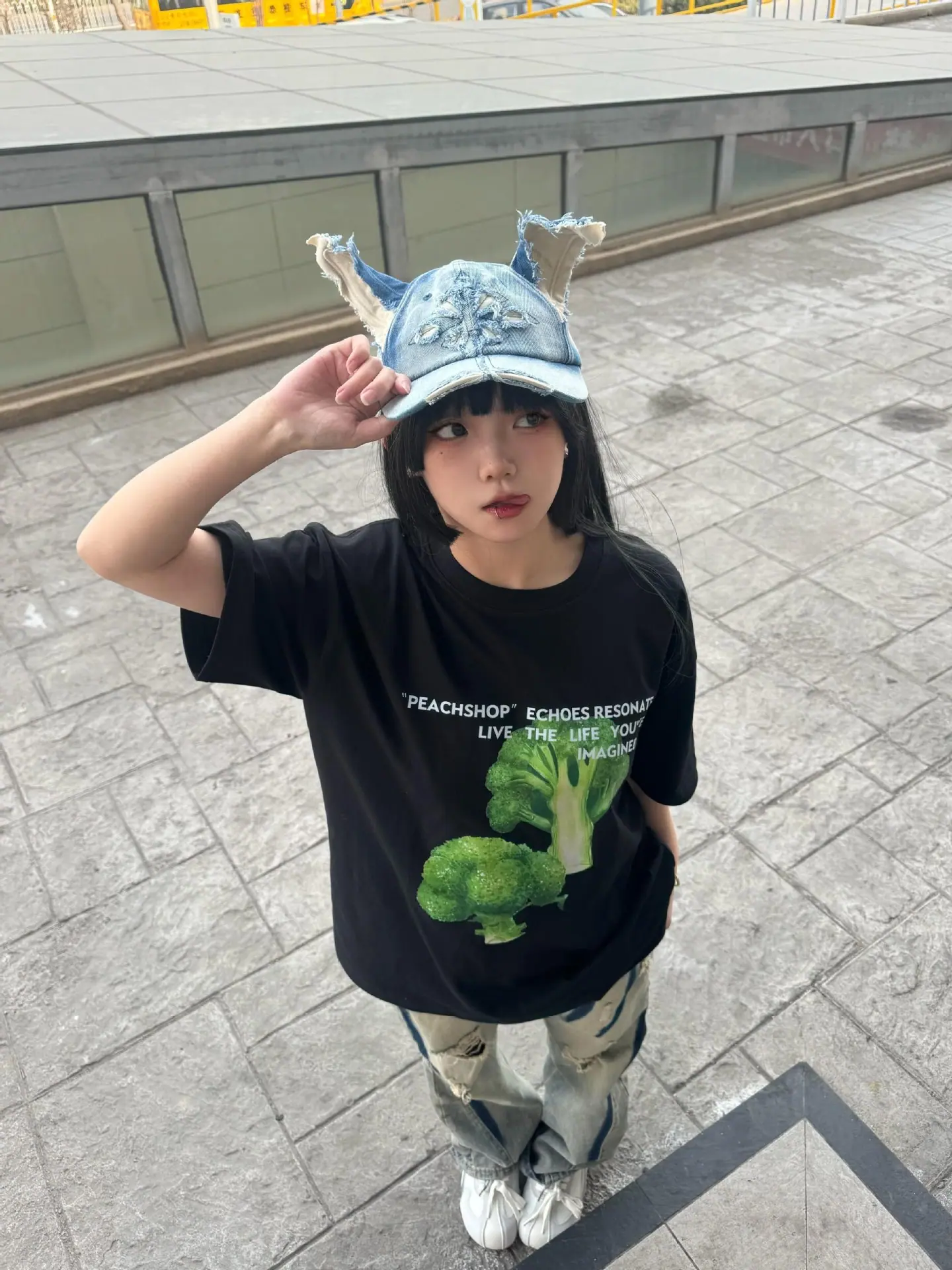 Compra Camiseta de Moda Urbana Duradera Estampada de Media Manga Top Camiseta de Manga Corta de Algodón Puro para Mujer Popular Verano Blanco y Negro al por mayor en Joom.pro
