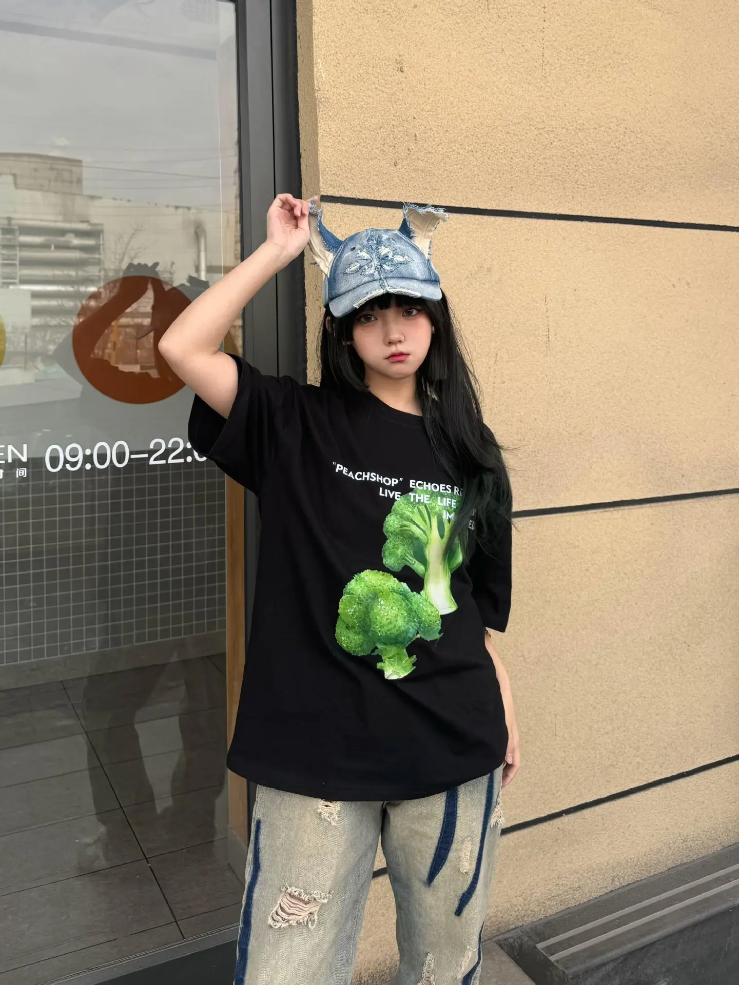 Camiseta de Moda Urbana Duradera Estampada de Media Manga Top Camiseta de Manga Corta de Algodón Puro para Mujer Popular Verano Blanco y Negro