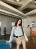 Camiseta Casual de Manga Larga con Bloque de Color a Rayas para Protección Solar para Mujer Otoño 2025 Nuevo Top Versátil Holgado Adelgazante