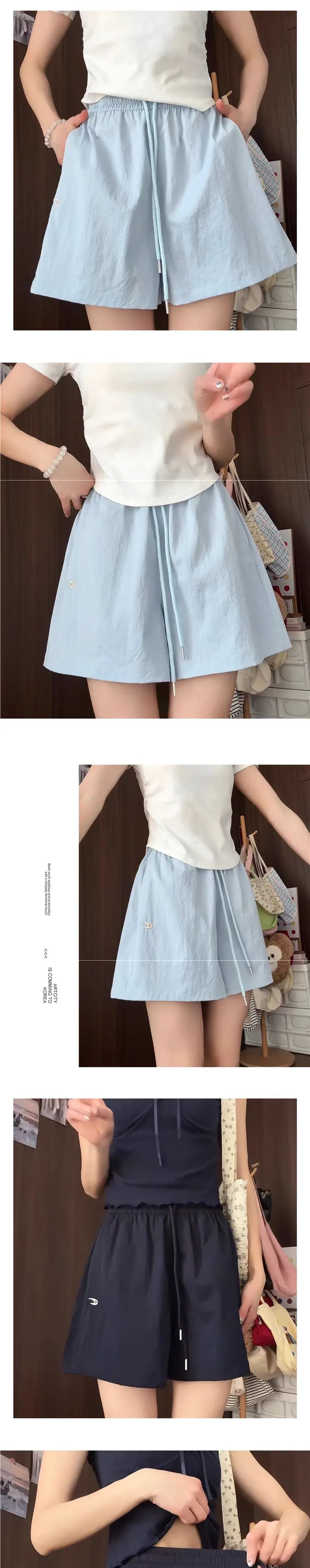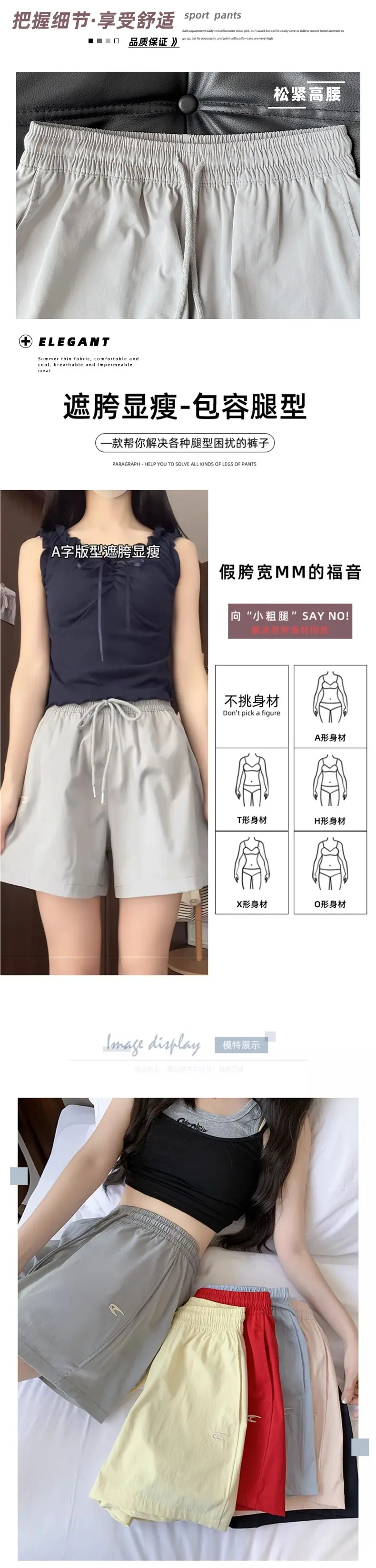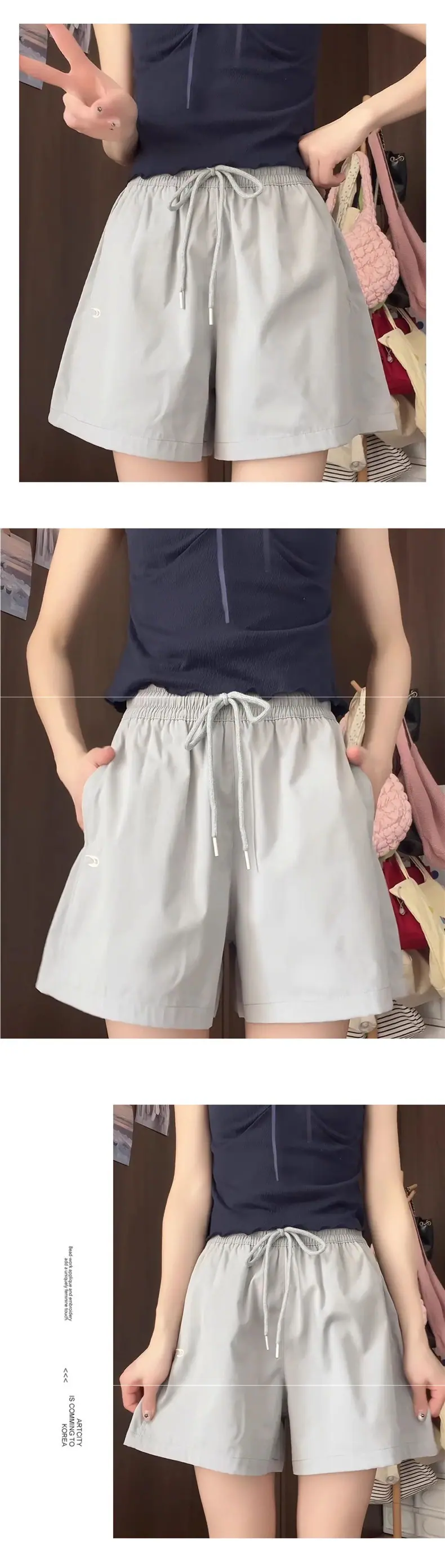 Shorts Deportivos de Pierna Ancha para Mujer Ropa Exterior Verano Delgados 2025 Nuevo Casual Cintura Alta Petite Gris Secado Rápido Pantalones Cinco Puntos
