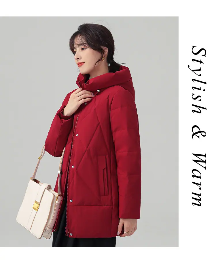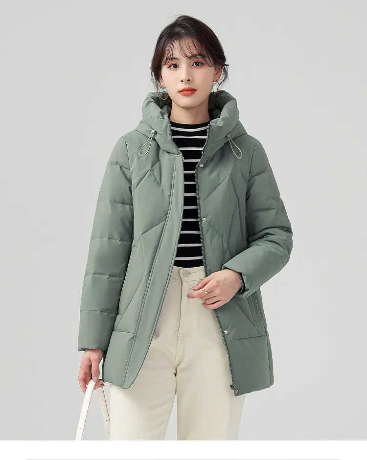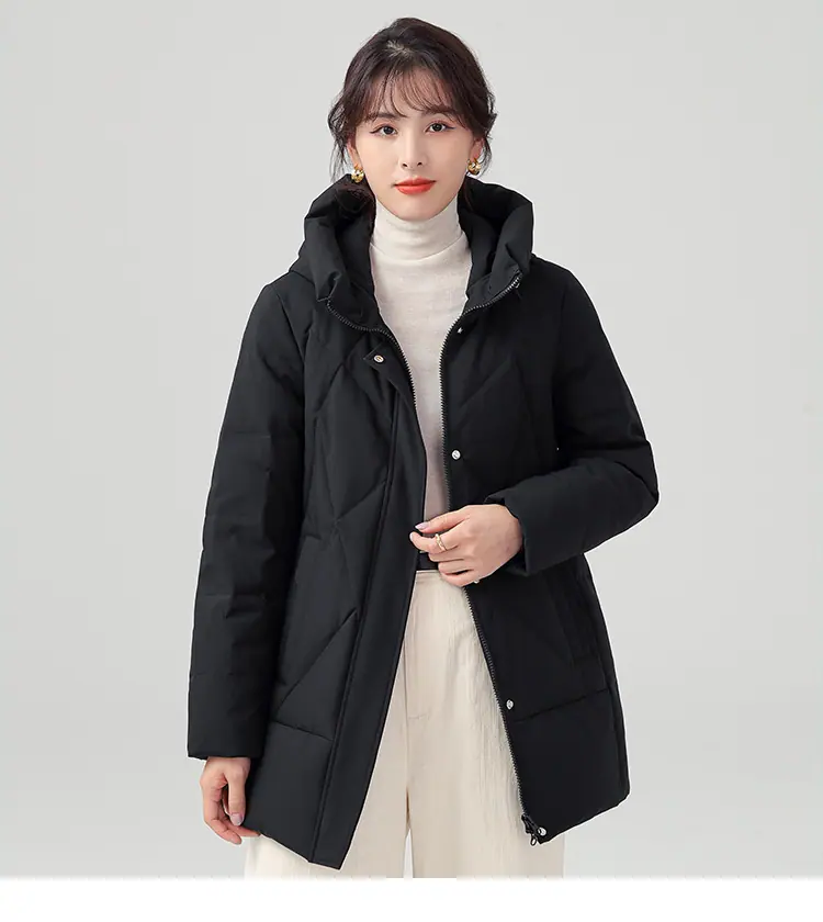 Nieve Cayendo Chaqueta de Plumas para Mujer 2025 Nueva Chaqueta con Capucha a Prueba de Frío Gruesa Cálida Estilo Occidental Media Longitud Chaqueta de Plumas de Pato