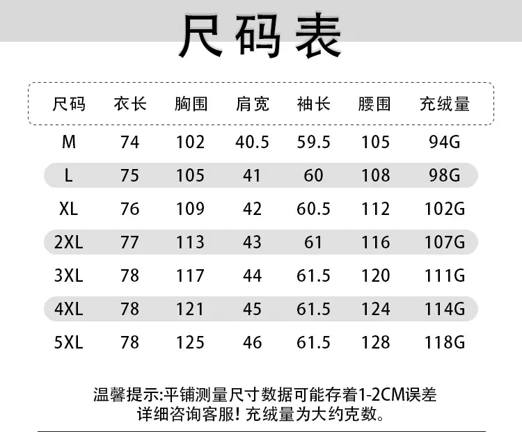 160/M, 165/L, 170/XL, 175/2XL, 180/3XL, 185/4XL