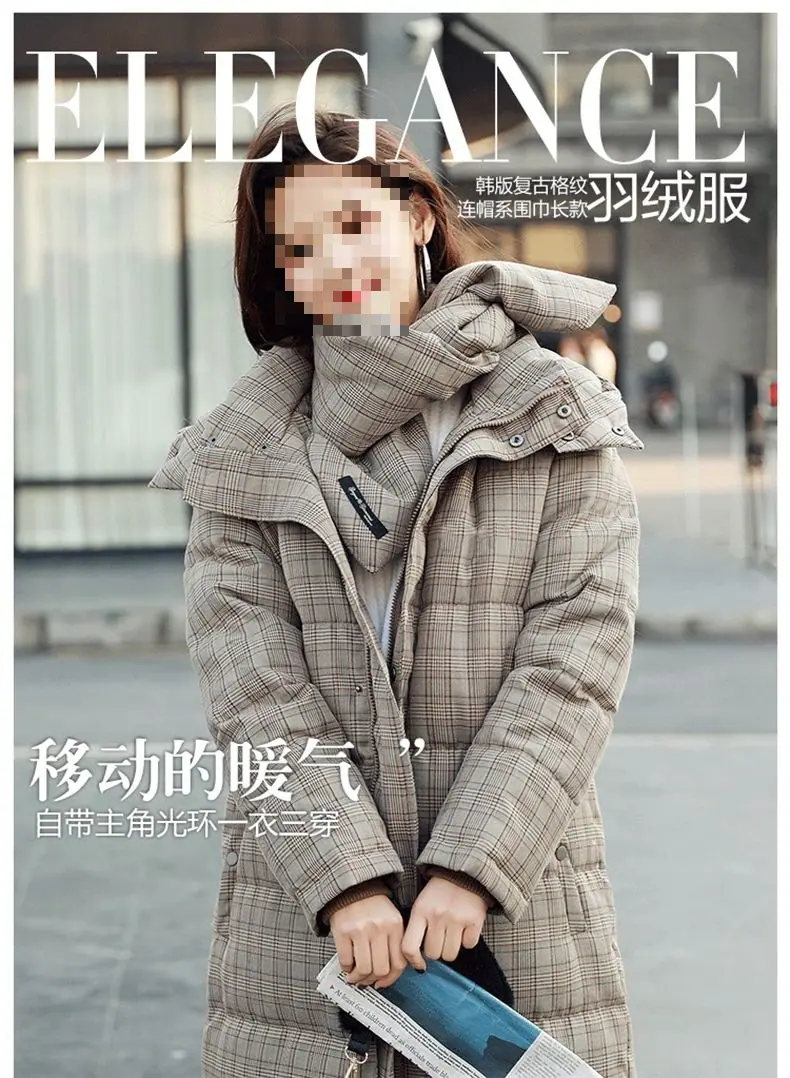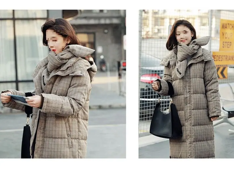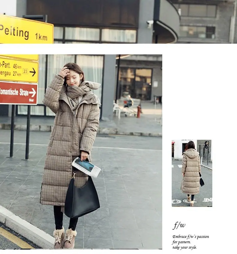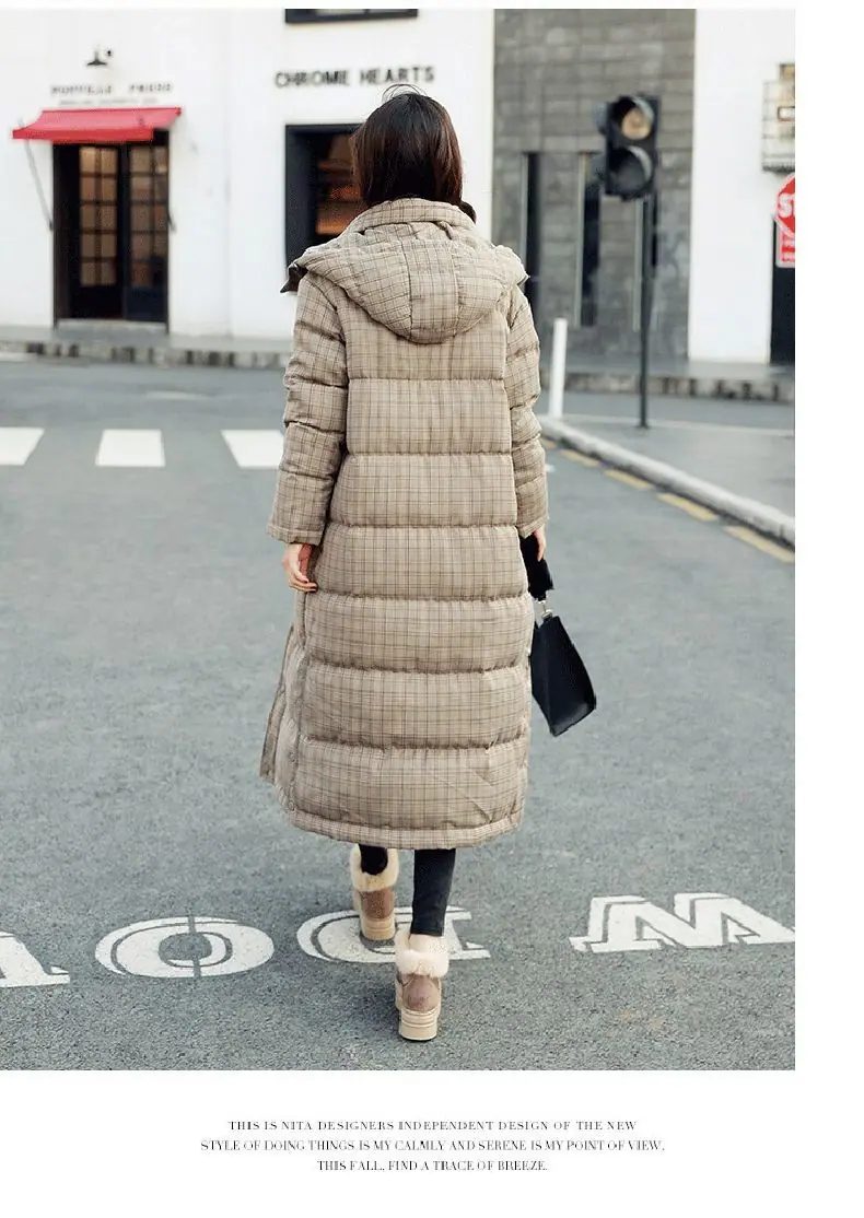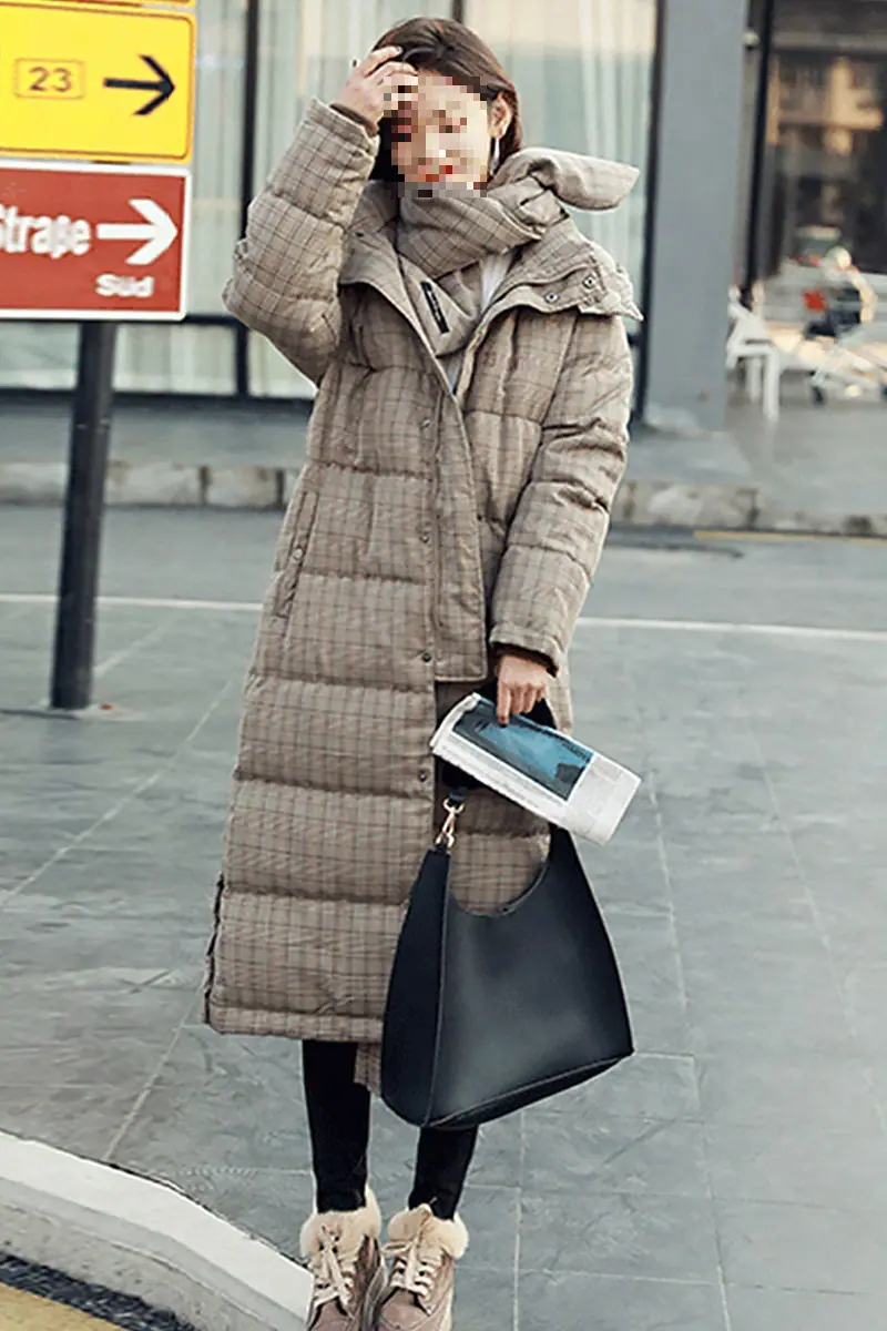 Chamarra de Plumas a Cuadros para Mujer Ropa de Trabajo 2025 Nuevo Invierno Abrigo Exterior Mujer Invierno Chamarra Larga de Plumas para Mujer Larga Sobre la Rodilla