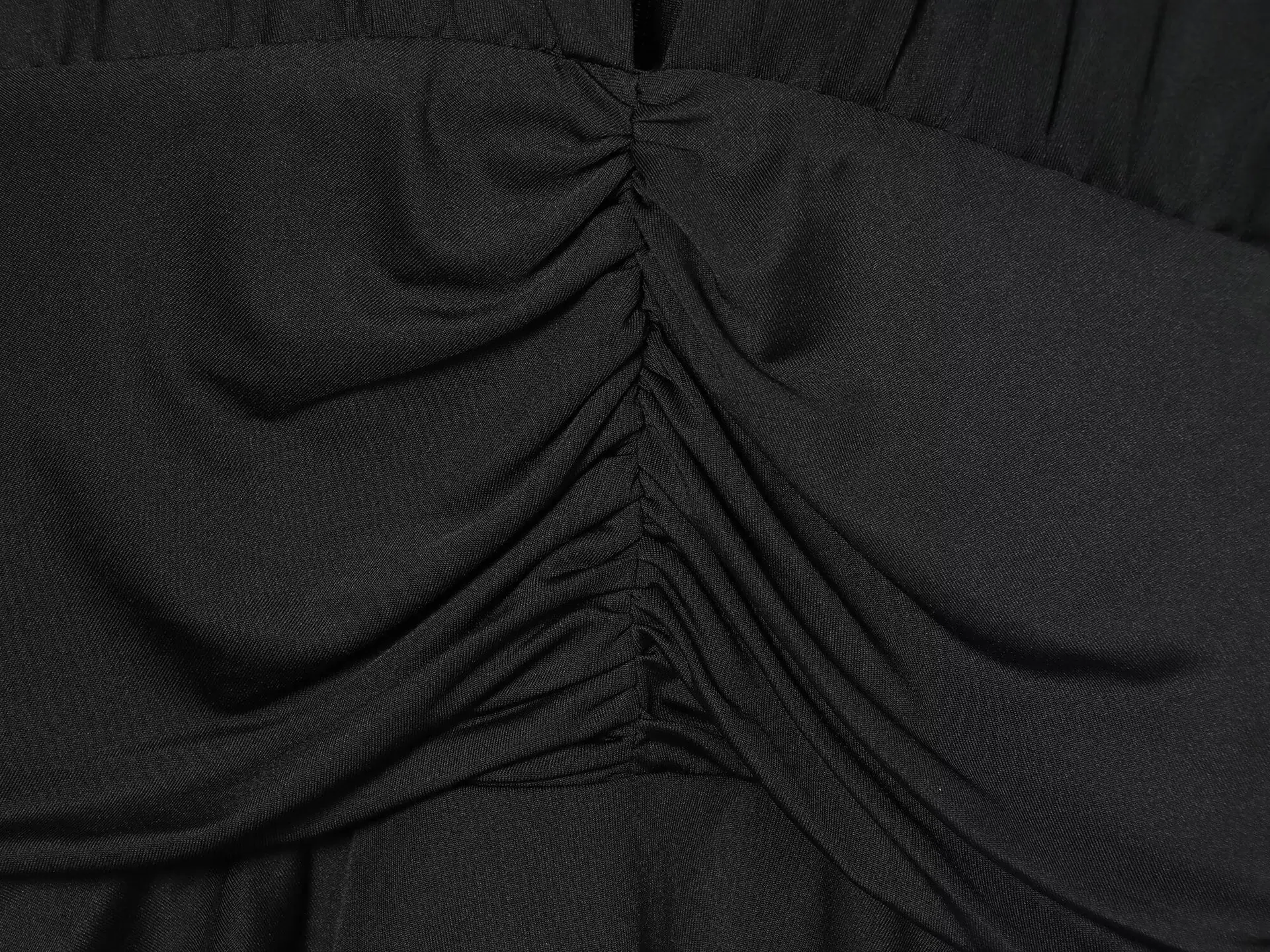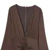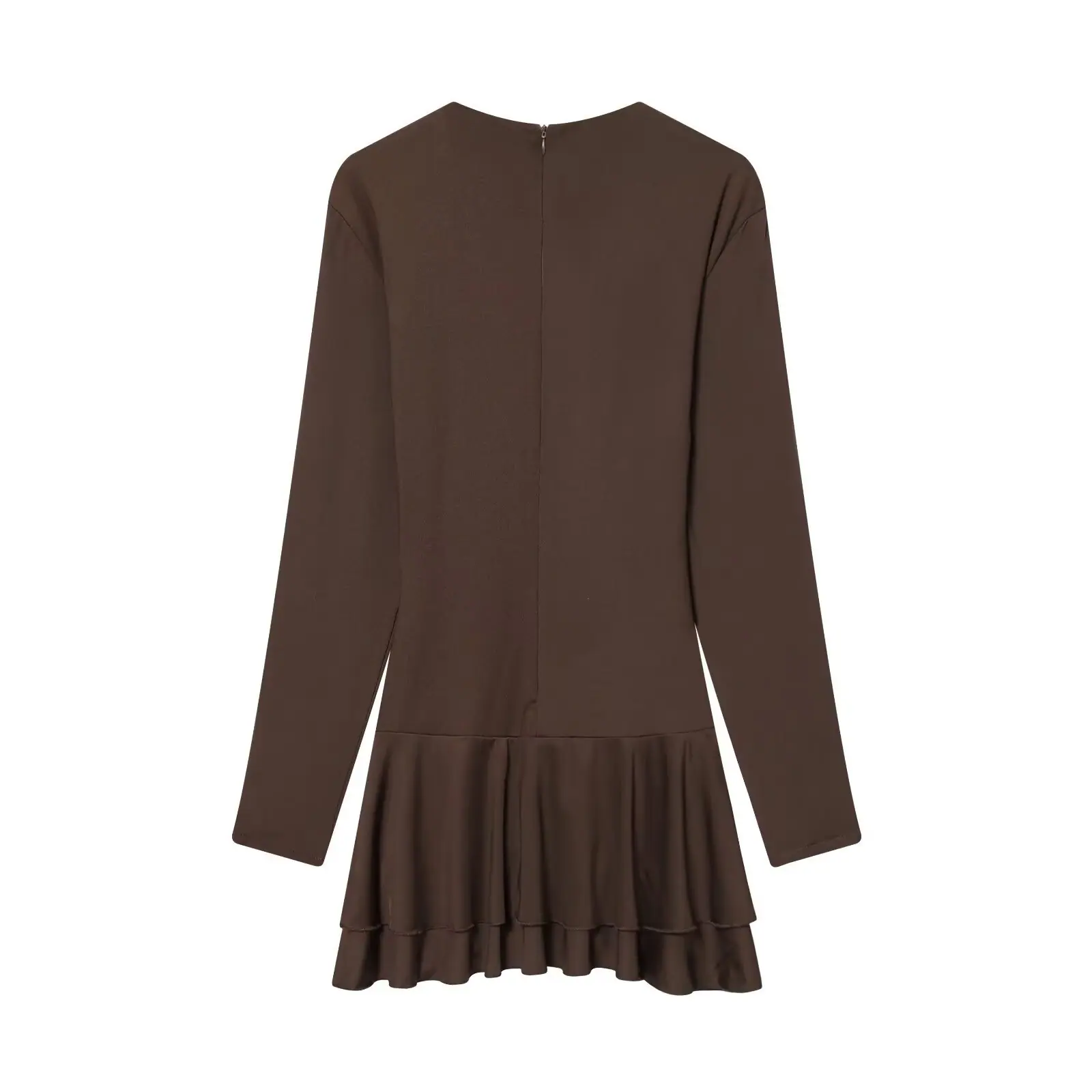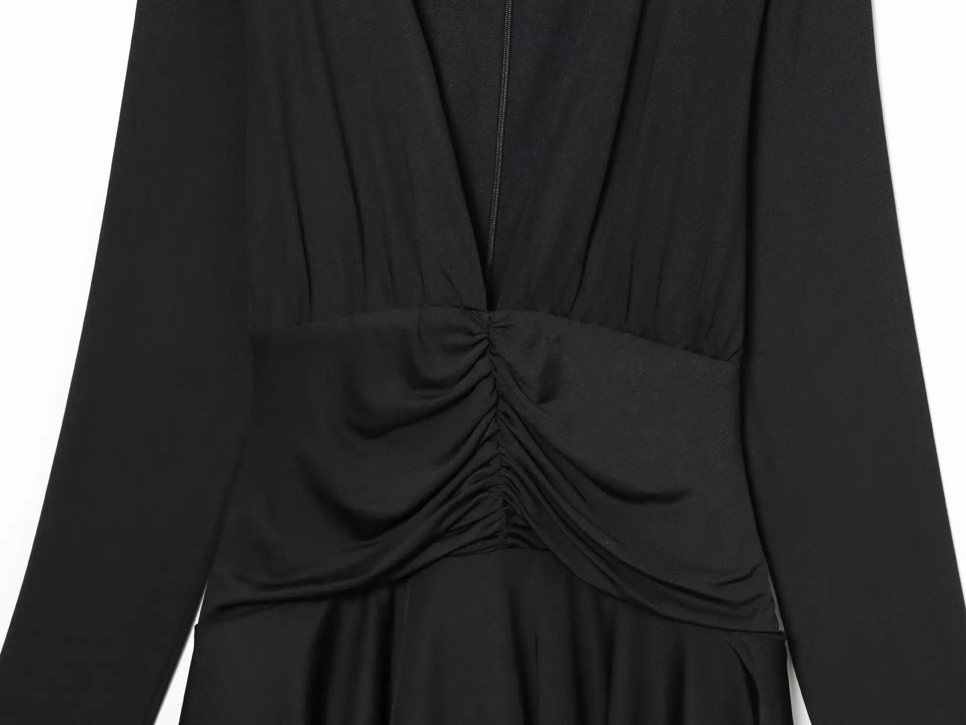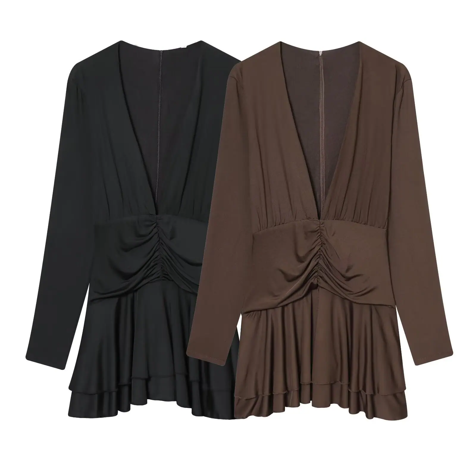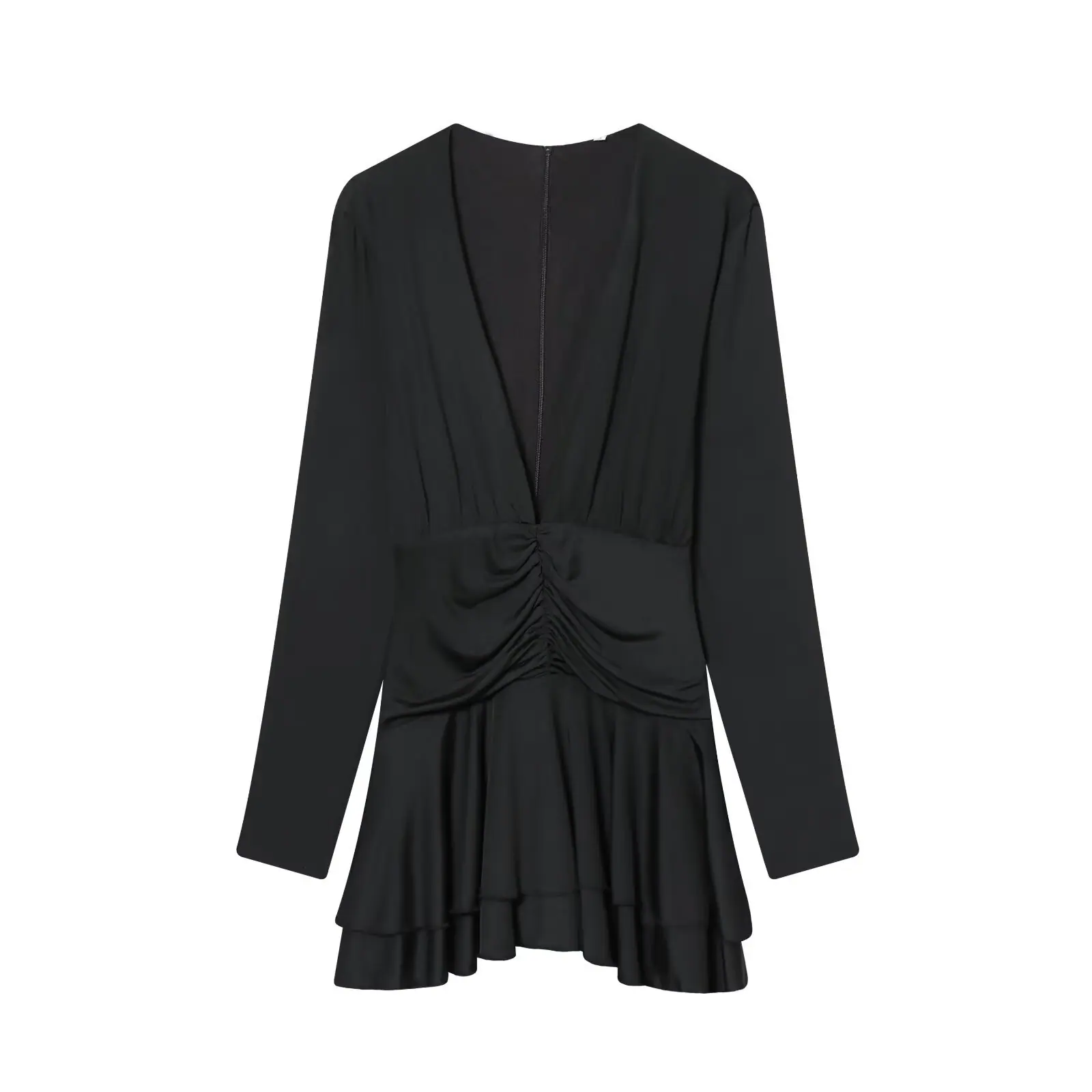 Venta al por mayor de ropa de mujer transfronteriza Estilo europeo y americano 2025 Nuevo color sólido Cuello en V profundo Entallado Adelgazante Temperamento Vestido