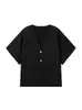 Amazon Mujer Mayorista 2025 Verano Nuevo Estilo Europeo y Americano Simple Versátil Liso Tejido Manga Corta Cuello en V Prendas de Punto