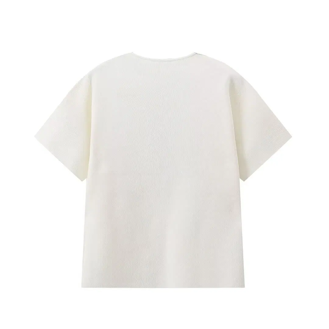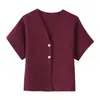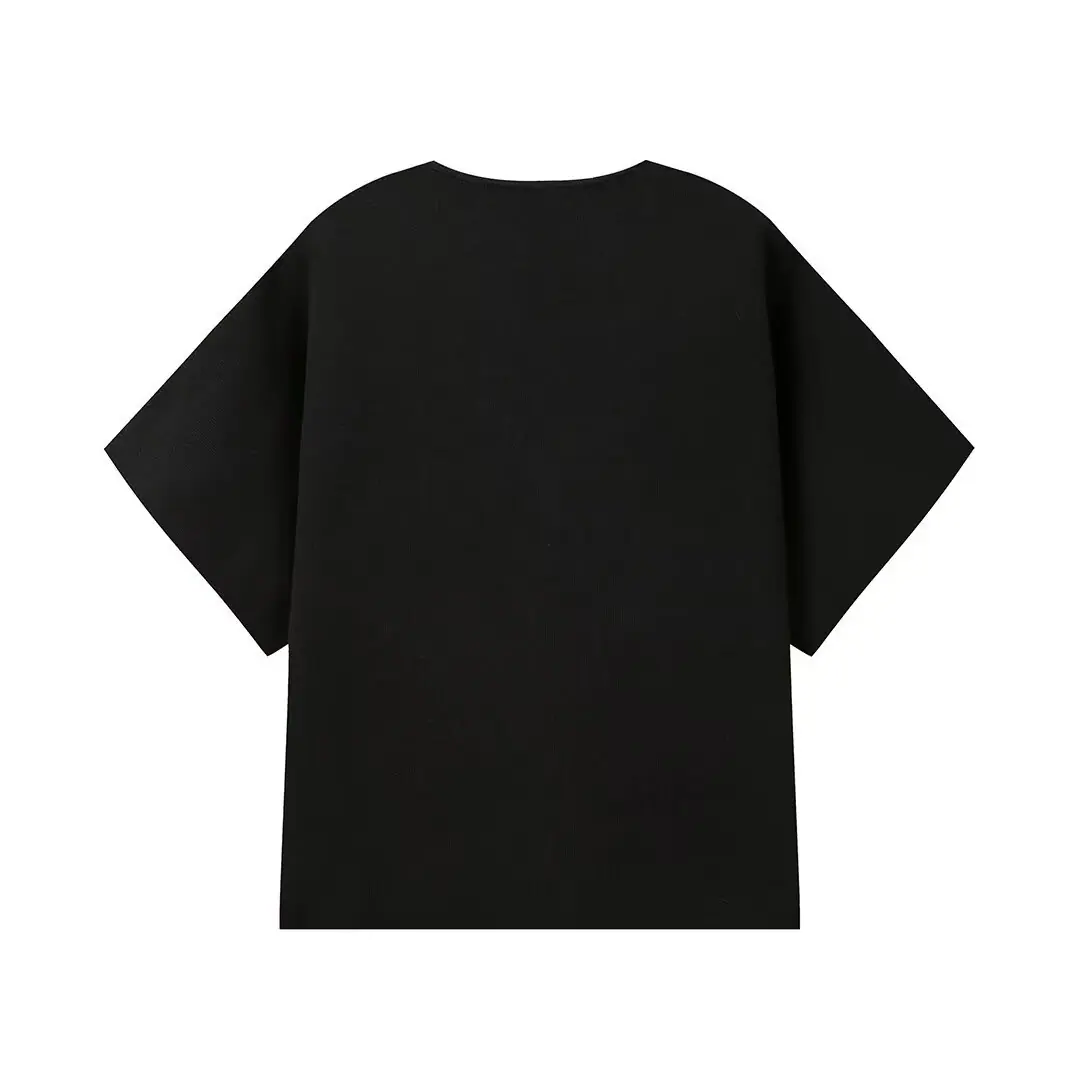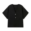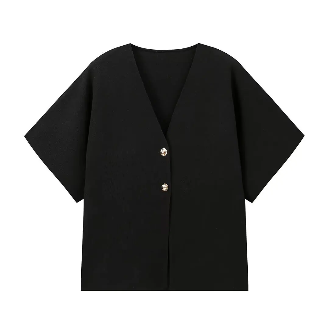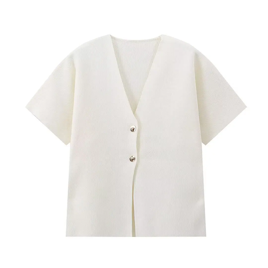 Compra Amazon Mujer Mayorista 2025 Verano Nuevo Estilo Europeo y Americano Simple Versátil Liso Tejido Manga Corta Cuello en V Prendas de Punto al por mayor en Joom.pro