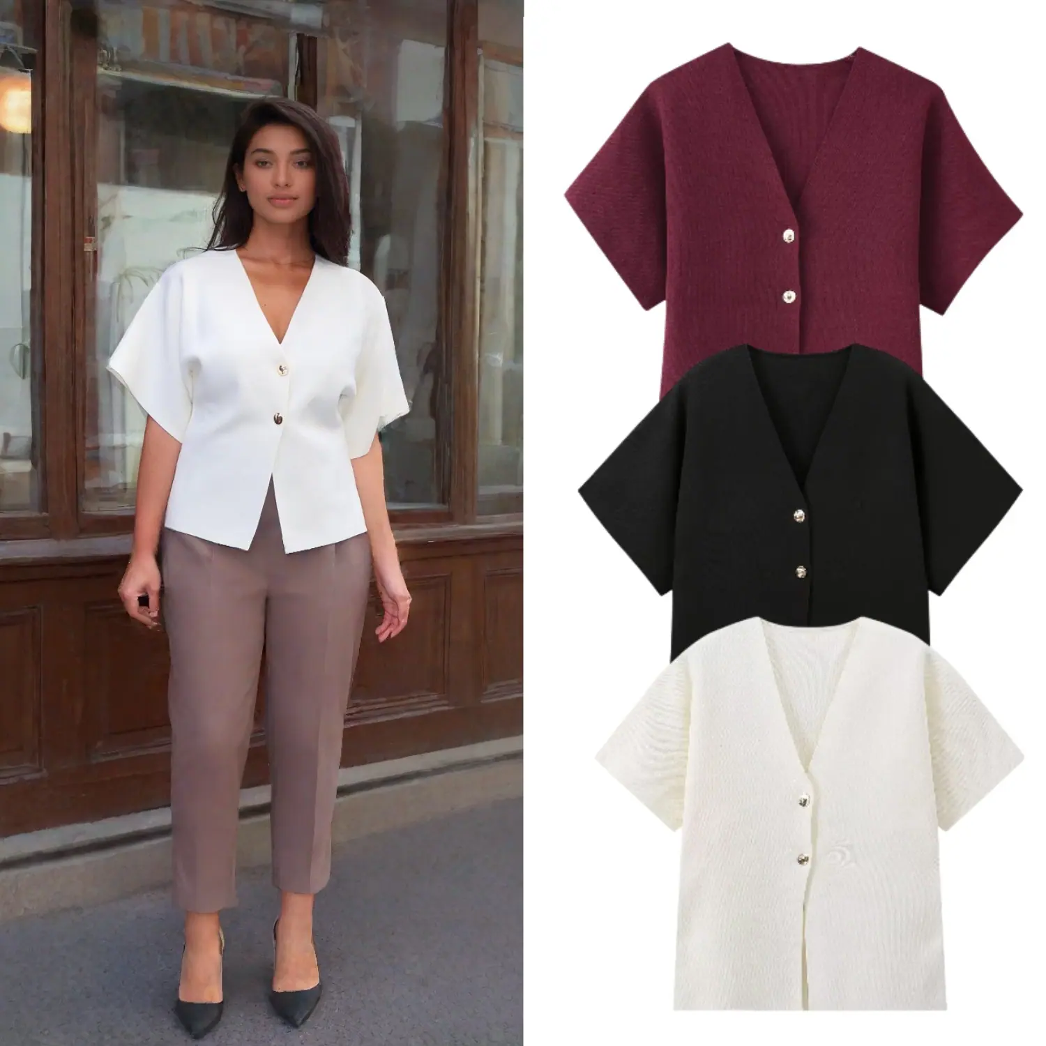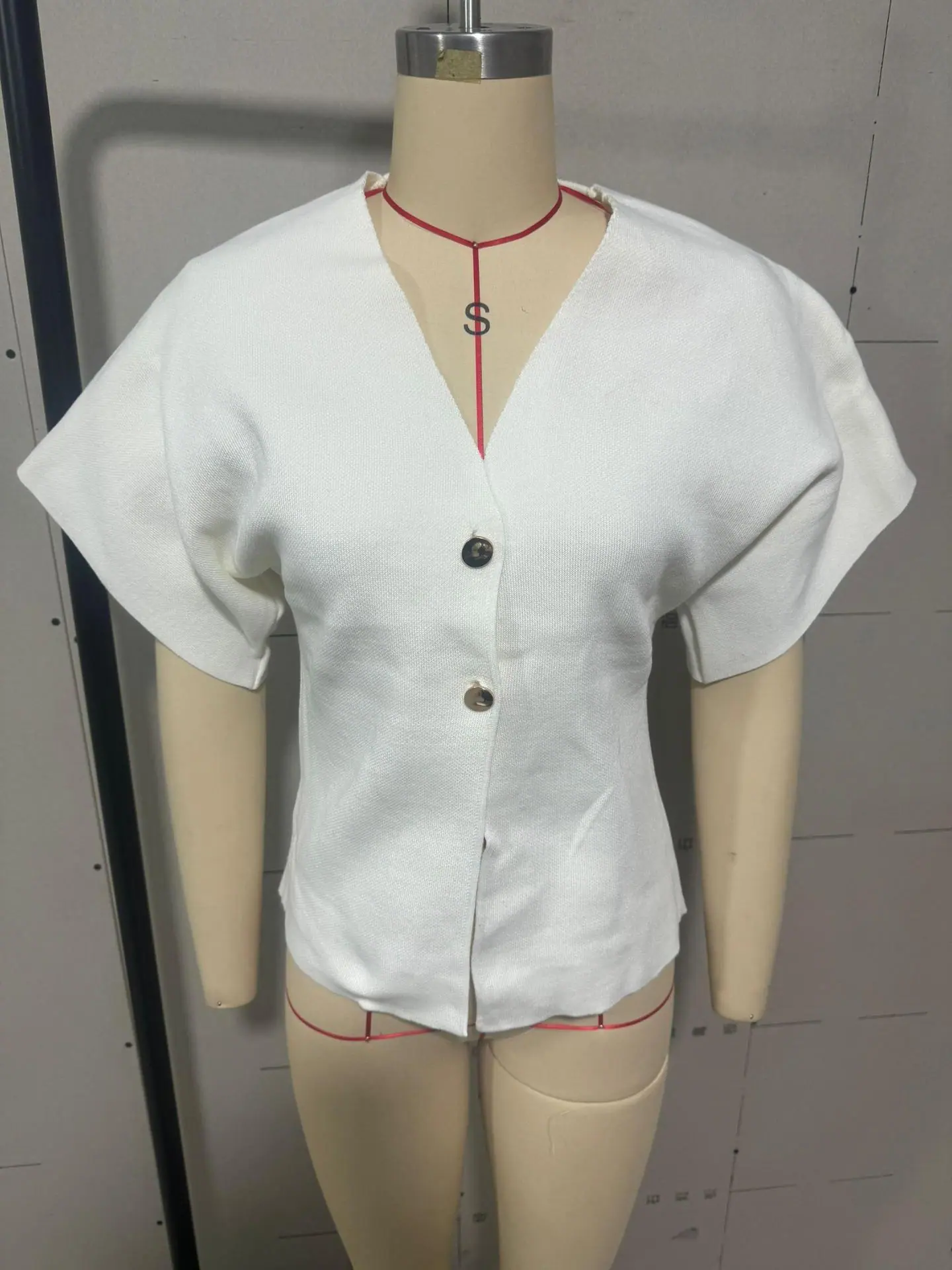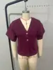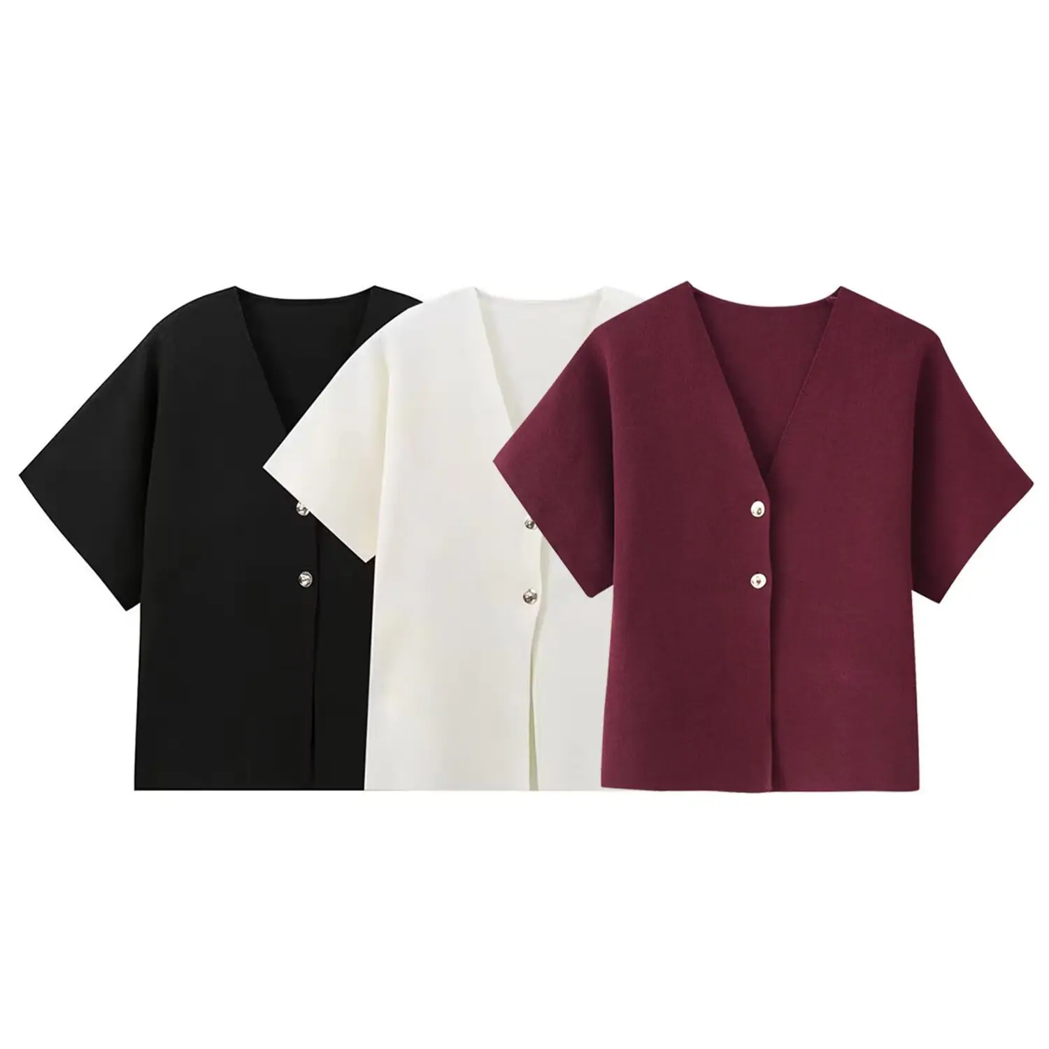Compra Amazon Mujer Mayorista 2025 Verano Nuevo Estilo Europeo y Americano Simple Versátil Liso Tejido Manga Corta Cuello en V Prendas de Punto al por mayor en Joom.pro