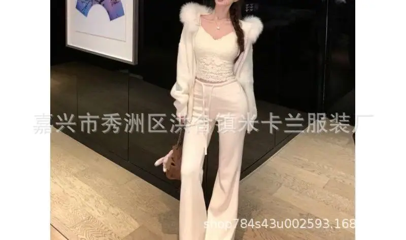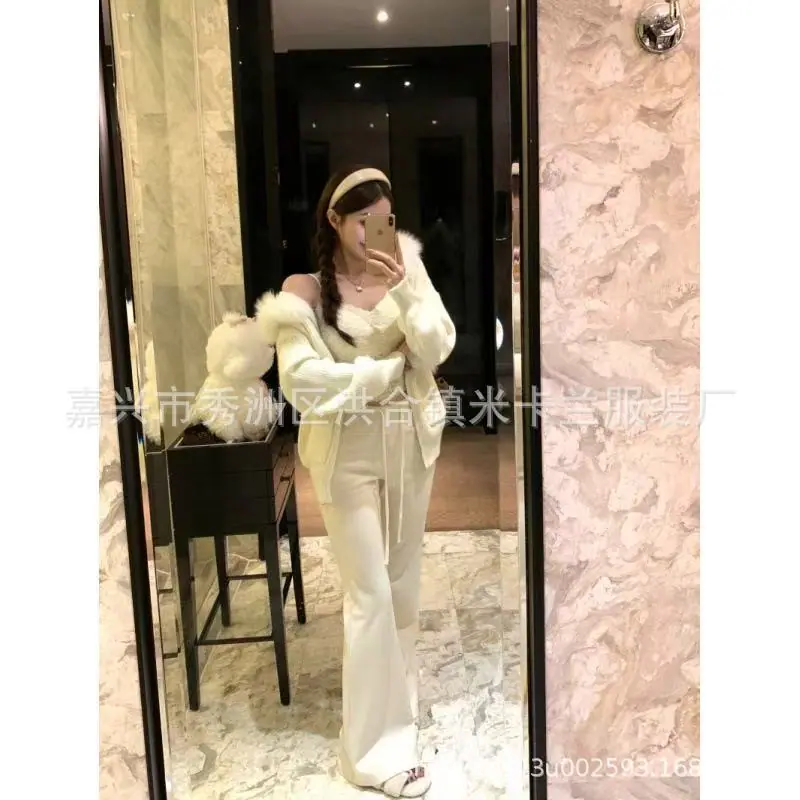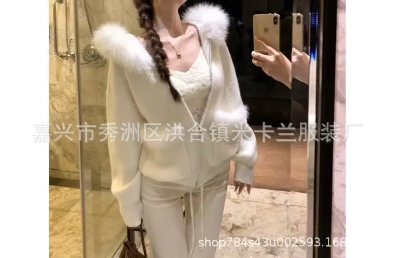 Abrigo cárdigan corto de punto para mujer con cuello nuevo de invierno esponjoso engrosado de piel de zorro real con cremallera y top de piel ajustado