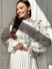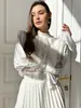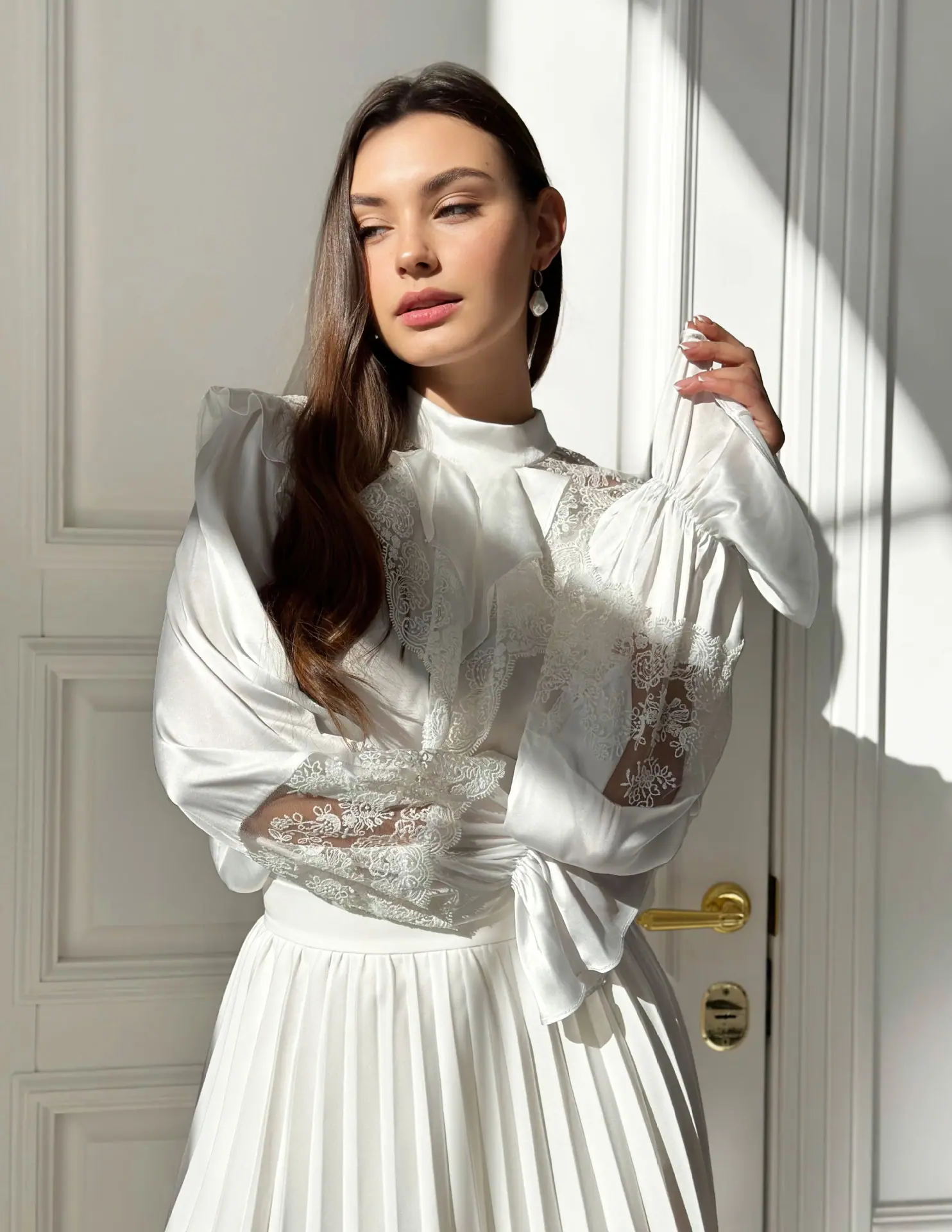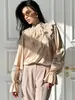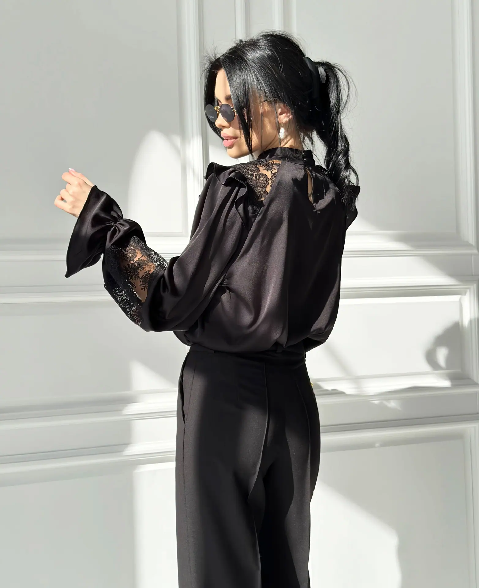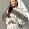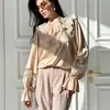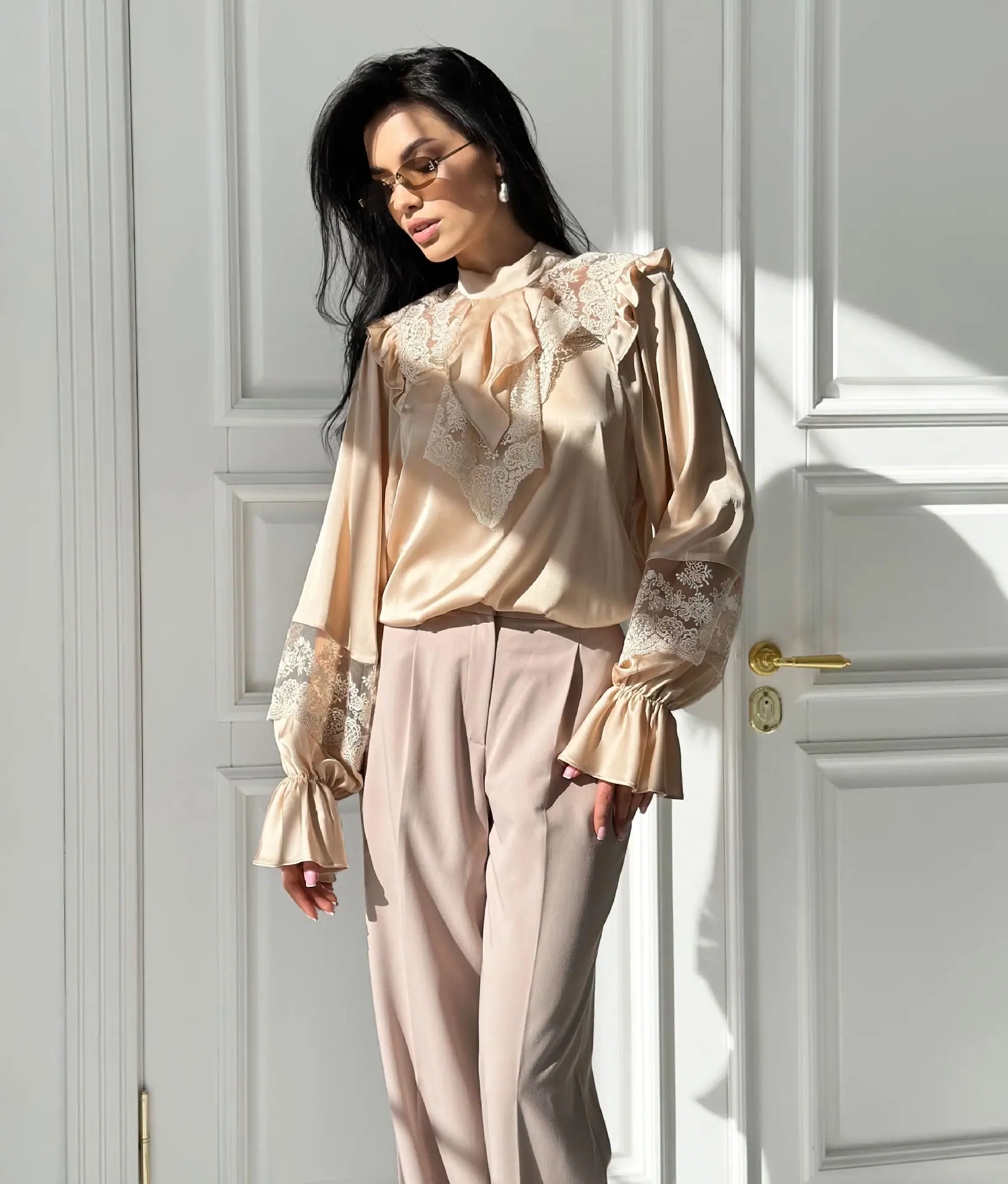 Nueva Blusa de Satén Francés con Volantes Otoño/Invierno Camisa de Encaje Patchwork Sentido del Diseño Temperamento Moda 2025 Transfronteriza