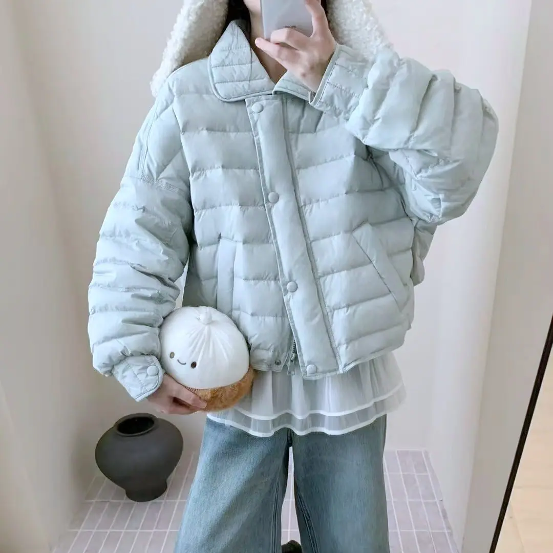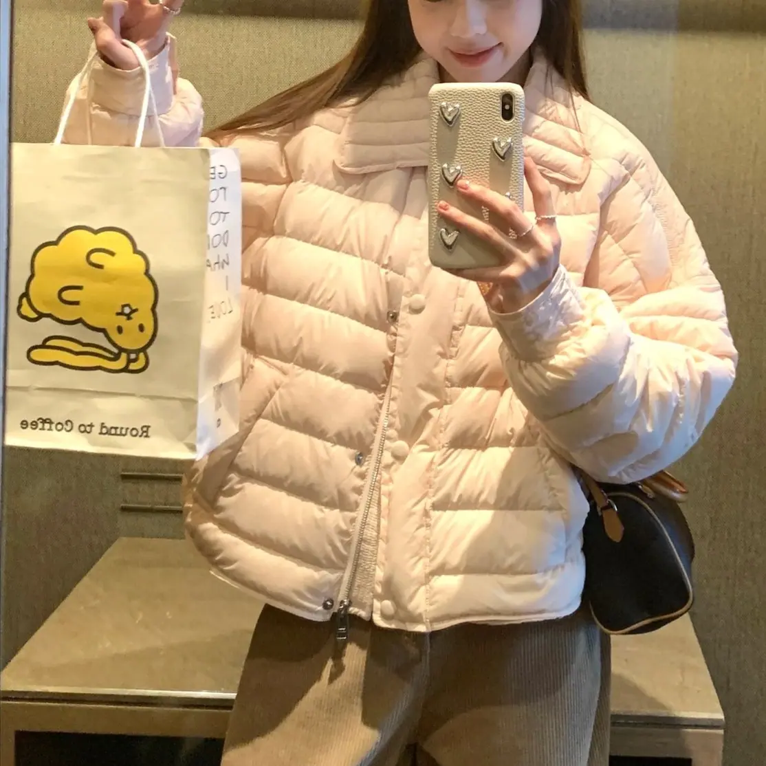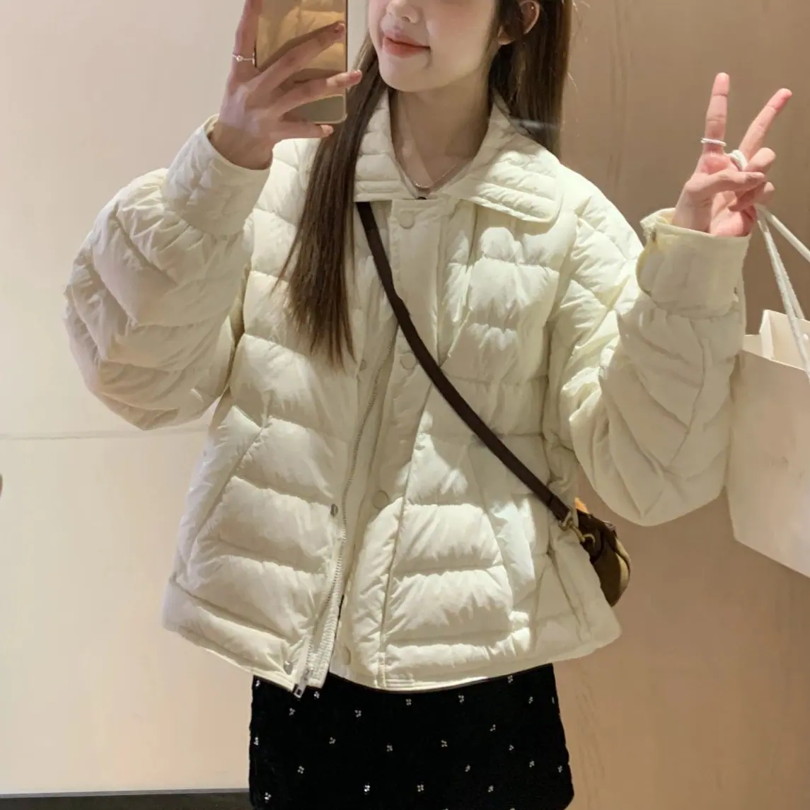 Chaqueta Corta Ligera Delgada con Solapa de Algodón para Mujer Invierno 2025 Nueva Moda Versátil Casual Dulce para Ir al Trabajo Tendencia