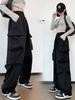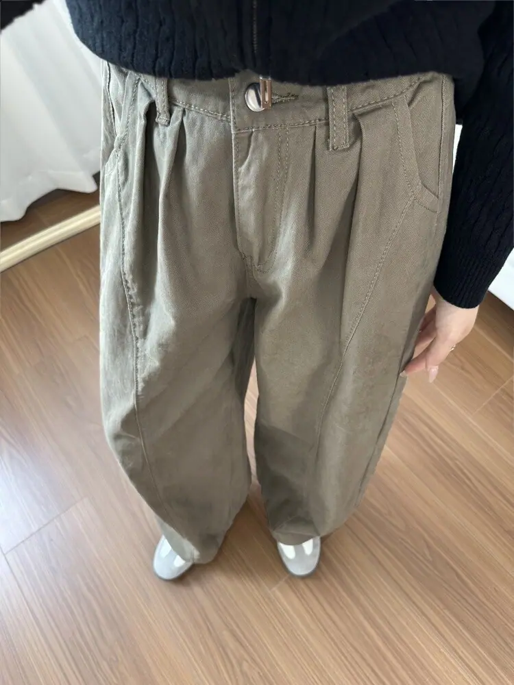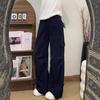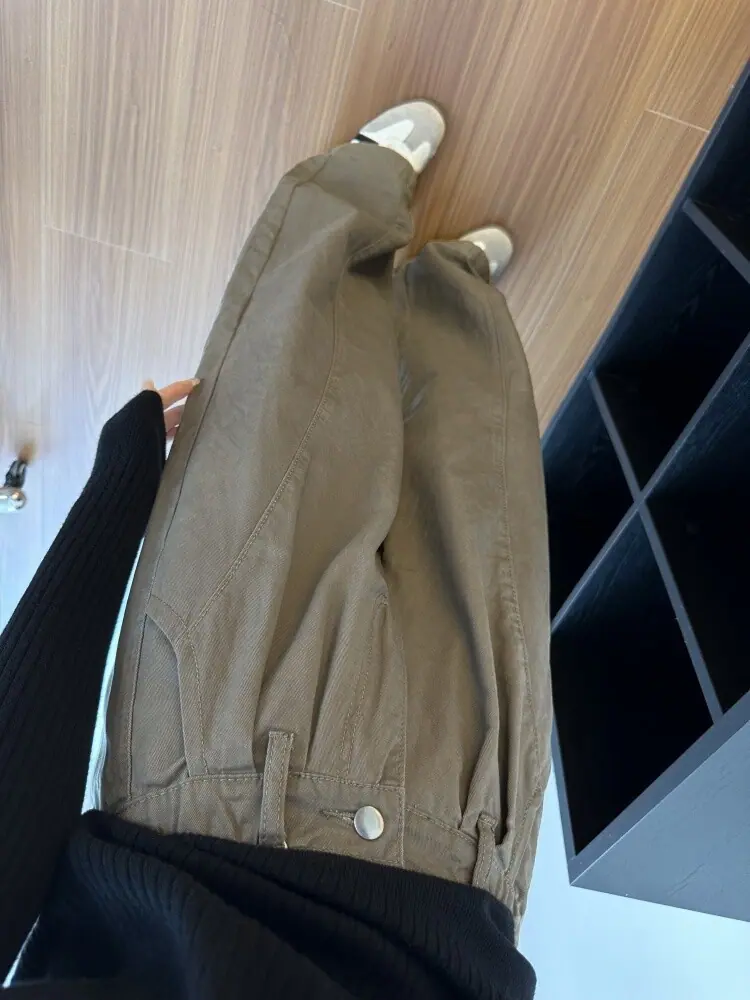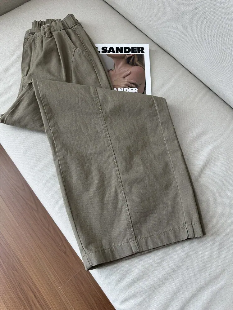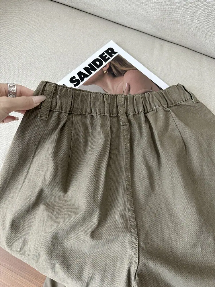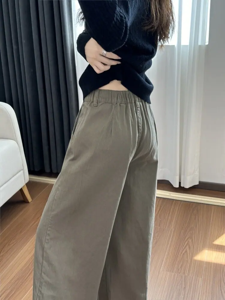 Pantalones casuales retro caqui de pierna ancha para mujer, primavera y otoño, cintura elástica, pantalones holgados tipo cimitarra, pantalones americanos Yamamoto