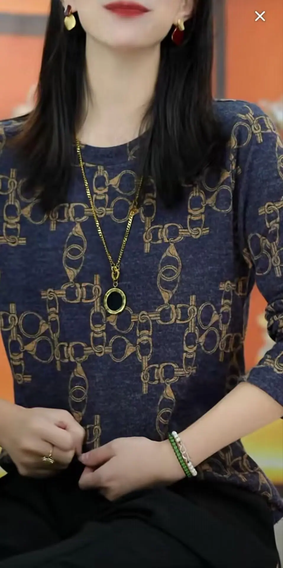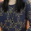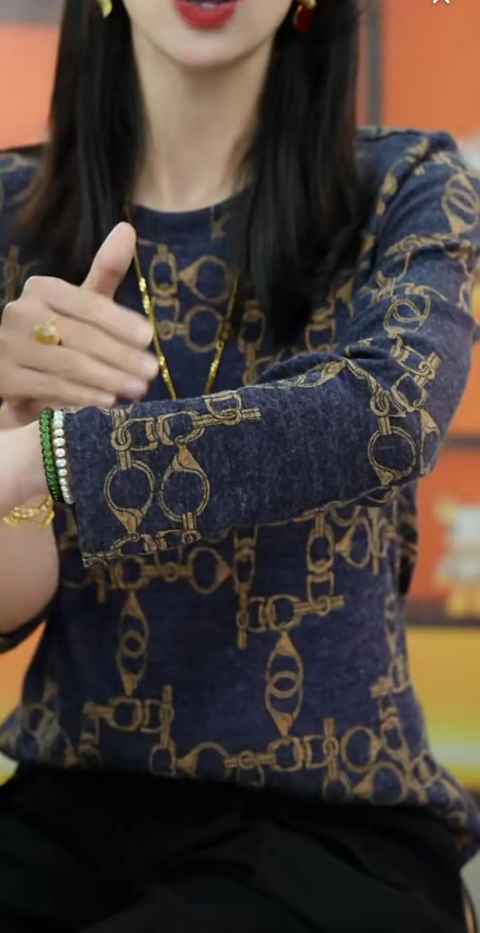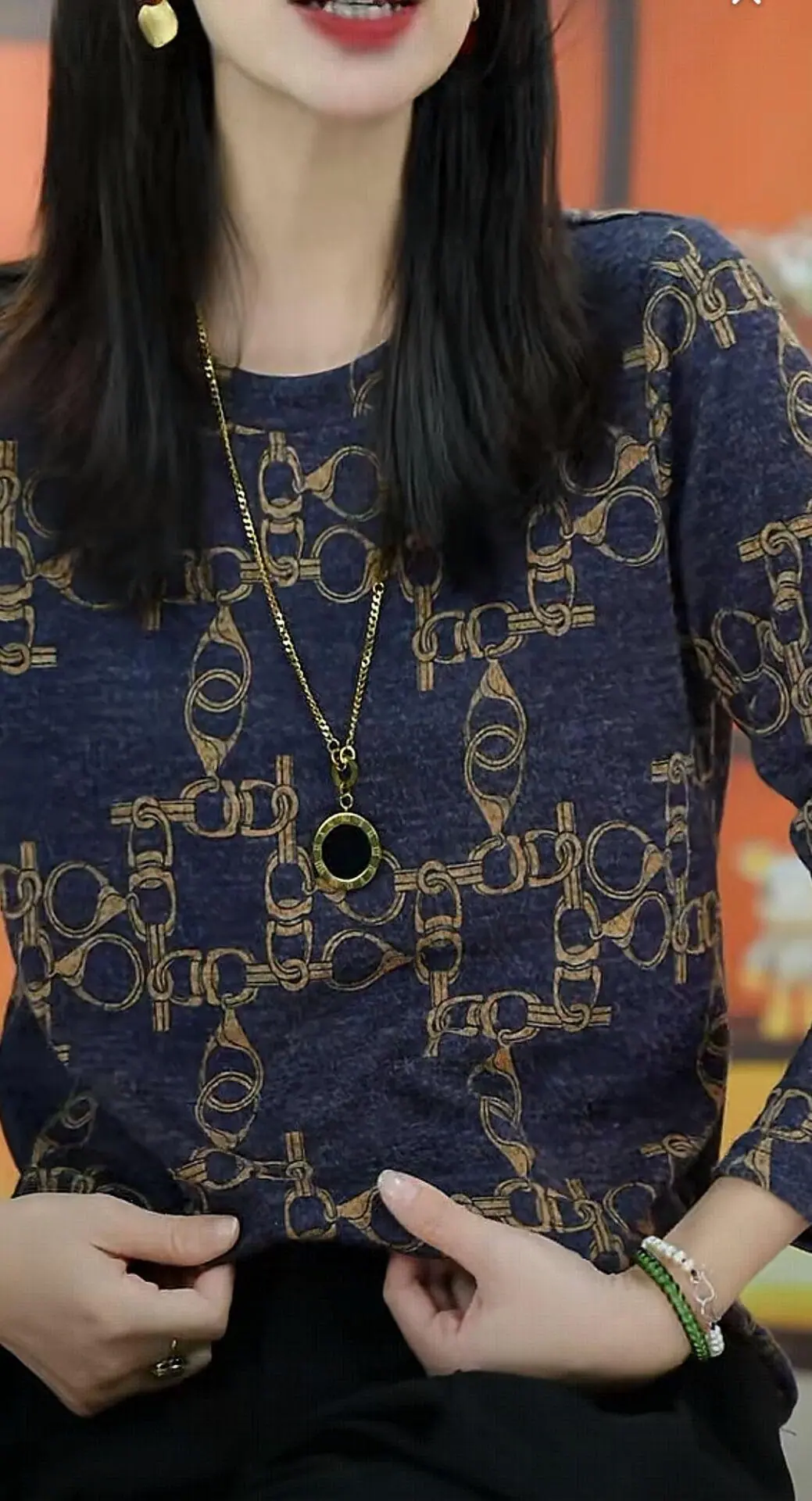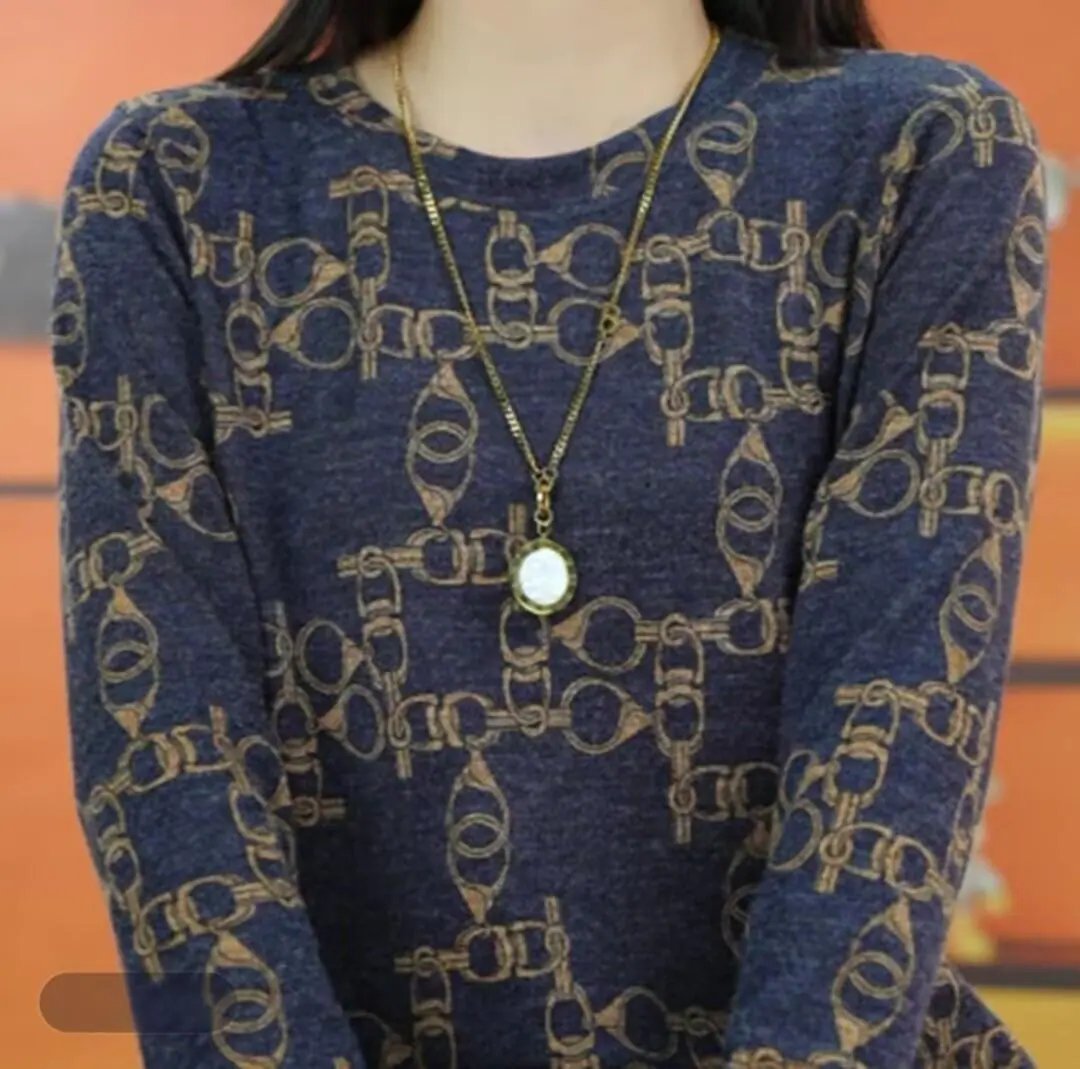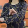 Ropa exterior de otoño Camisa de punto delgada elástica estampada para mujer Manga larga Mamá de mediana edad Talla grande Top básico