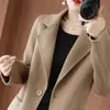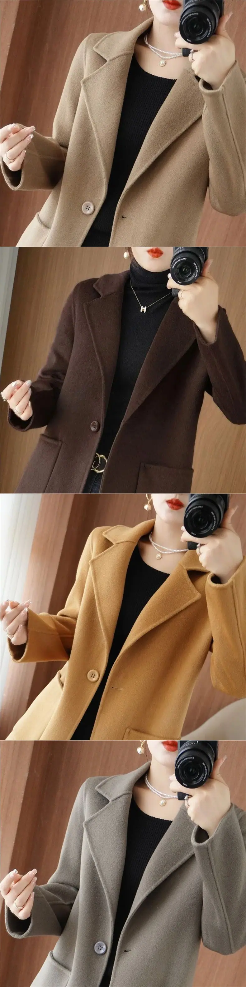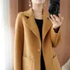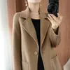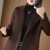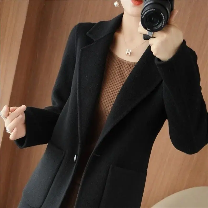 Abrigo de lana de largo medio y color sólido para mujer primavera 2025 nuevo pequeño entallado temperamento de alta gama versátil