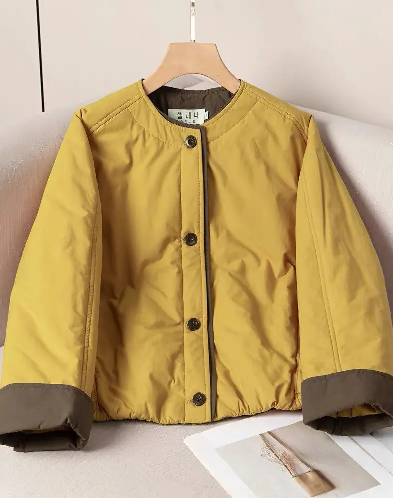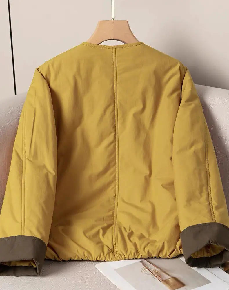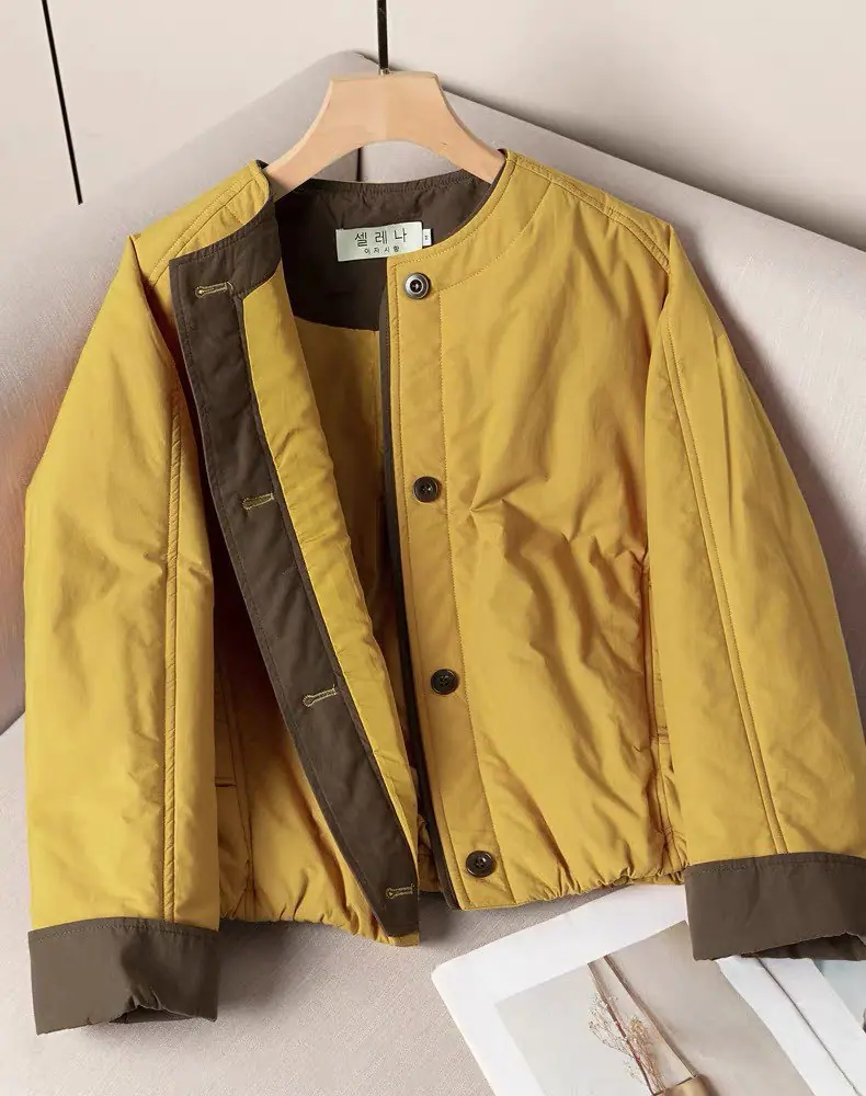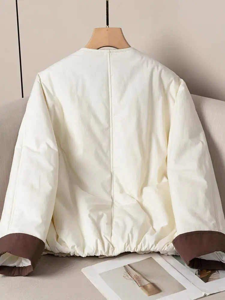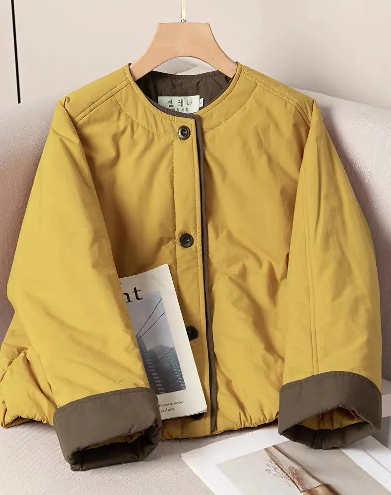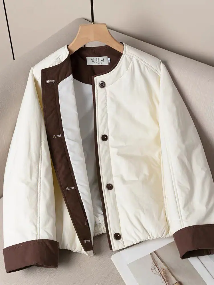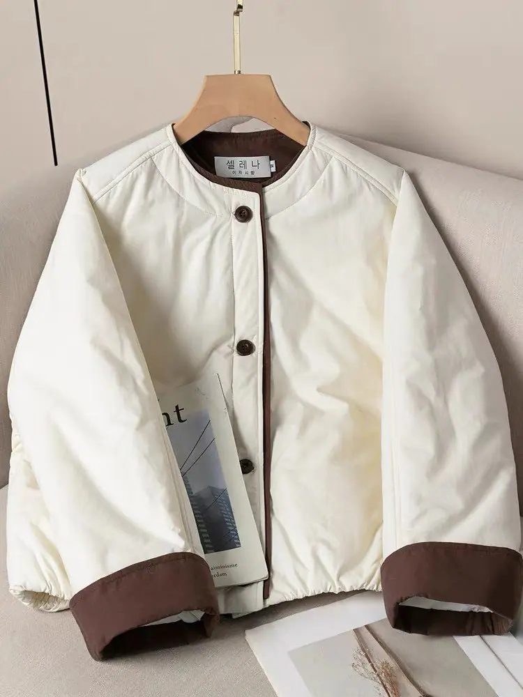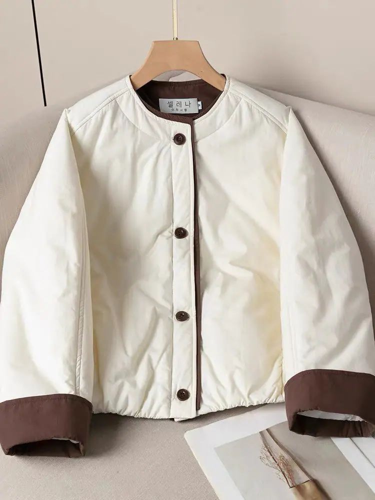 Chaqueta acolchada de algodón con bloques de color para mujer petite, otoño invierno, nueva, de alta gama, estilo preppy, holgada, cálida, abrigo de algodón, chaqueta de algodón