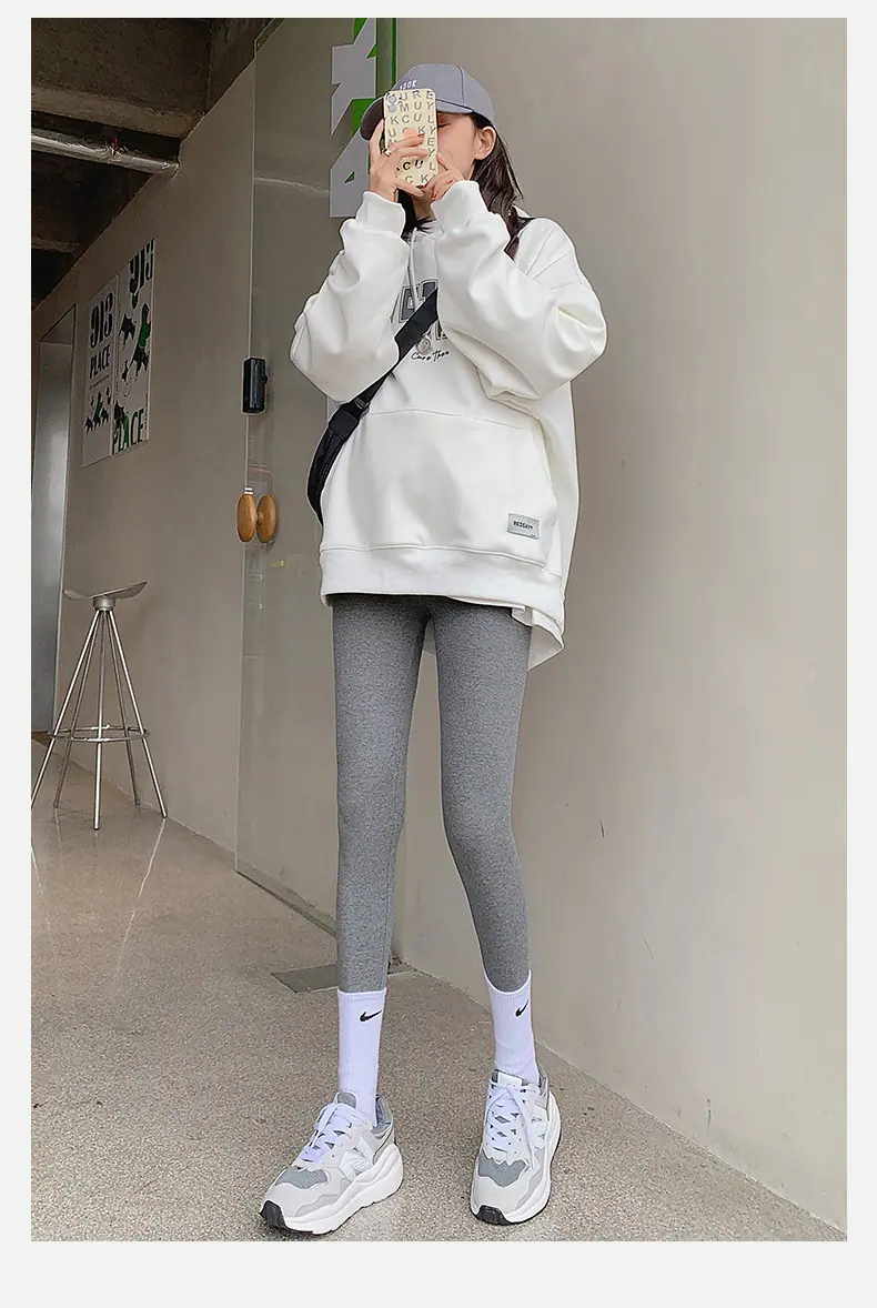 Ropa Exterior de Otoño para Mujeres Embarazadas Pantalones de Algodón Puro Cepillados y con Forro Polar Pantalones de Maternidad Petite de Cintura Alta Leggings de Maternidad de Otoño e Invierno
