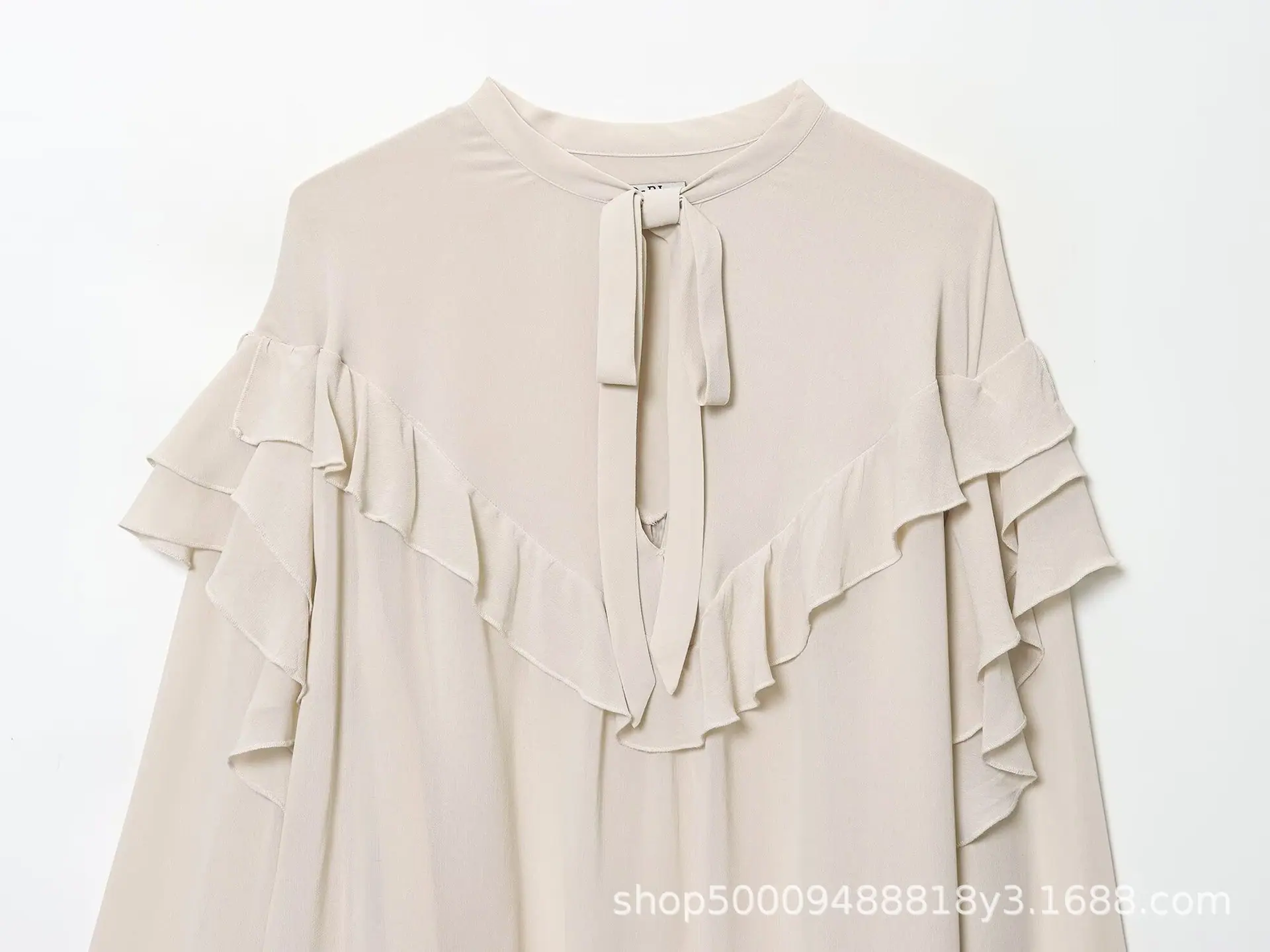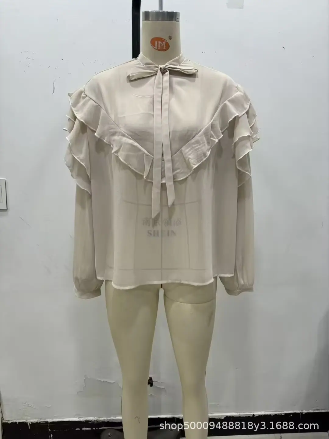 Compra Ropa de Otoño Nueva para Mujer Transfronteriza 2025 Estilo Europeo y Americano Moda Lazo Decoración en Capas Camisa 6895150 al por mayor en Joom.pro