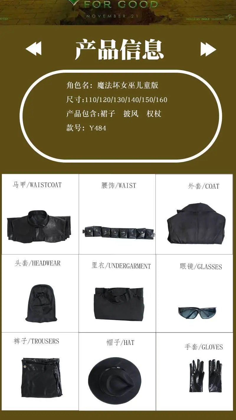 Compra Disfraz de Cosplay de la Bruja Malvada Elphaba Disfraz de Bruja Elphaba Set de Túnica de Magia Negra Disfraz de Cosplay Transfronterizo al por mayor en Joom.pro