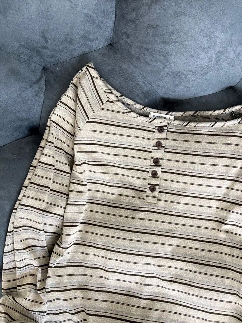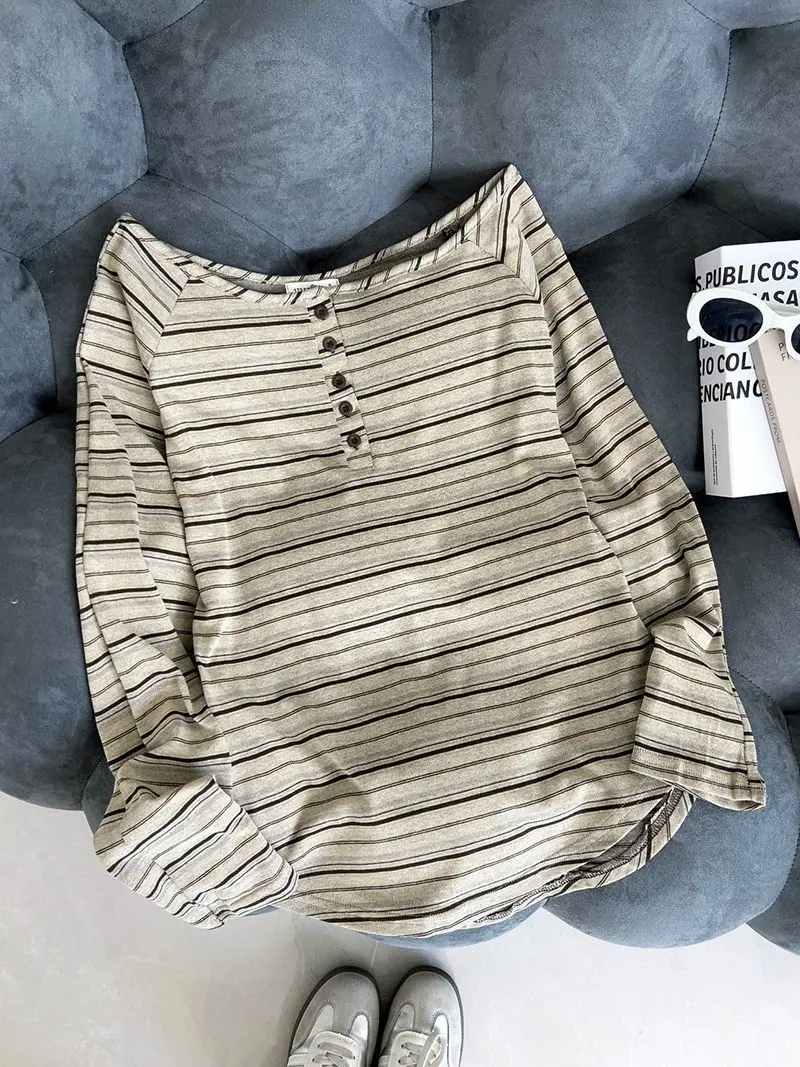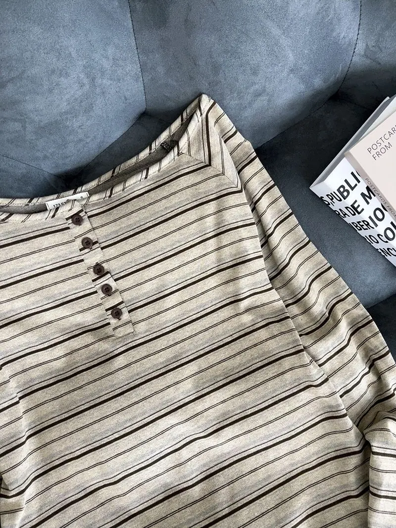 Compra Camiseta Holgada de Rayas de Manga Larga con un Hombro Descubierto para Mujer, Estilo Nuevo de Primavera y Otoño 2025, Camiseta Básica, Top con Hombros Descubiertos al por mayor en Joom.pro