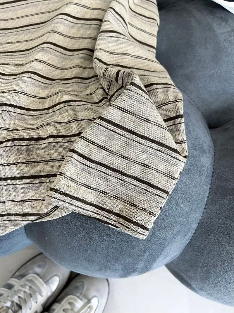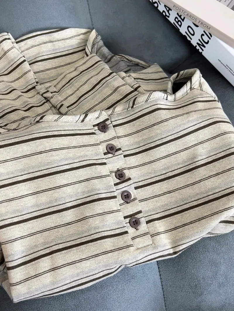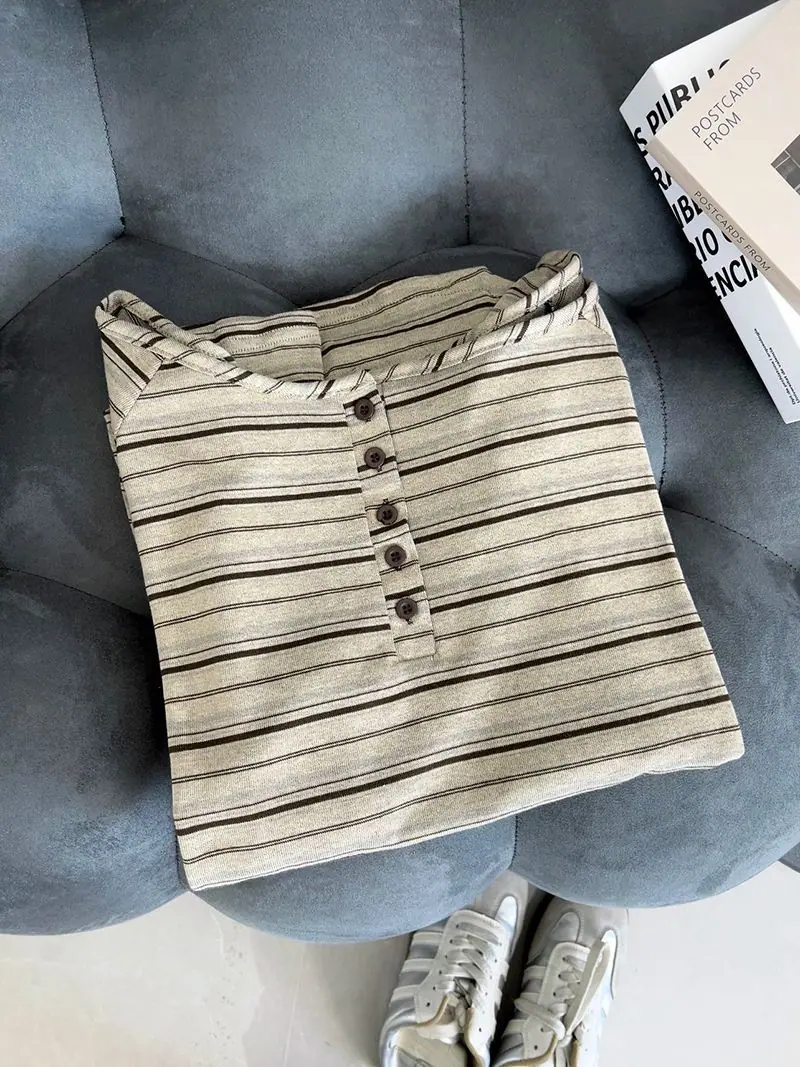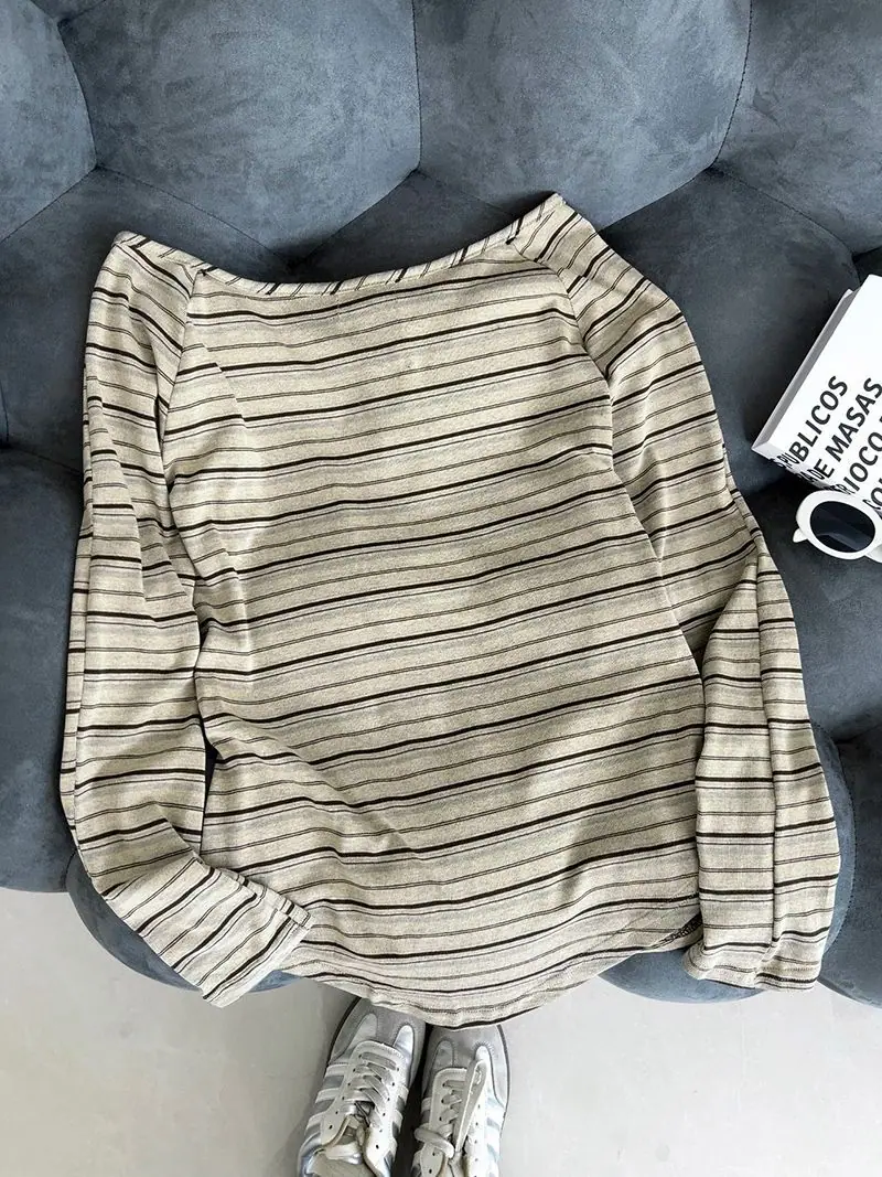 Camiseta Holgada de Rayas de Manga Larga con un Hombro Descubierto para Mujer, Estilo Nuevo de Primavera y Otoño 2025, Camiseta Básica, Top con Hombros Descubiertos