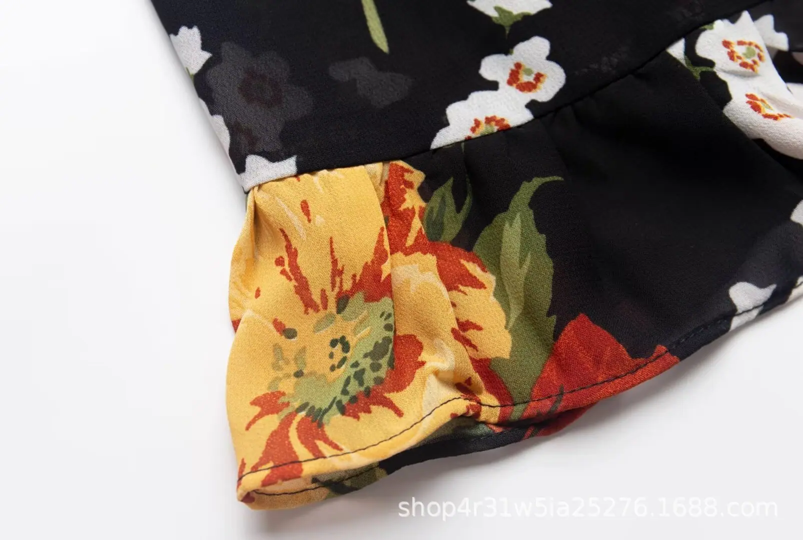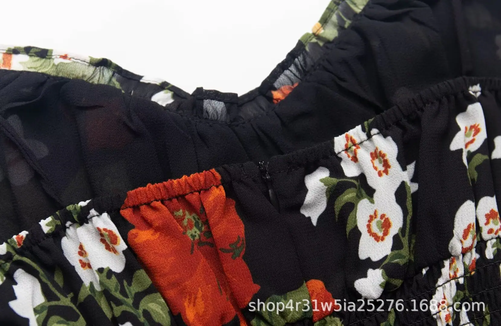Venta al por mayor europea y americana 2024 Verano Nuevo Ropa de mujer Retro Francés Estampado Diseño de tirantes Vestido de tirantes Falda corta