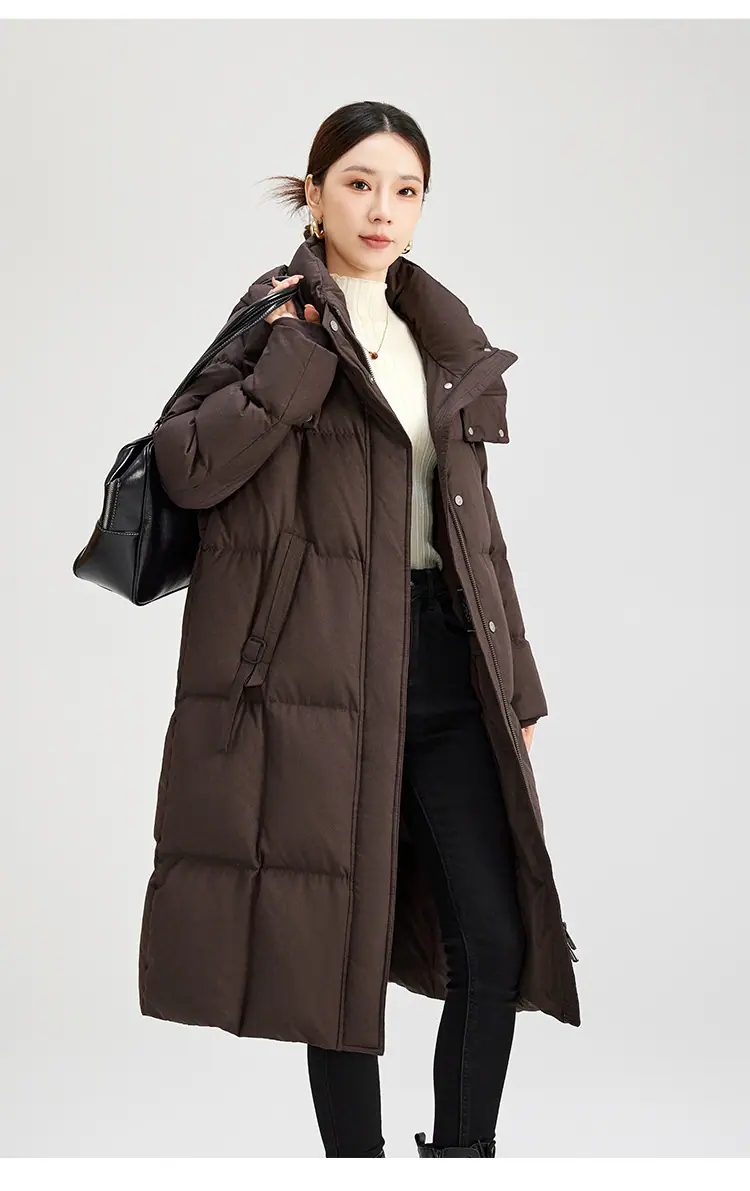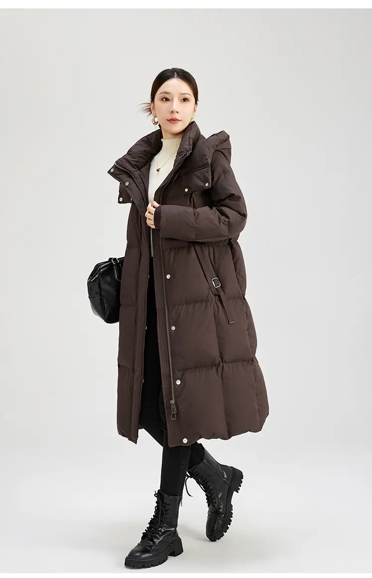 Compra Invierno Nuevo Chaqueta de Plumón de Longitud Media con Capucha de Alta Gama Negra Sobre la Rodilla Espesada Estilo Casual Abrigo Adelgazante 5199 al por mayor en Joom.pro