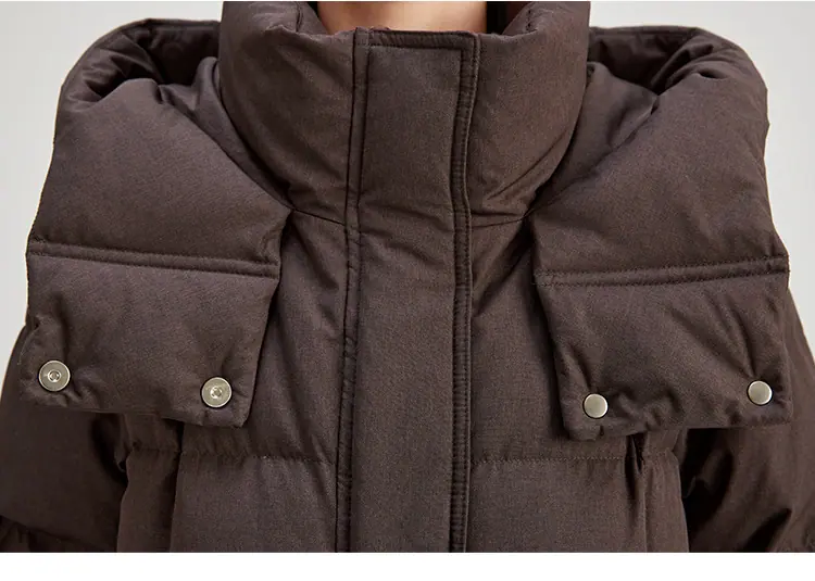 Invierno Nuevo Chaqueta de Plumón de Longitud Media con Capucha de Alta Gama Negra Sobre la Rodilla Espesada Estilo Casual Abrigo Adelgazante 5199