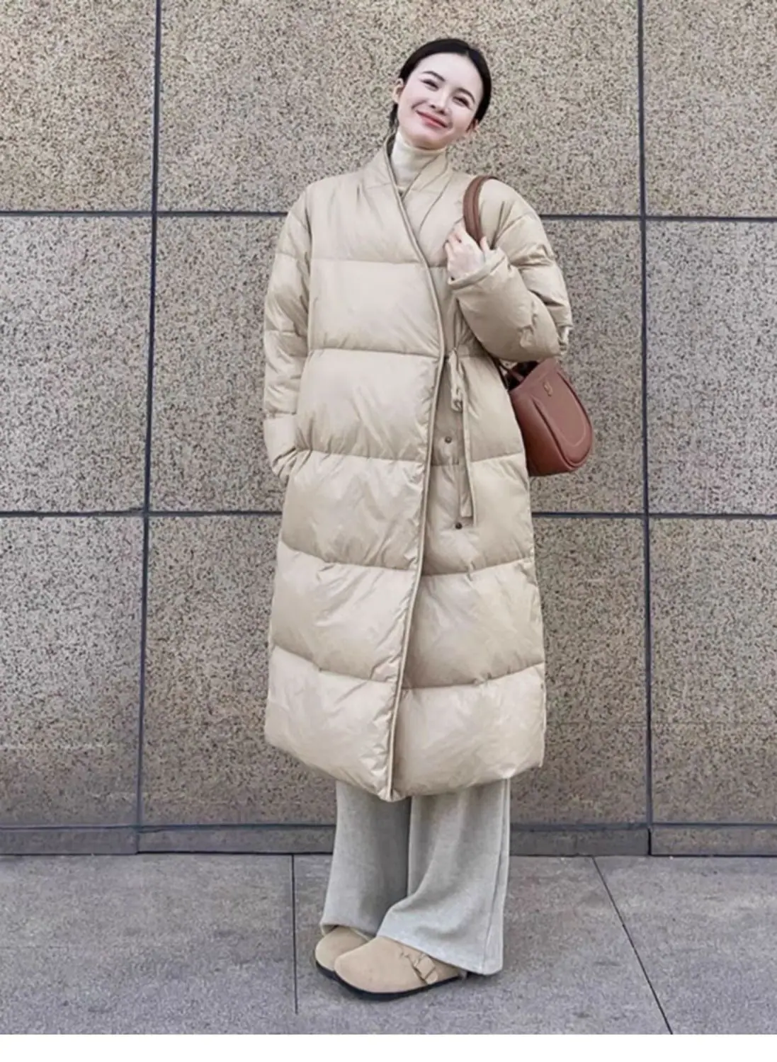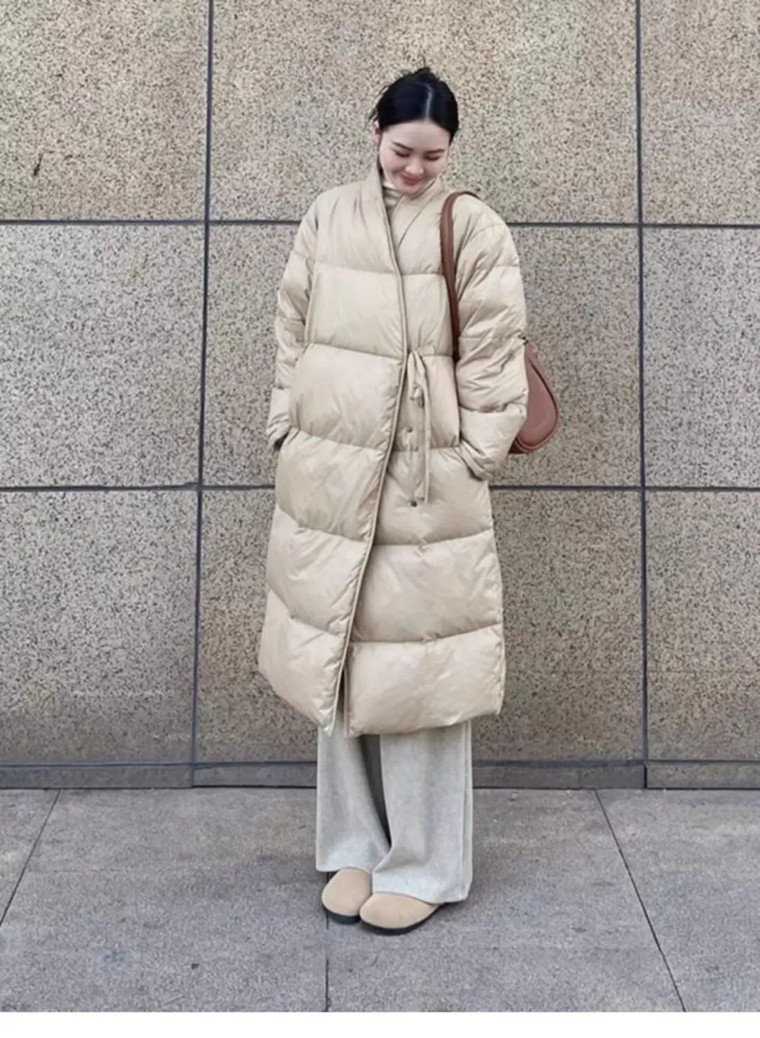 Compra Abrigo de plumón para mujer de largo medio 2025 nuevo estilo coreano por encima de la rodilla holgado talla grande para gorditas engrosado chaqueta de algodón con plumón al por mayor en Joom.pro
