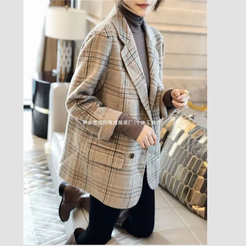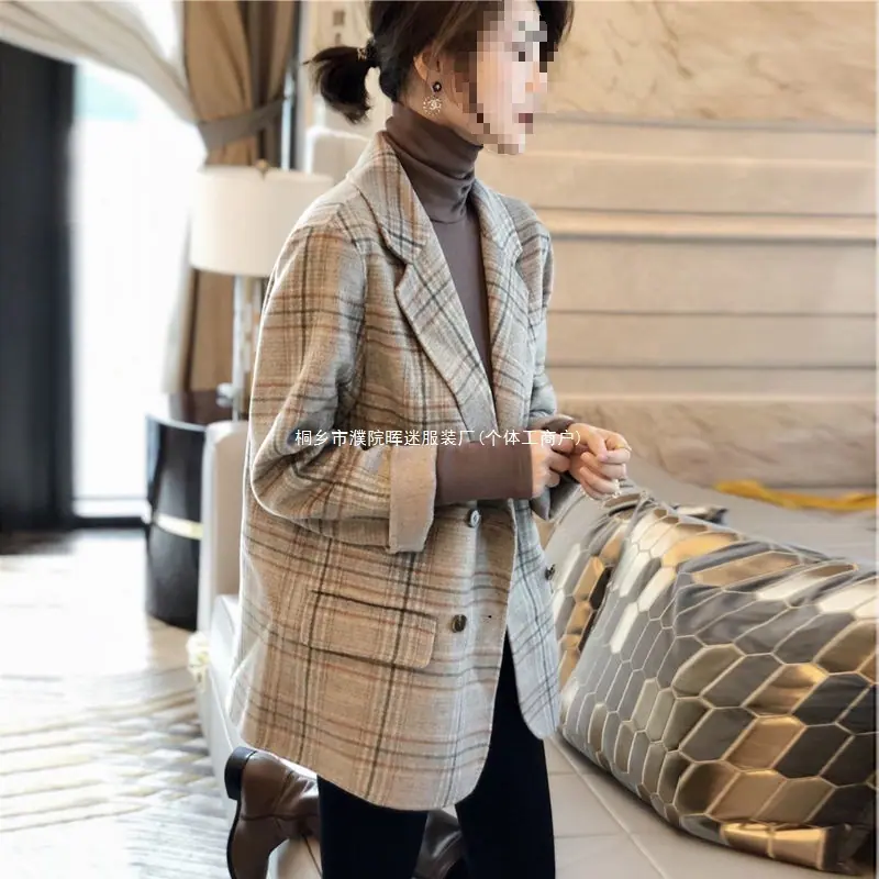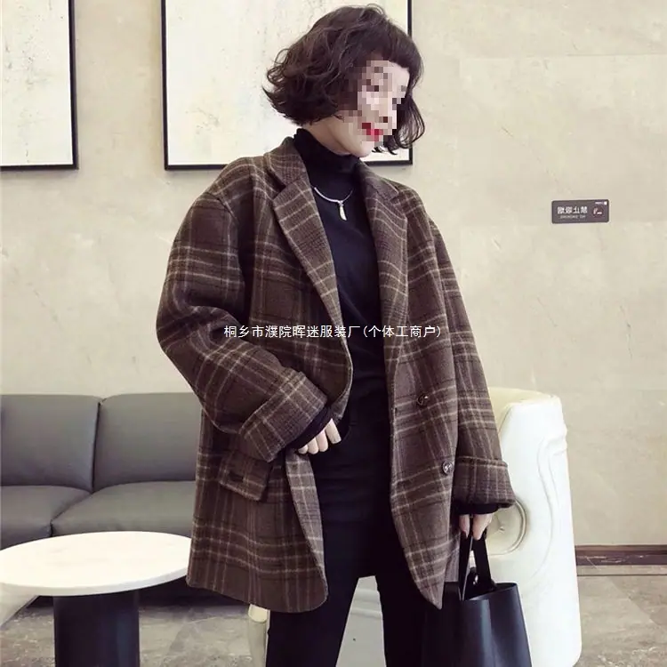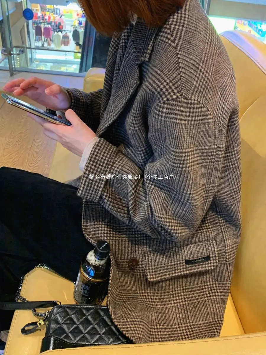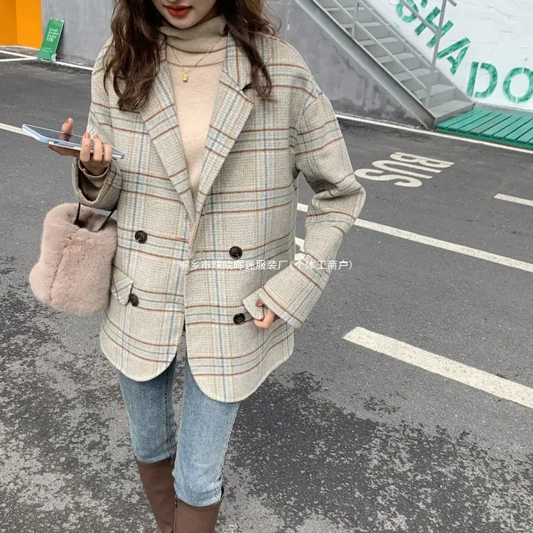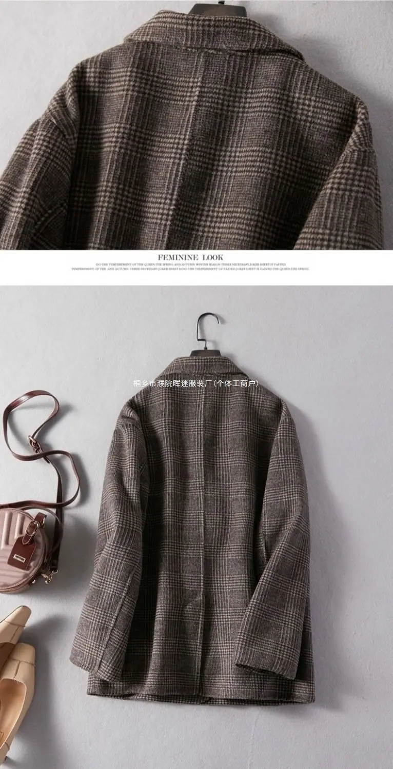 Compra Abrigo de Lana de Doble Faz a Cuadros Otoño/Invierno 2025 para Mujer Estilo Coreano Holgado Corto Mezcla de Lana Abrigo Pequeño Traje Cuadros Chaoyang al por mayor en Joom.pro