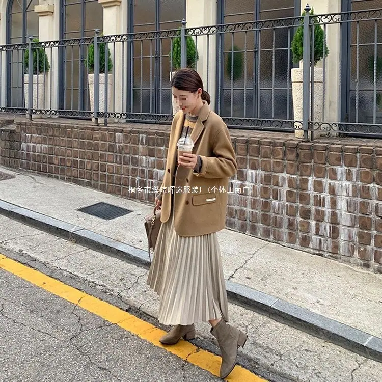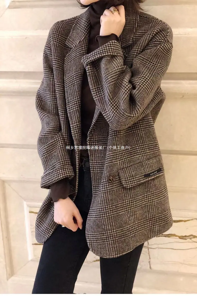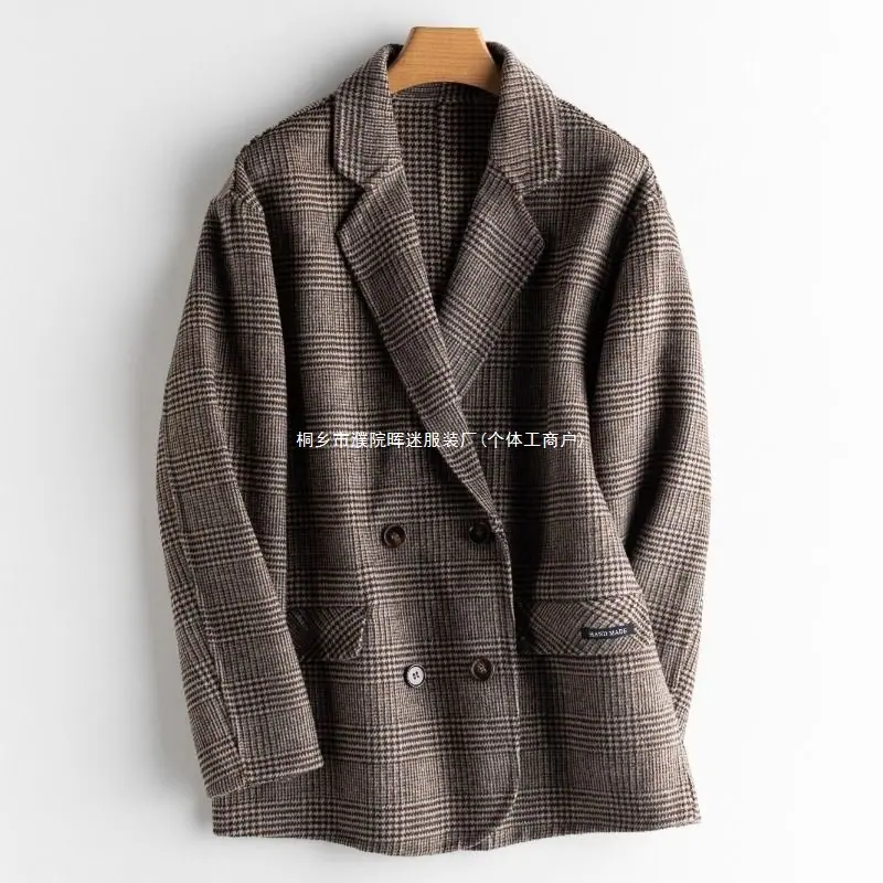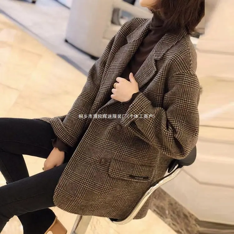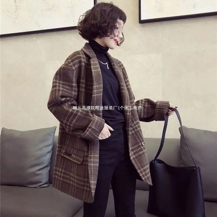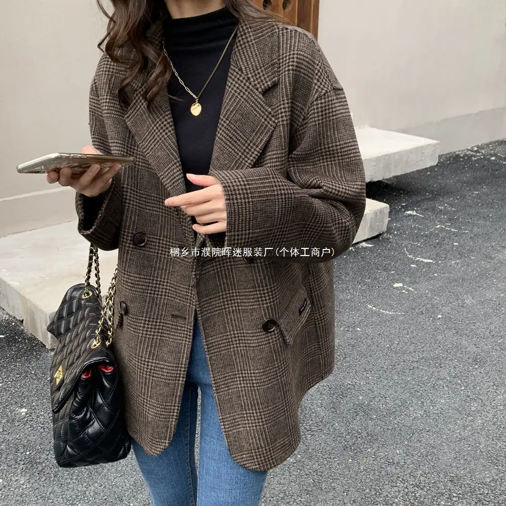 Compra Abrigo de Lana de Doble Faz a Cuadros Otoño/Invierno 2025 para Mujer Estilo Coreano Holgado Corto Mezcla de Lana Abrigo Pequeño Traje Cuadros Chaoyang al por mayor en Joom.pro