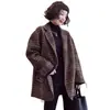 Abrigo de Lana de Doble Faz a Cuadros Otoño/Invierno 2025 para Mujer Estilo Coreano Holgado Corto Mezcla de Lana Abrigo Pequeño Traje Cuadros Chaoyang