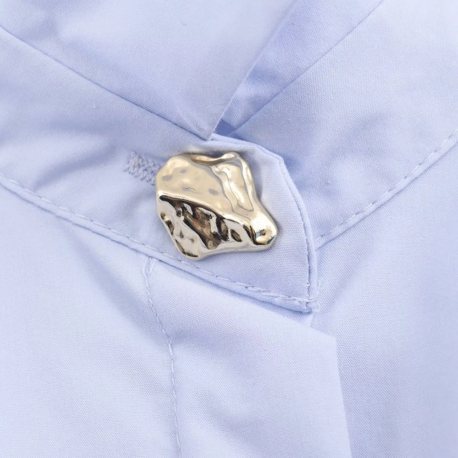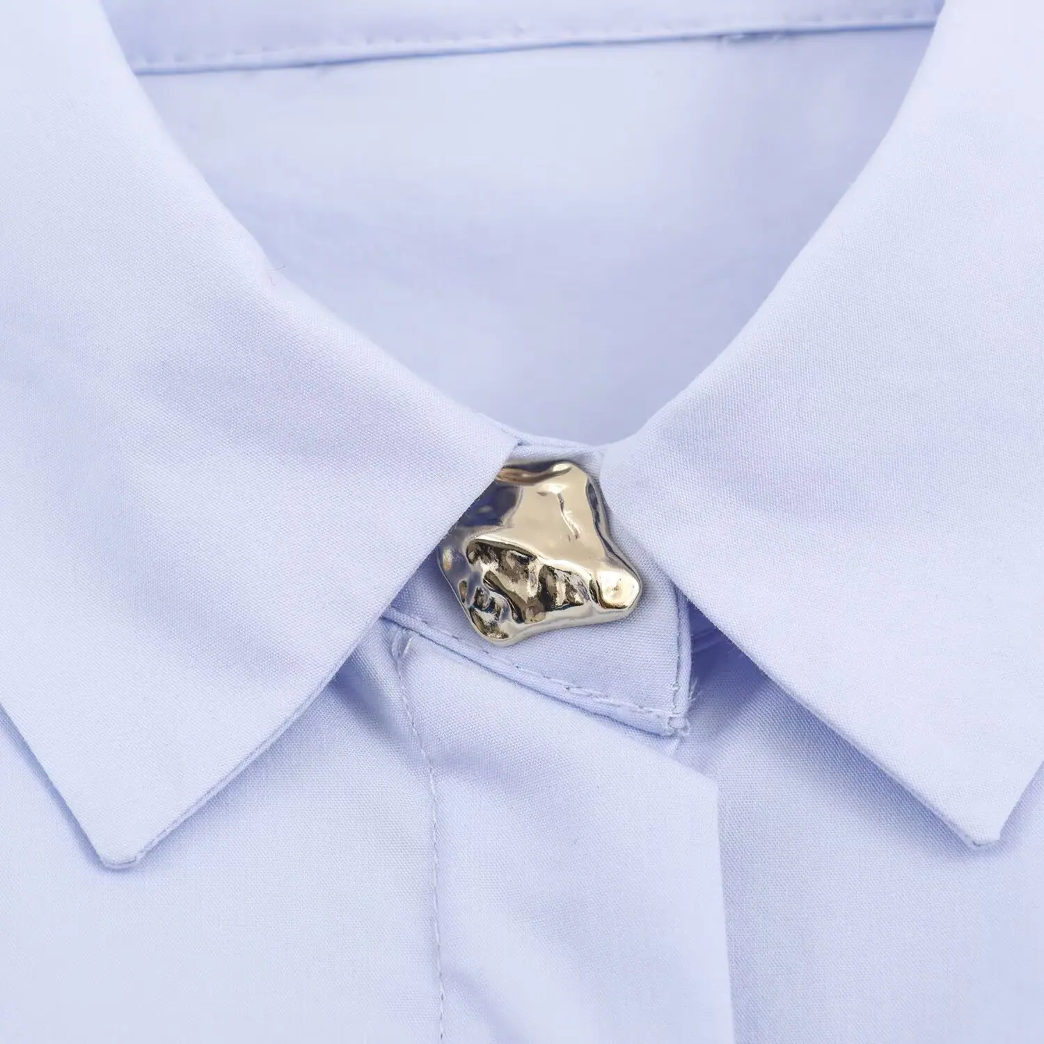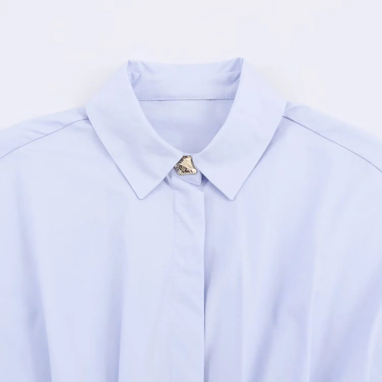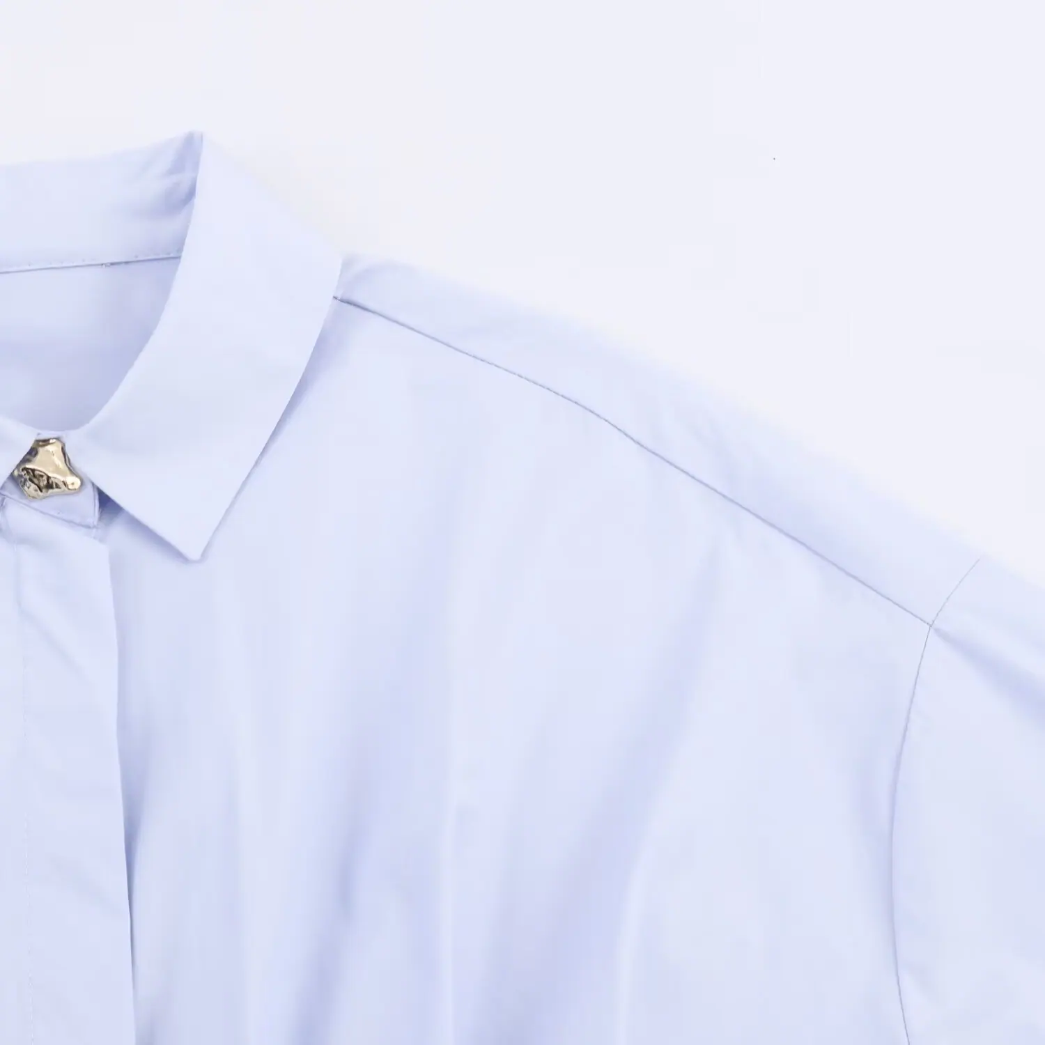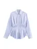Ropa de mujer de comercio exterior transfronterizo 2025 principios de otoño moda europea y americana holgada con cintura plisada camisa casual de manga larga abotonada para mujer