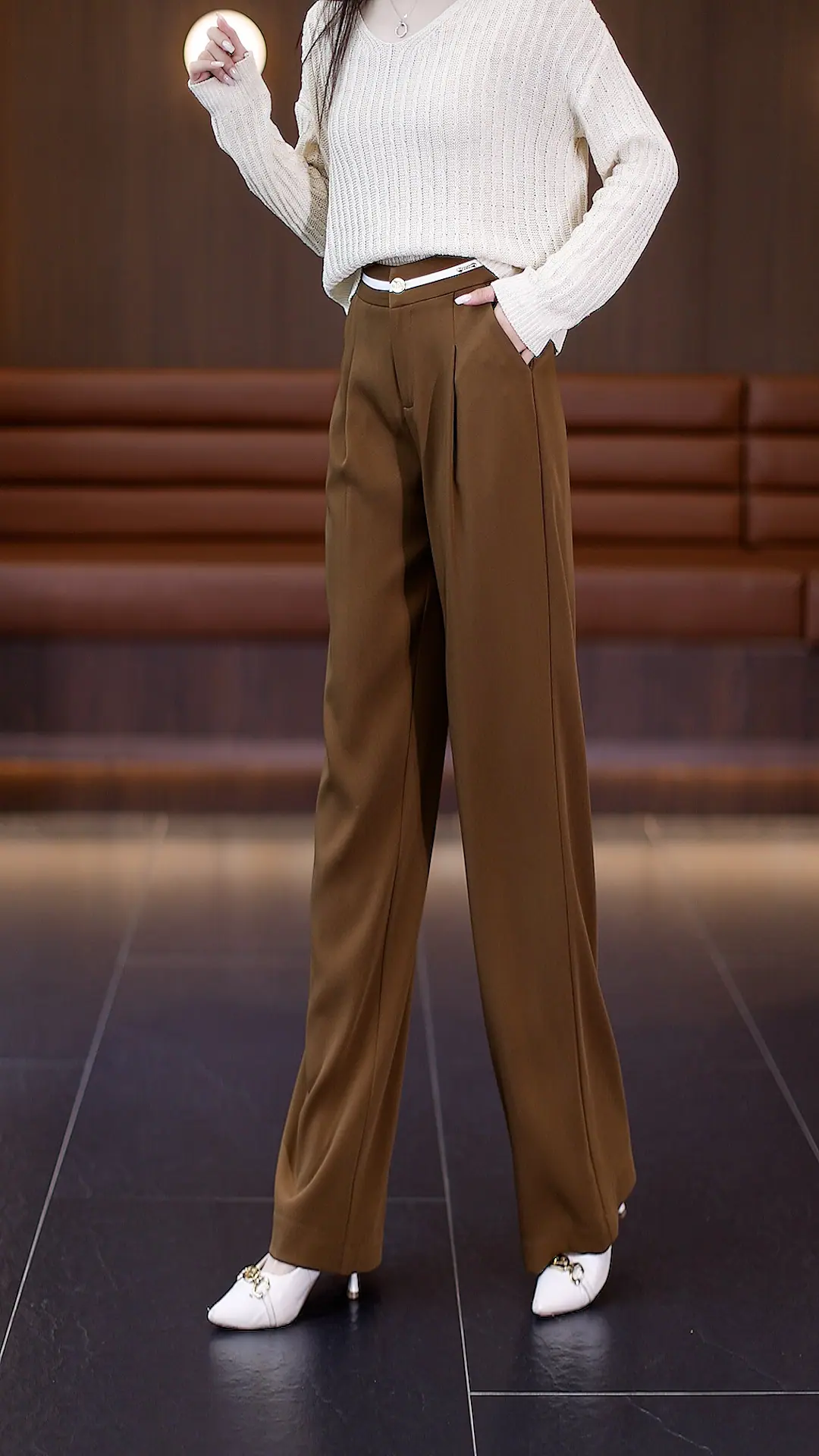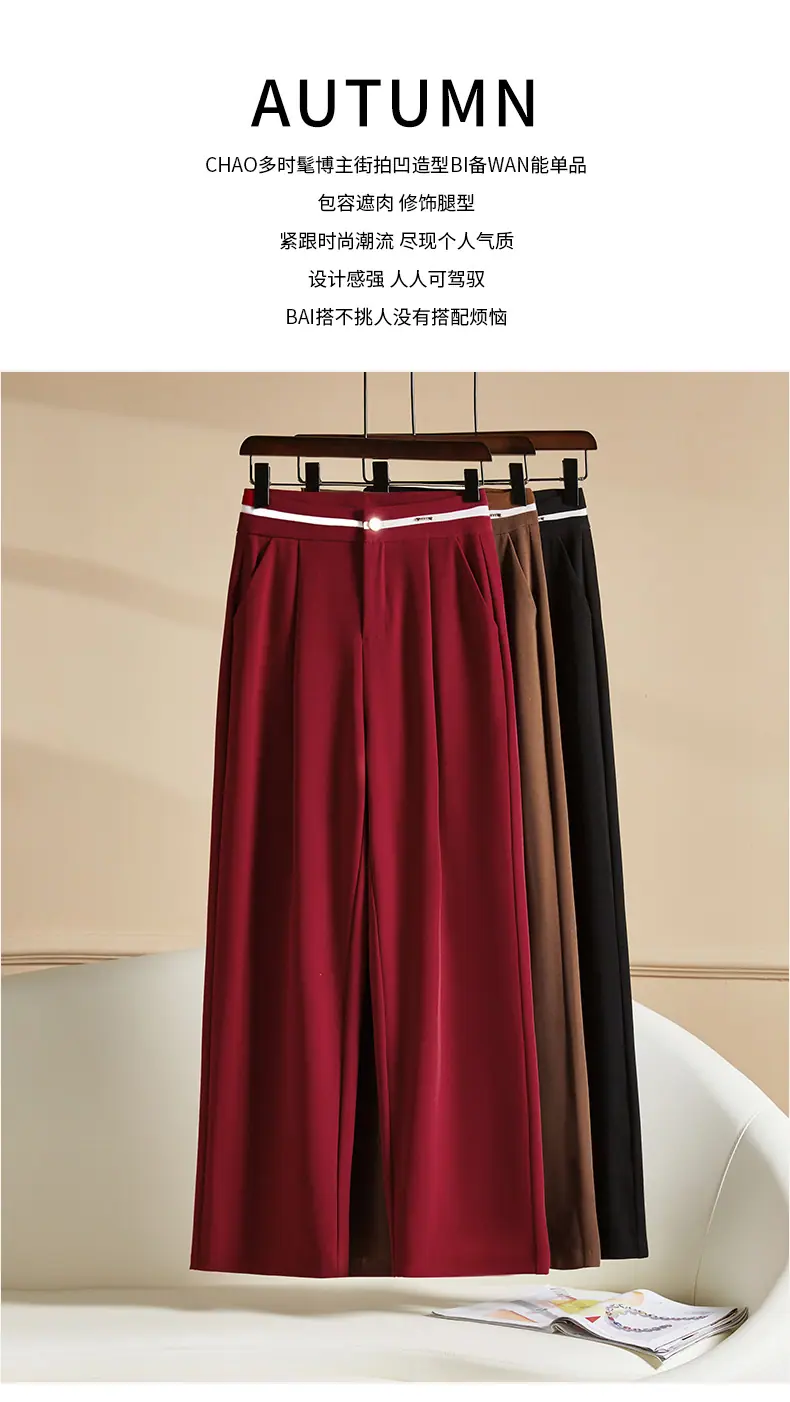 Compra Pantalones de Pierna Ancha Estilo Traje para Mujer, Pantalones de Mujer de Moda Nueva Otoño 2025, Pantalones Largos Holgados con Caída, Pantalones Casuales de Pierna Recta de Cintura Alta al por mayor en Joom.pro
