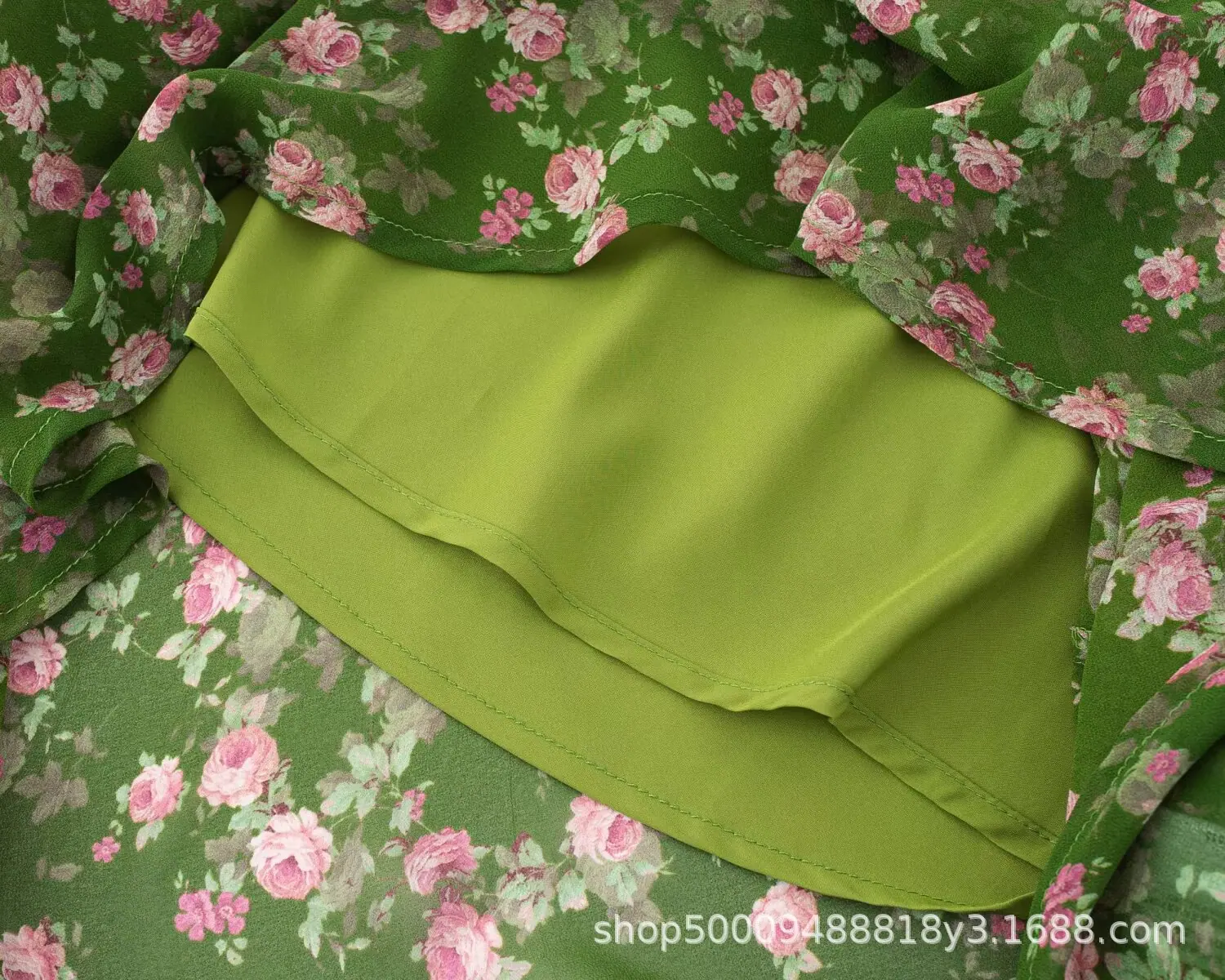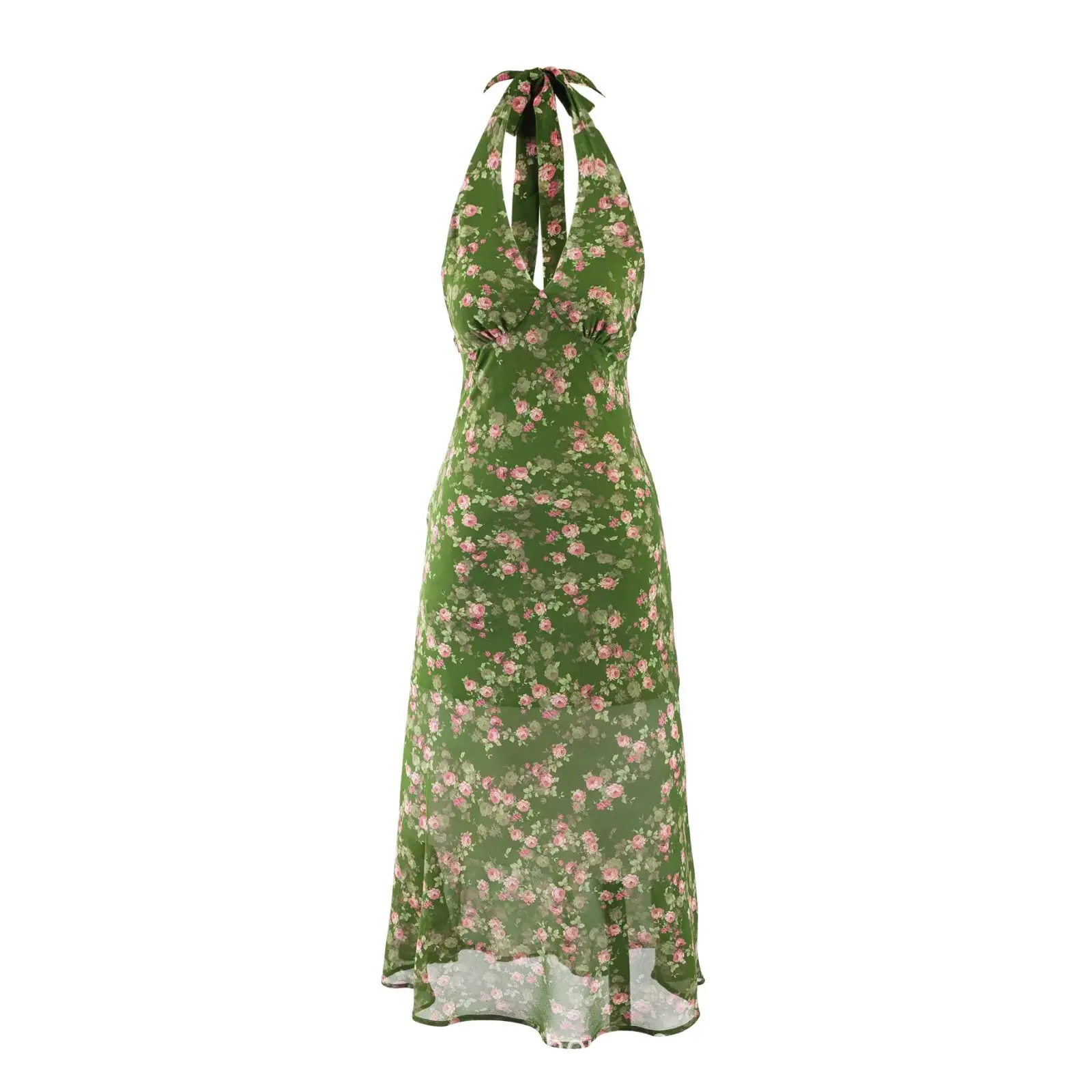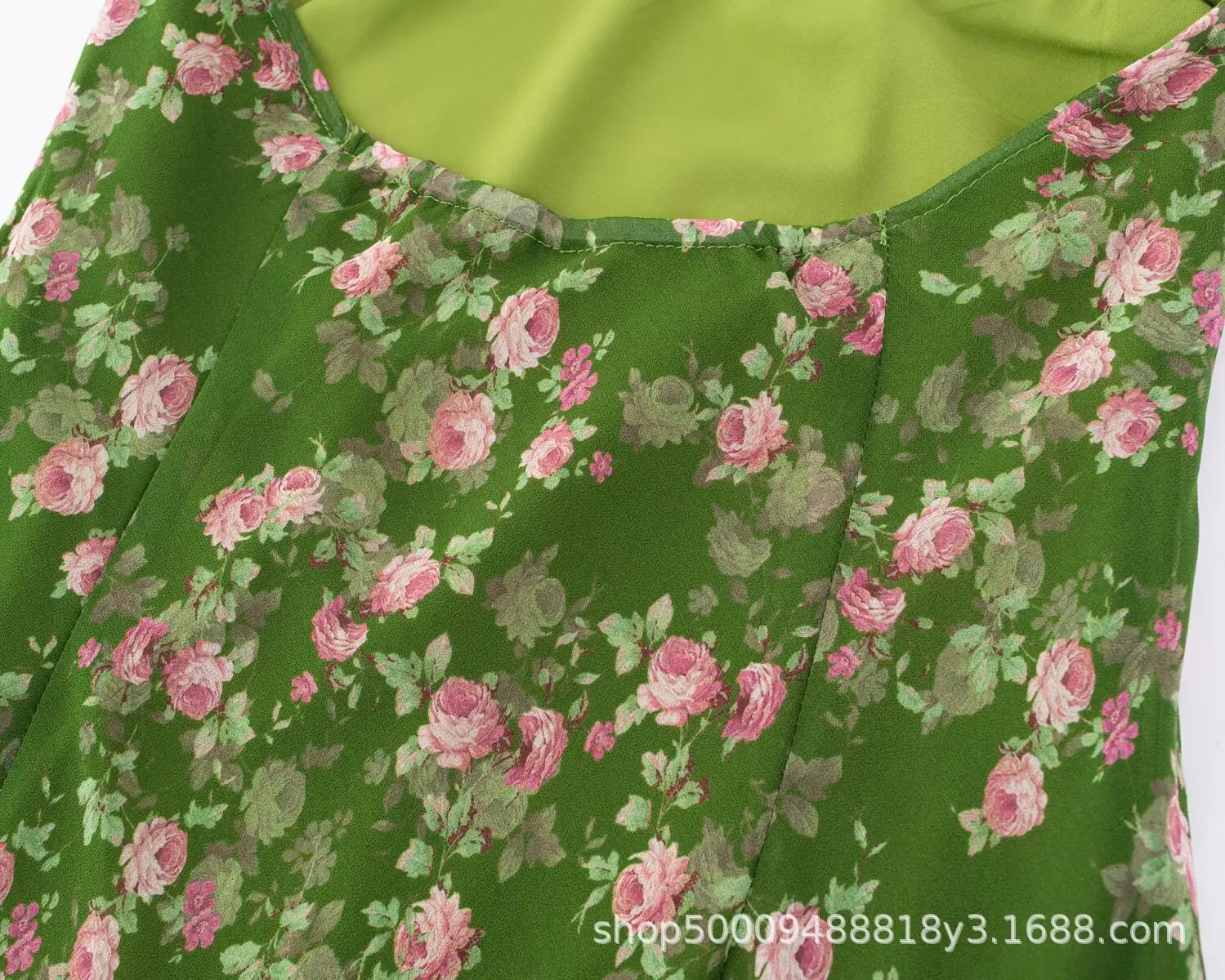 Vacaciones de Verano en la Playa Falda de Tirantes Floral Verde Verano para Mujer Francés Halter Cuello en V Sin Mangas con Tirantes Vestido Ajustado