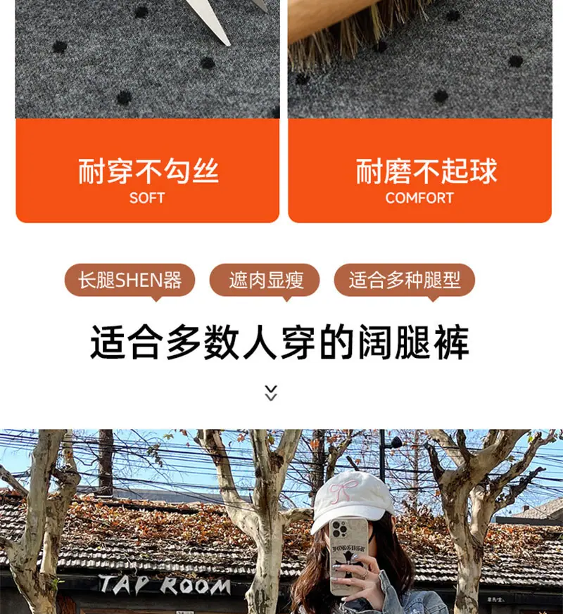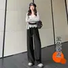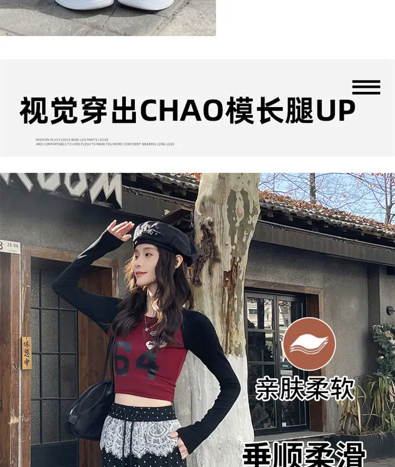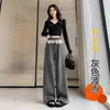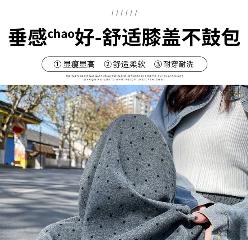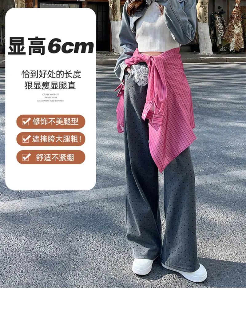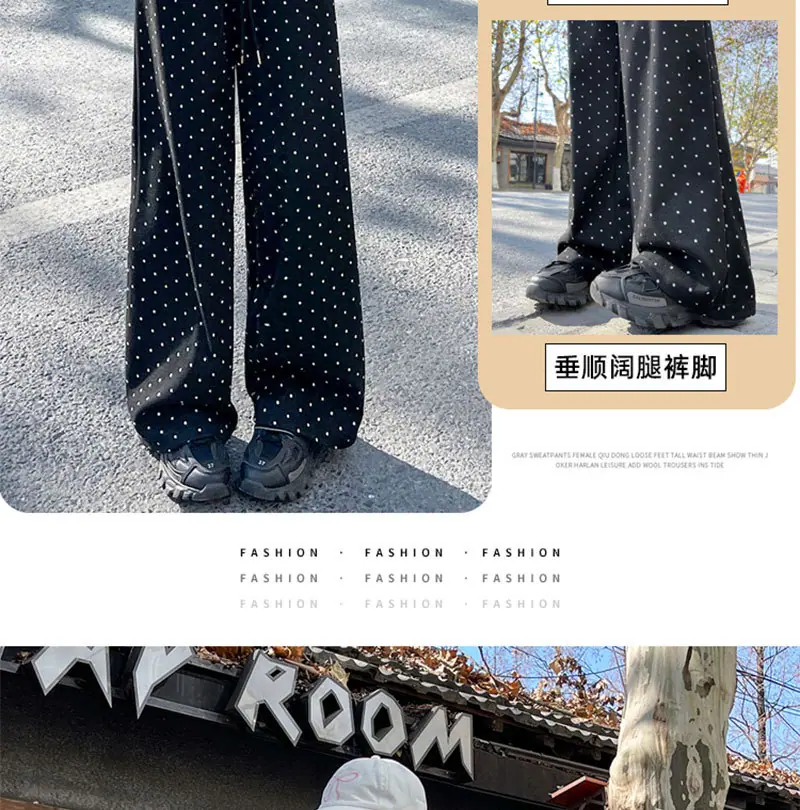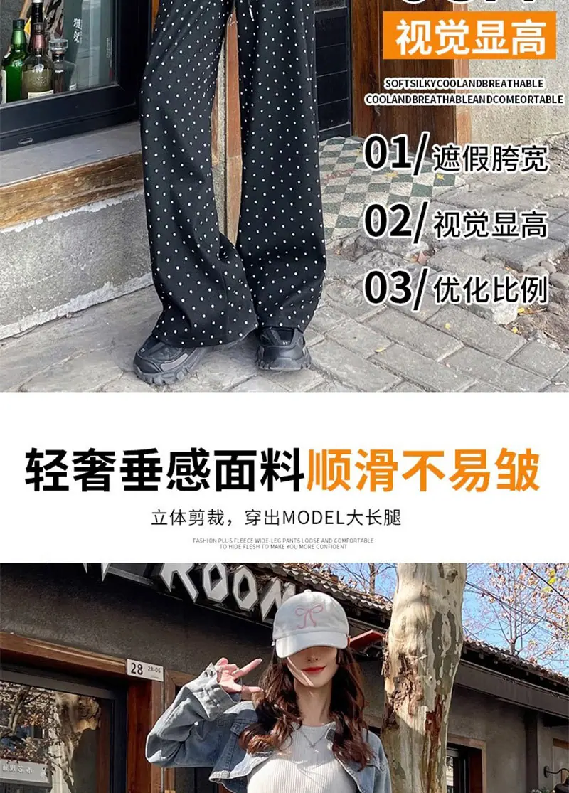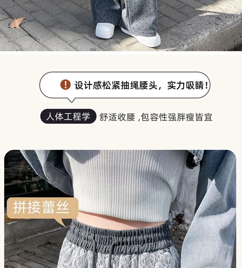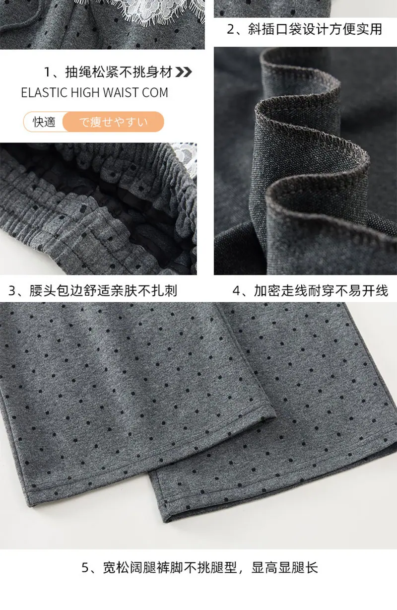 Compra Pantalones de Pierna Ancha con Costuras de Encaje Negro para Mujer Primavera Cintura Alta Adelgazantes Pierna Recta Combinan con Todo Holgados Lunares Ondulados Leggings con Cordón al por mayor en Joom.pro
