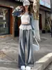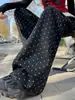 Pantalones de Pierna Ancha con Costuras de Encaje Negro para Mujer Primavera Cintura Alta Adelgazantes Pierna Recta Combinan con Todo Holgados Lunares Ondulados Leggings con Cordón