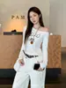 Playera de Manga Larga para Mujer con Diseño de Letras en Hombro Inclinado Blanco, Sentido del Diseño, Nuevo Otoño Temprano 2025, Adelgazante y Favorecedor de la Figura, Top con Hombros Descubiertos